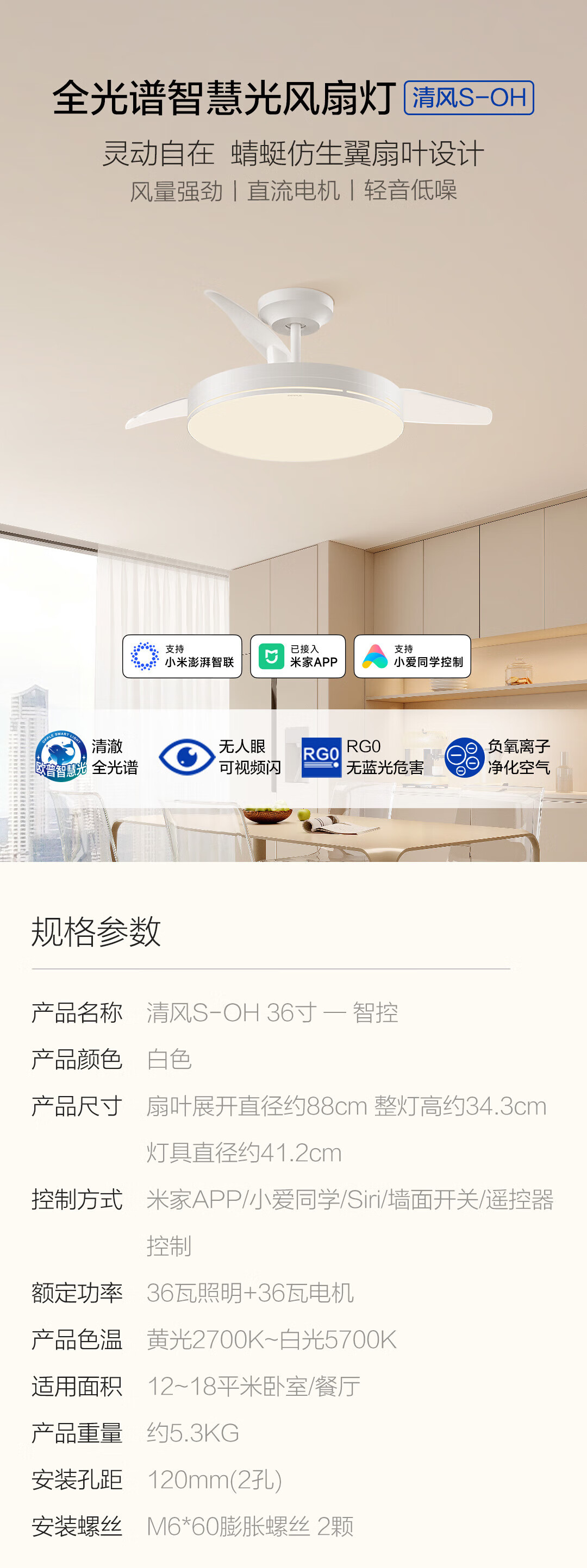 佑家儿童房间风扇灯小尺寸餐厅吊扇灯卧室阳台电扇灯 A款哑光白 18WLED单灯 变频六档