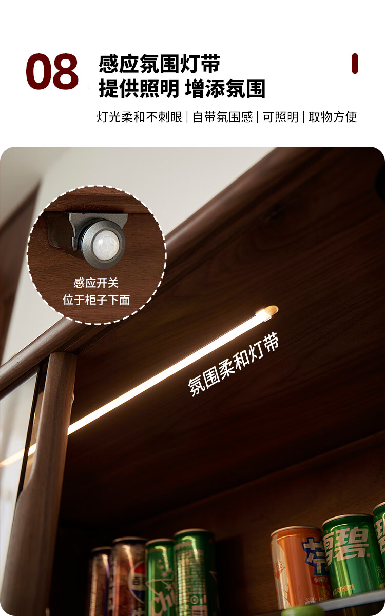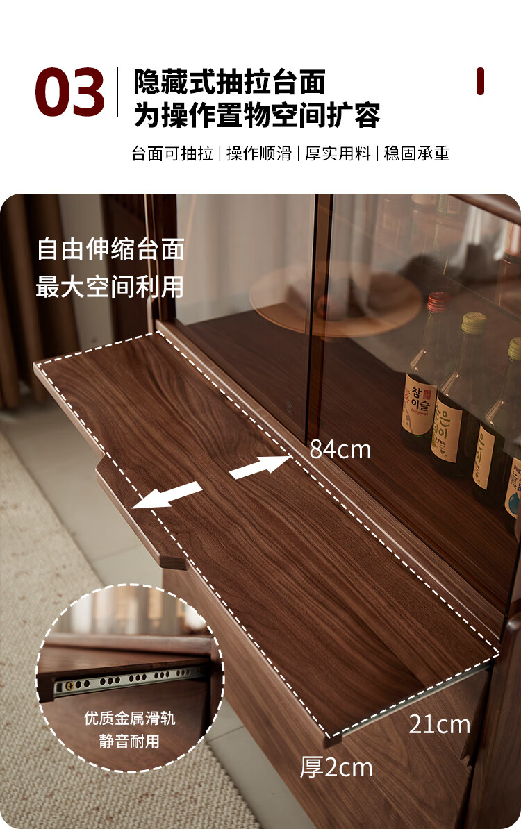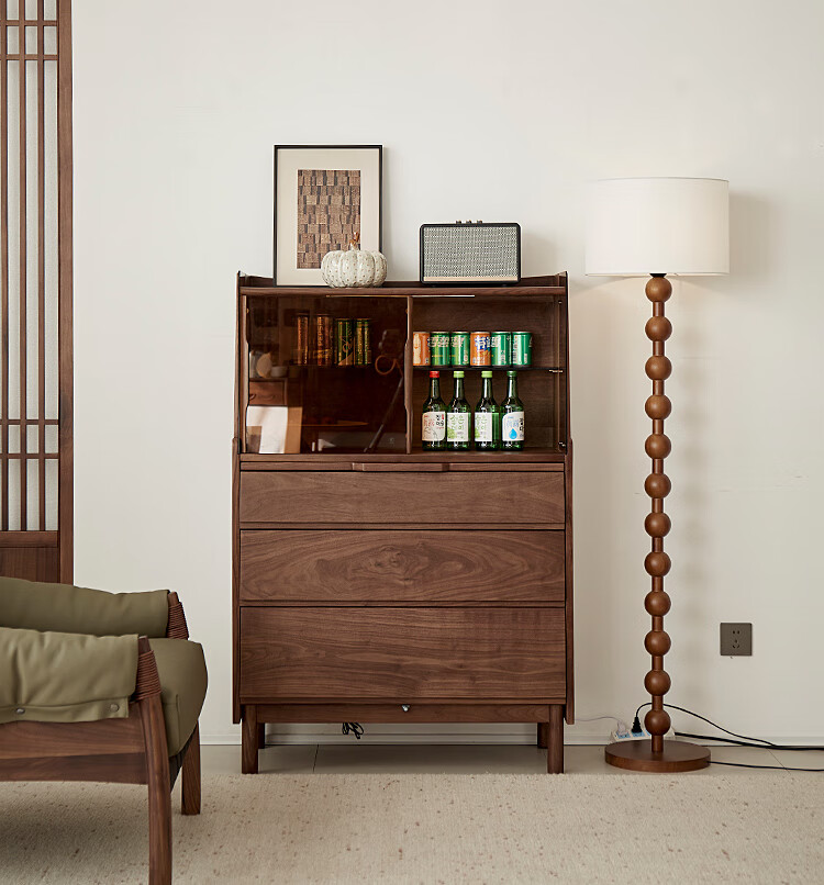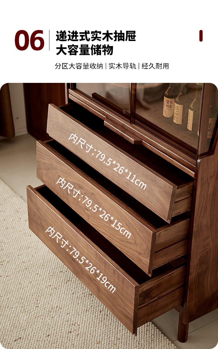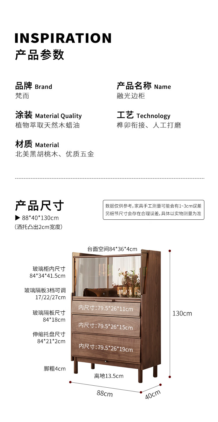 梵而餐边柜实木橱柜北美黑胡桃现代简约靠墙高脚斗柜餐厅储物收纳酒柜 融光边柜【北美黑胡桃】