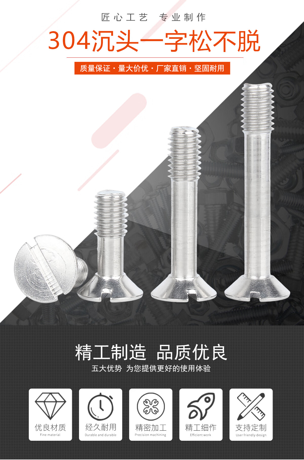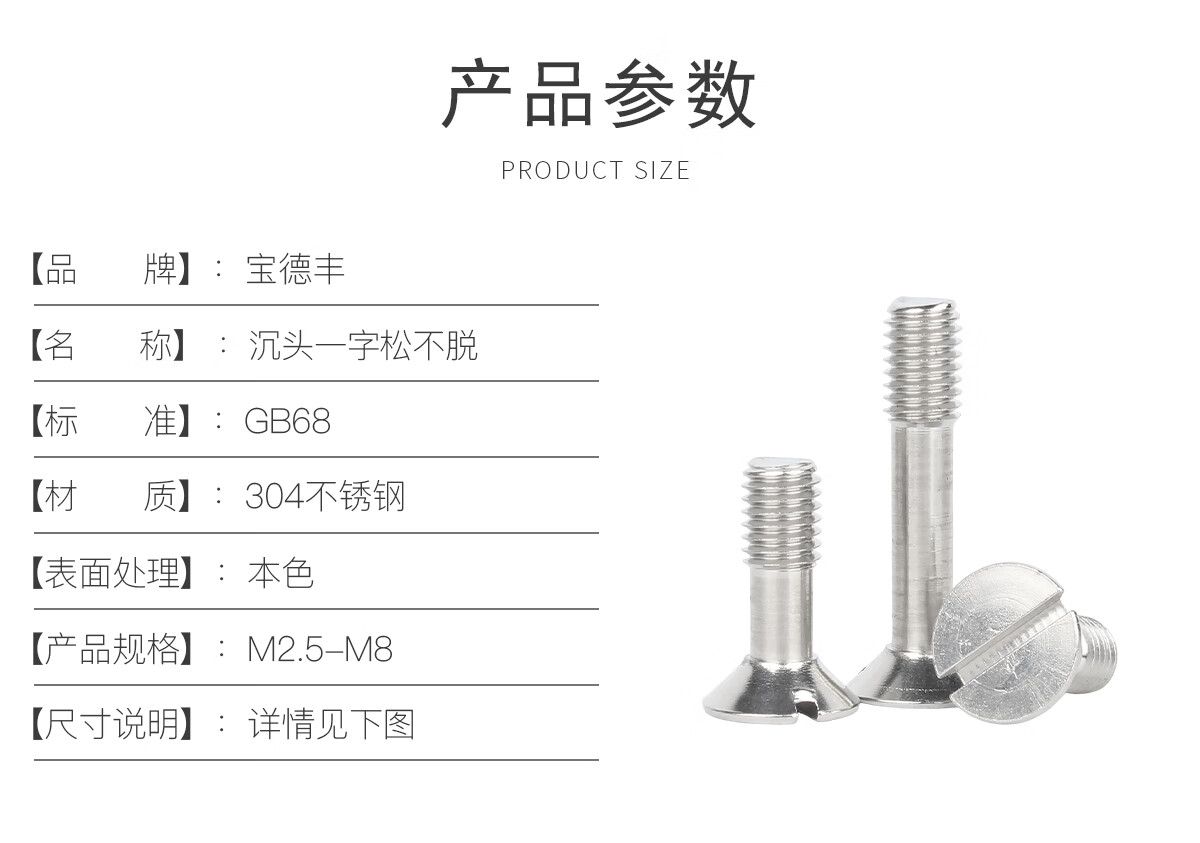 宝德丰304不锈钢GB68一字沉头松不脱螺钉半牙平头不脱出螺丝M3M4M5M6M8 M2.5x6(20只)