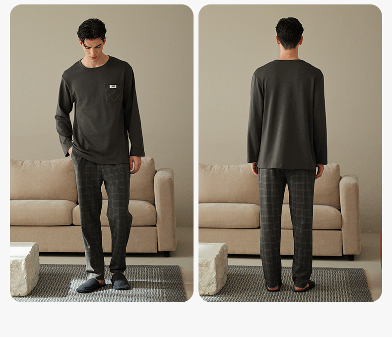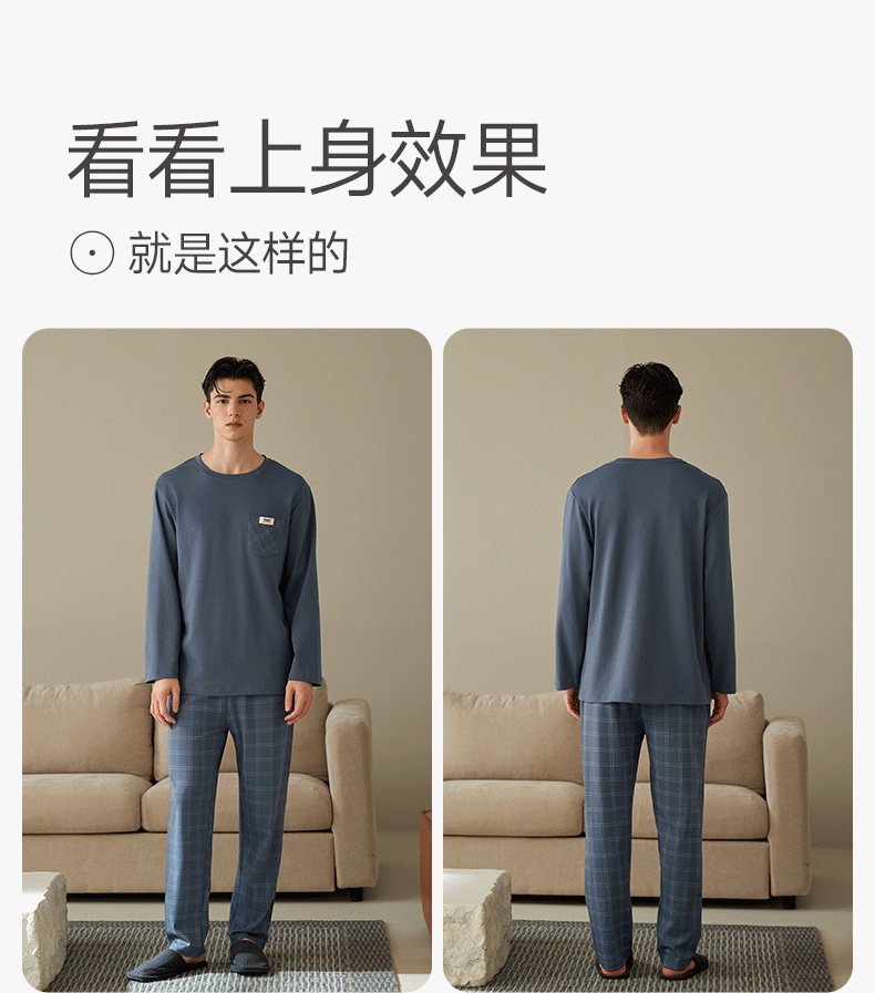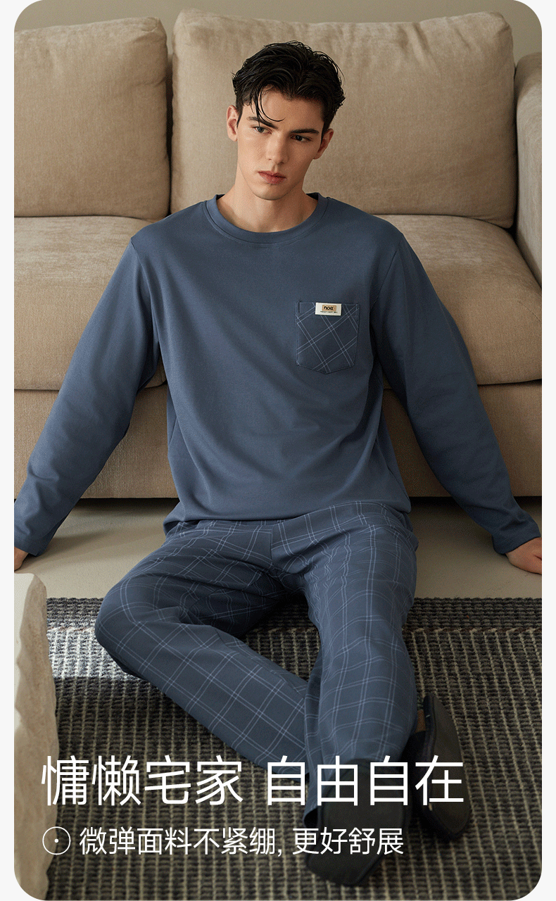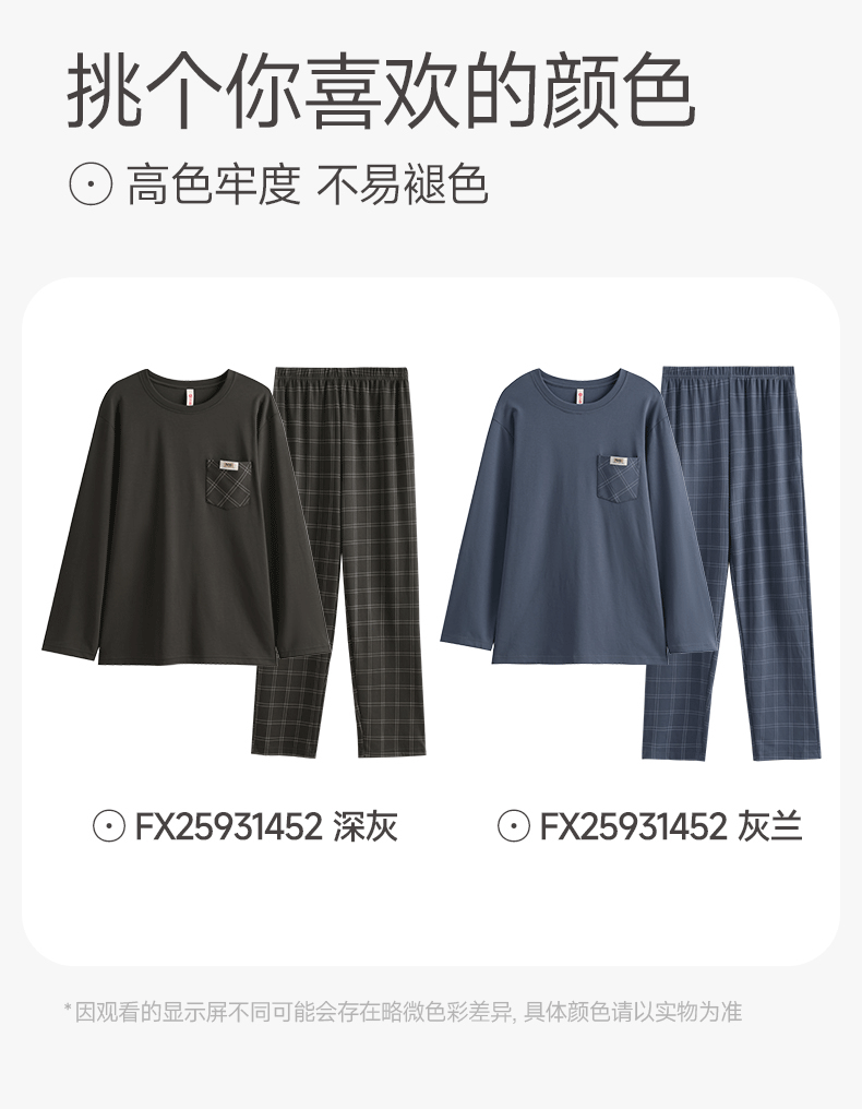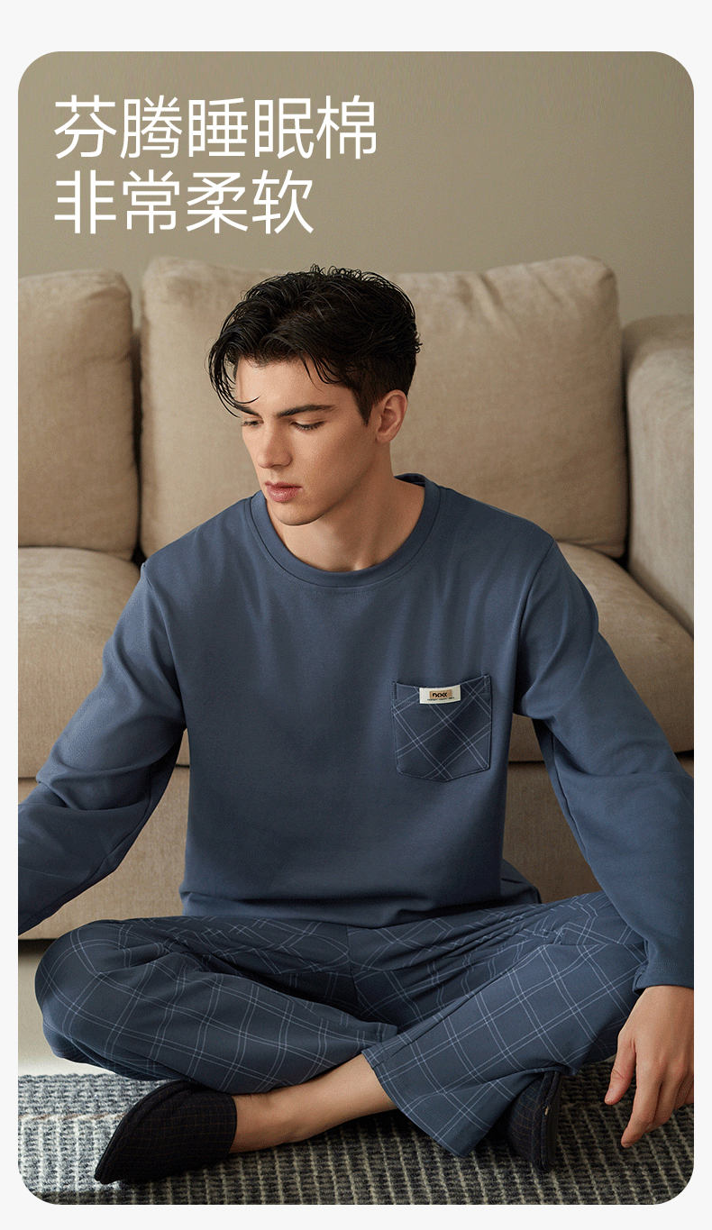 芬腾新款睡衣男士纯棉春秋季长袖长裤青年男款大码休闲家居服套装 FX25931452灰兰 XL 建议:146-166斤