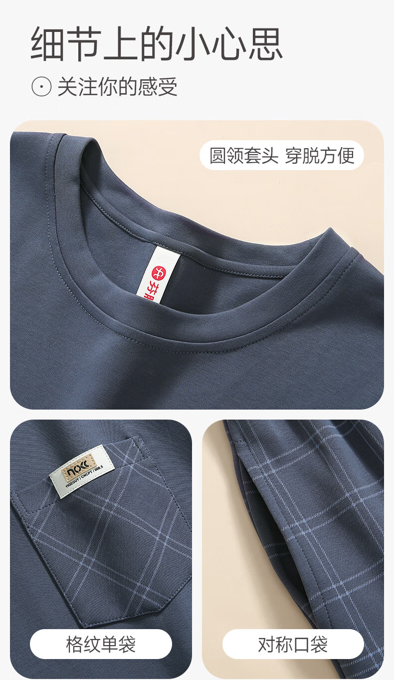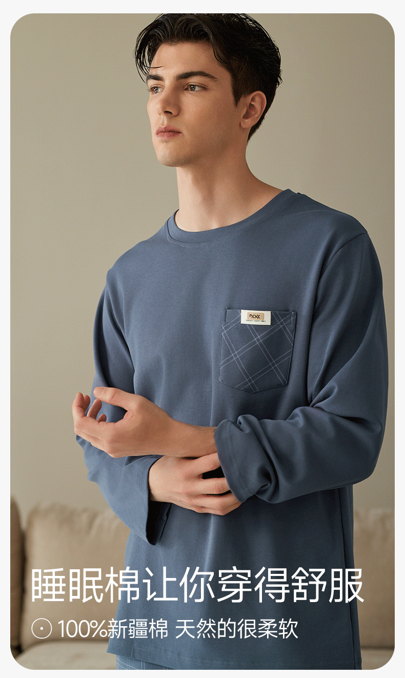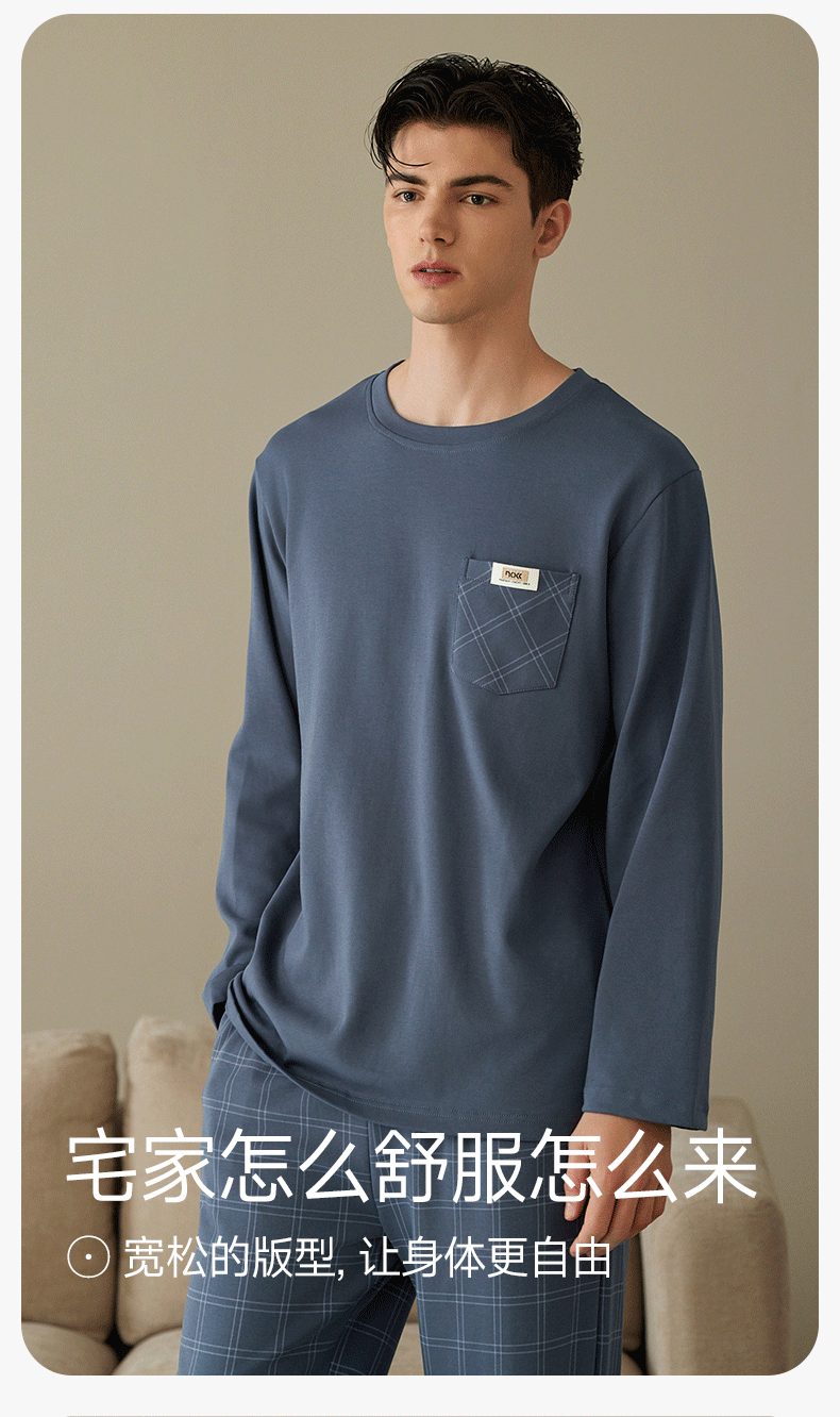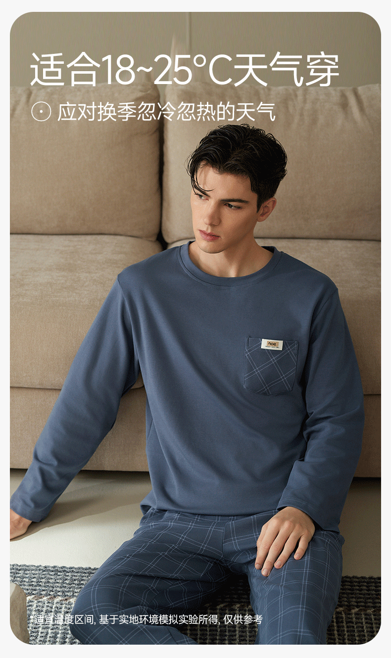 芬腾新款睡衣男士纯棉春秋季长袖长裤青年男款大码休闲家居服套装 FX25931452灰兰 XL 建议:146-166斤