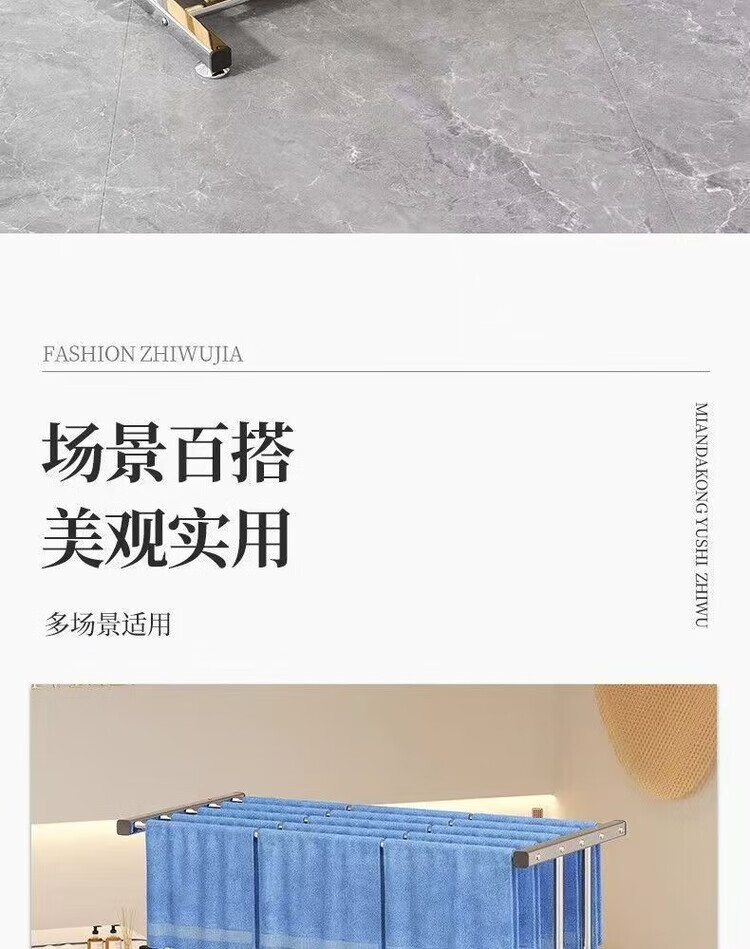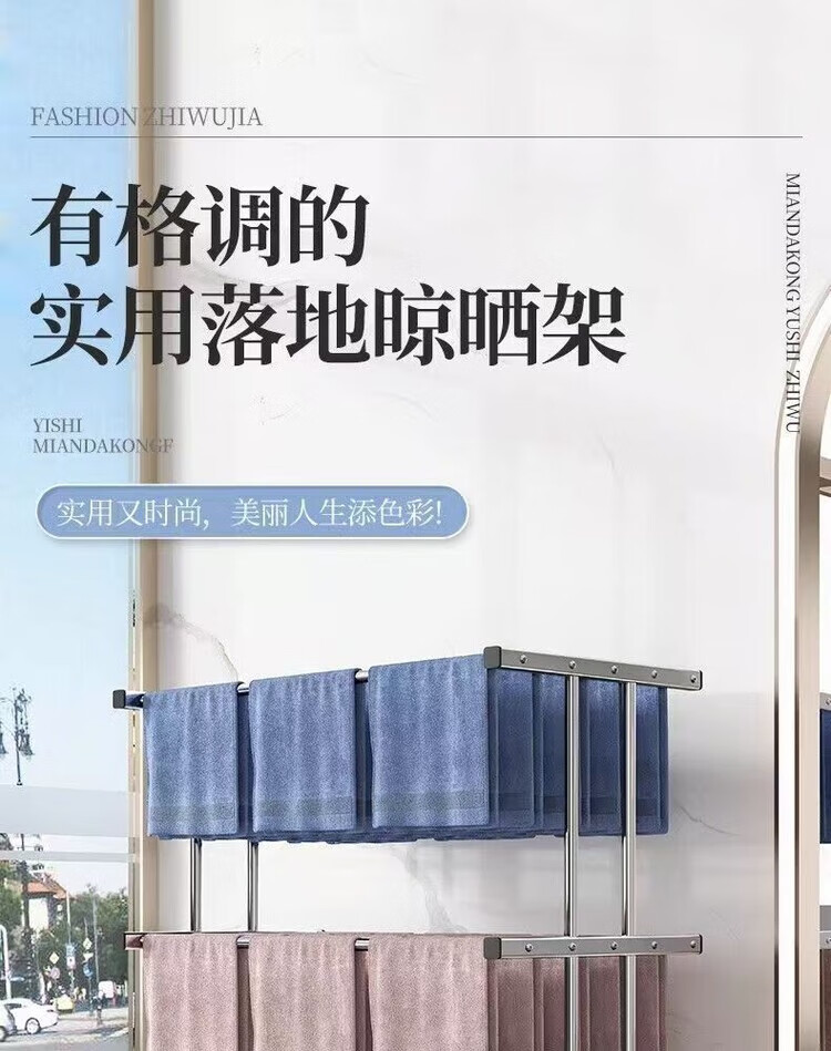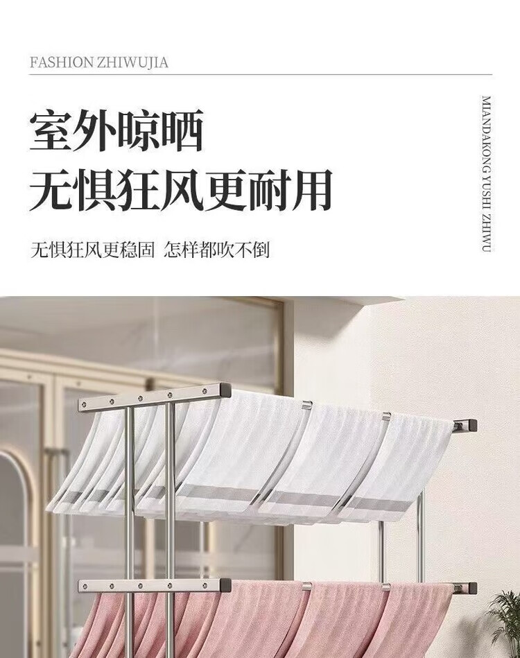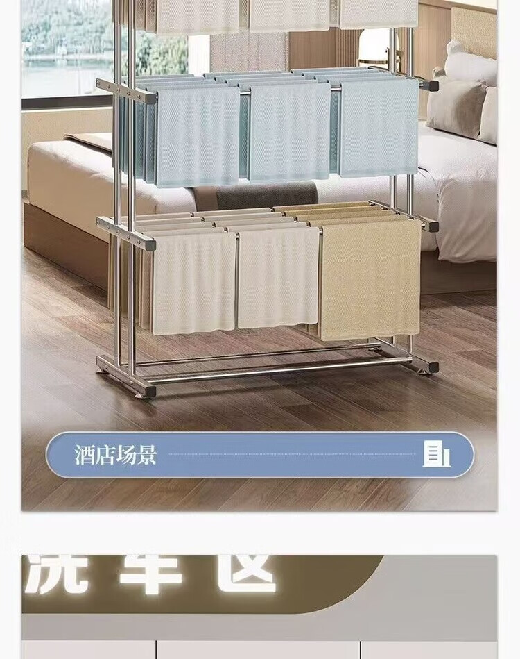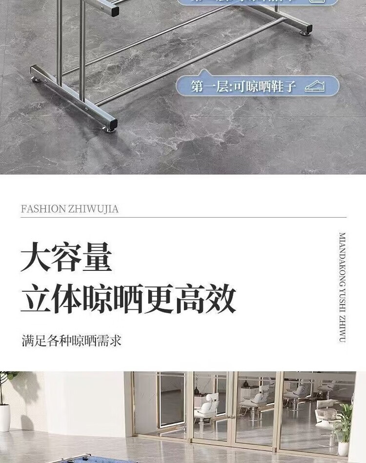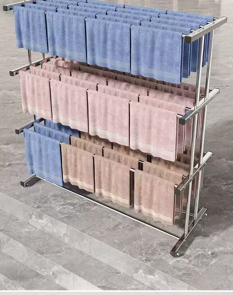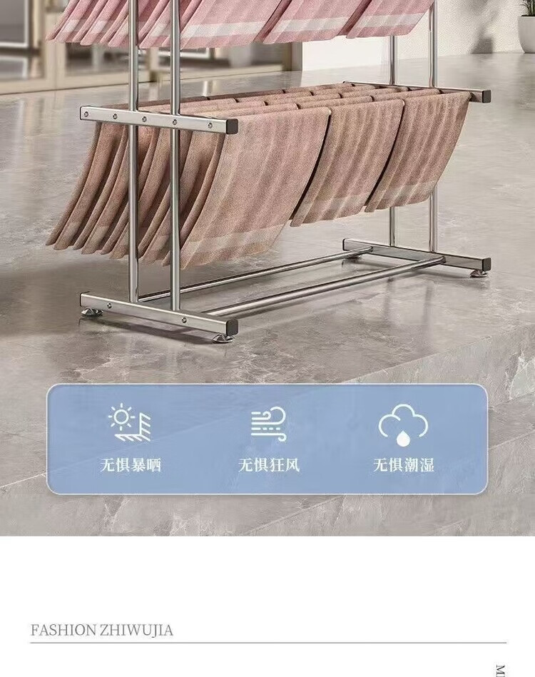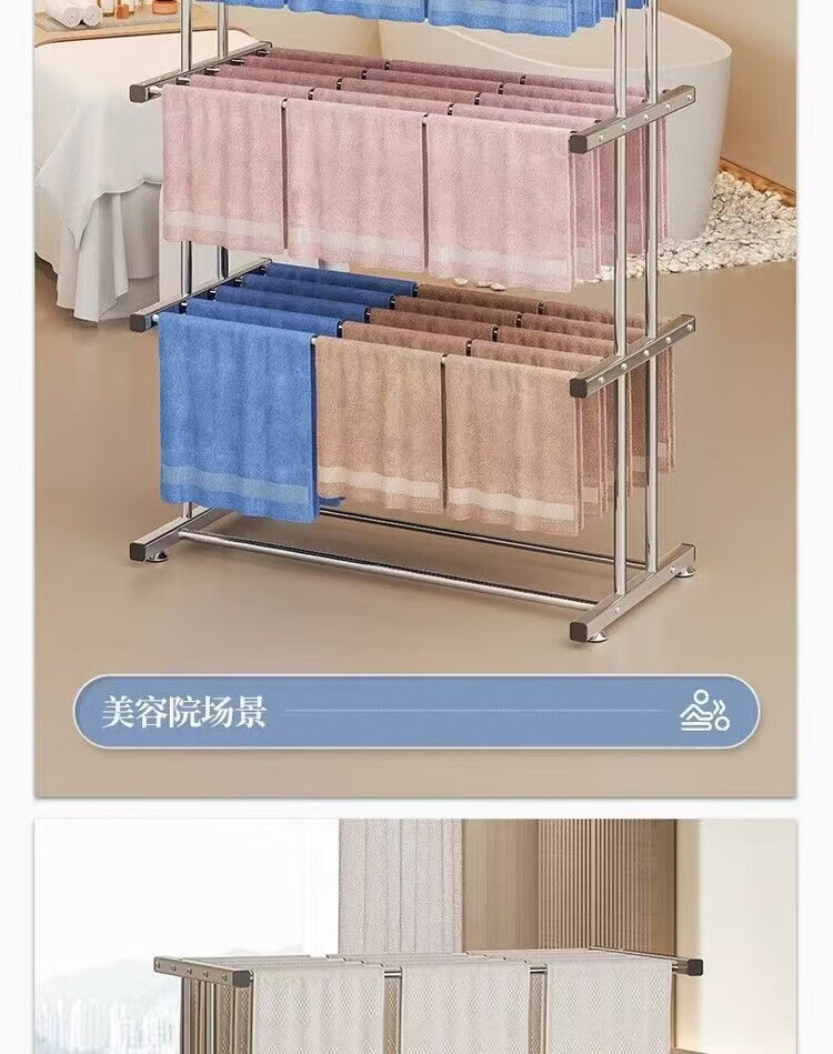 海诗圣堡挂毛巾架落地洗车美容院发廊理发美发店专用晒晾凉烘干衣架子收纳 【双层加固】室外晾晒*防风不倒 【80cm加厚不锈钢】大间距日常晾晒