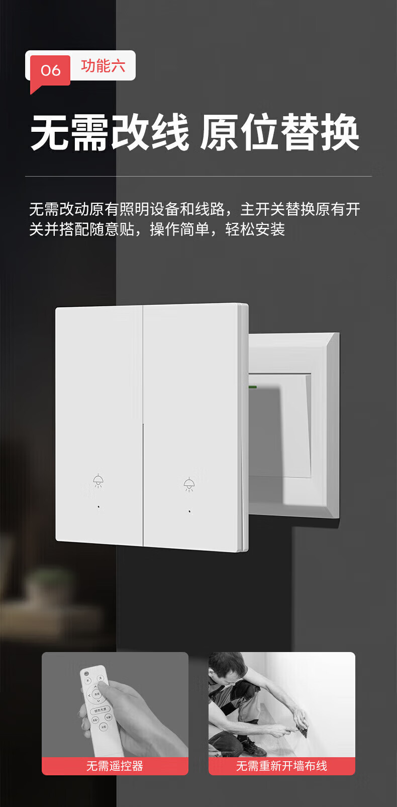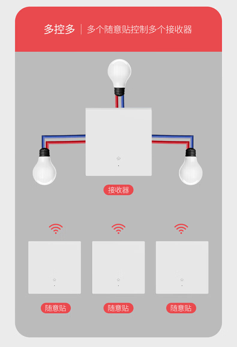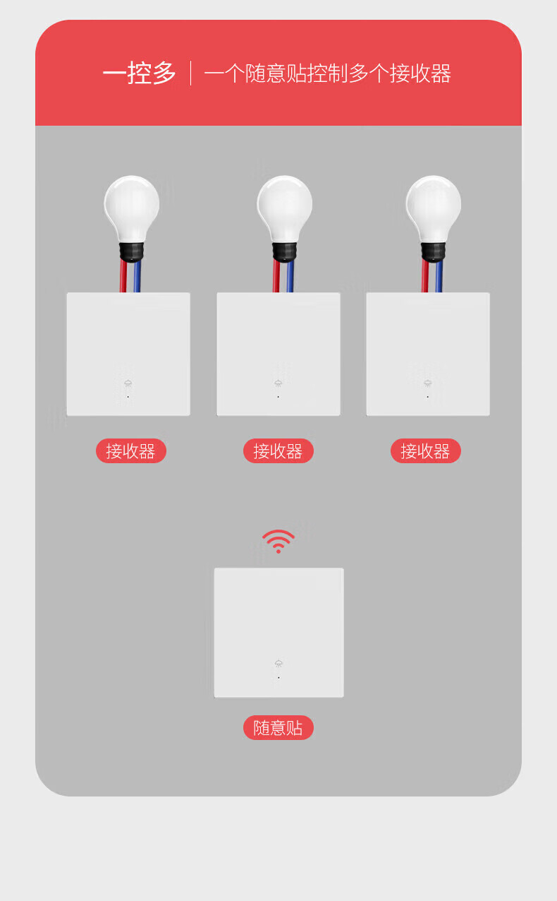 国际电工智能无线开关遥控照明灯双控220v远程子母遥控器免布线随意贴灰色 灰色2开主开关+2开随意贴*1【送电池】