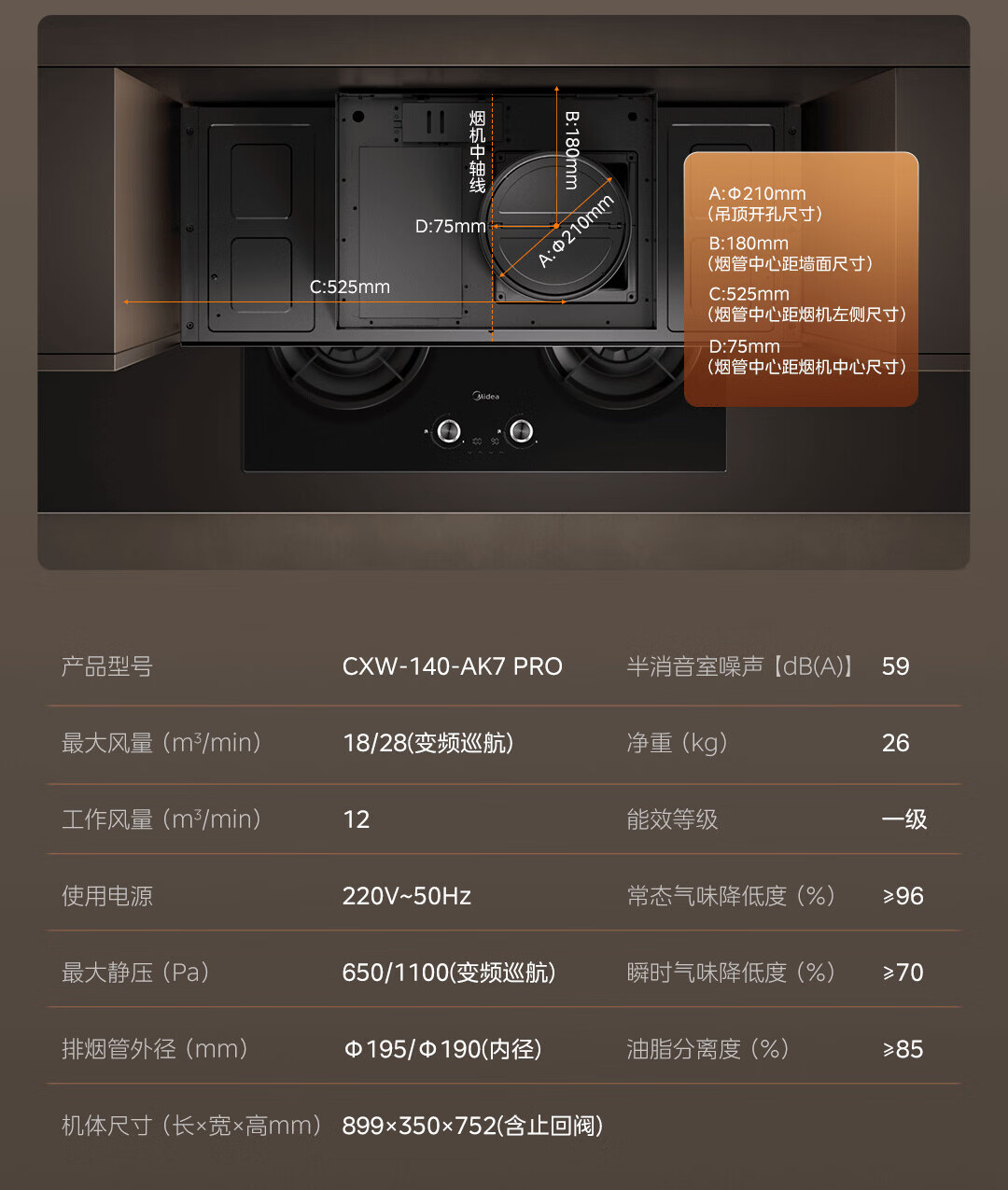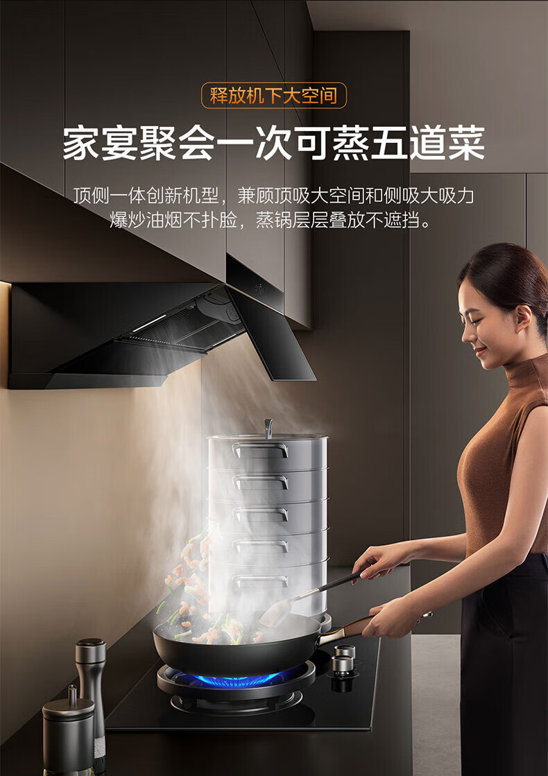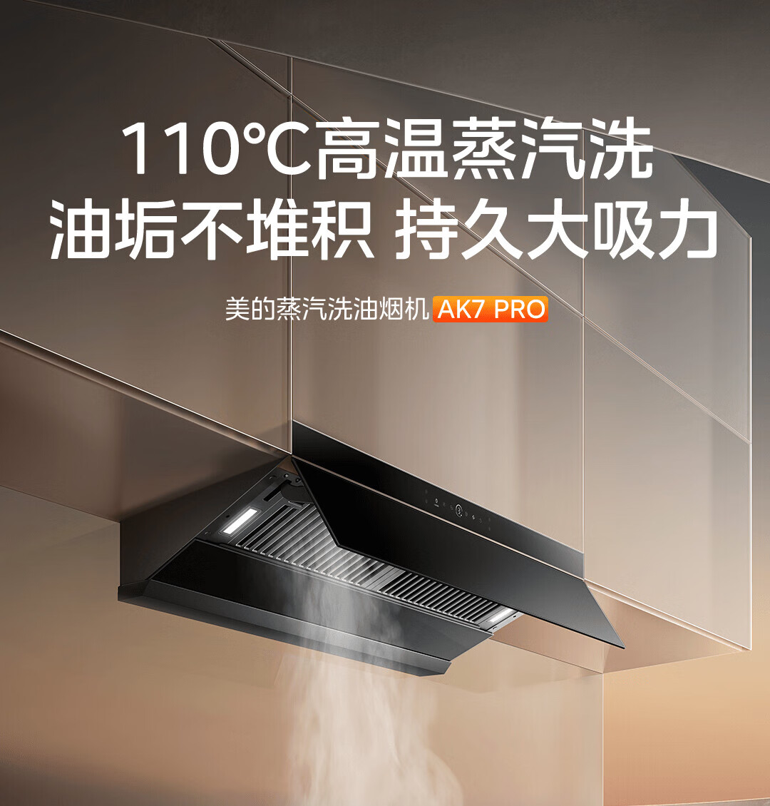 美的(Midea)【蒸汽洗AK7PRO/AK5PRO】抽吸排油烟机家用28风量大吸力顶侧一体变频自清洁高温蒸汽洗齐平橱柜 【天然气套装】AK7PRO+QD529双定时燃气灶 烟灶联动【国家补贴立减20%】