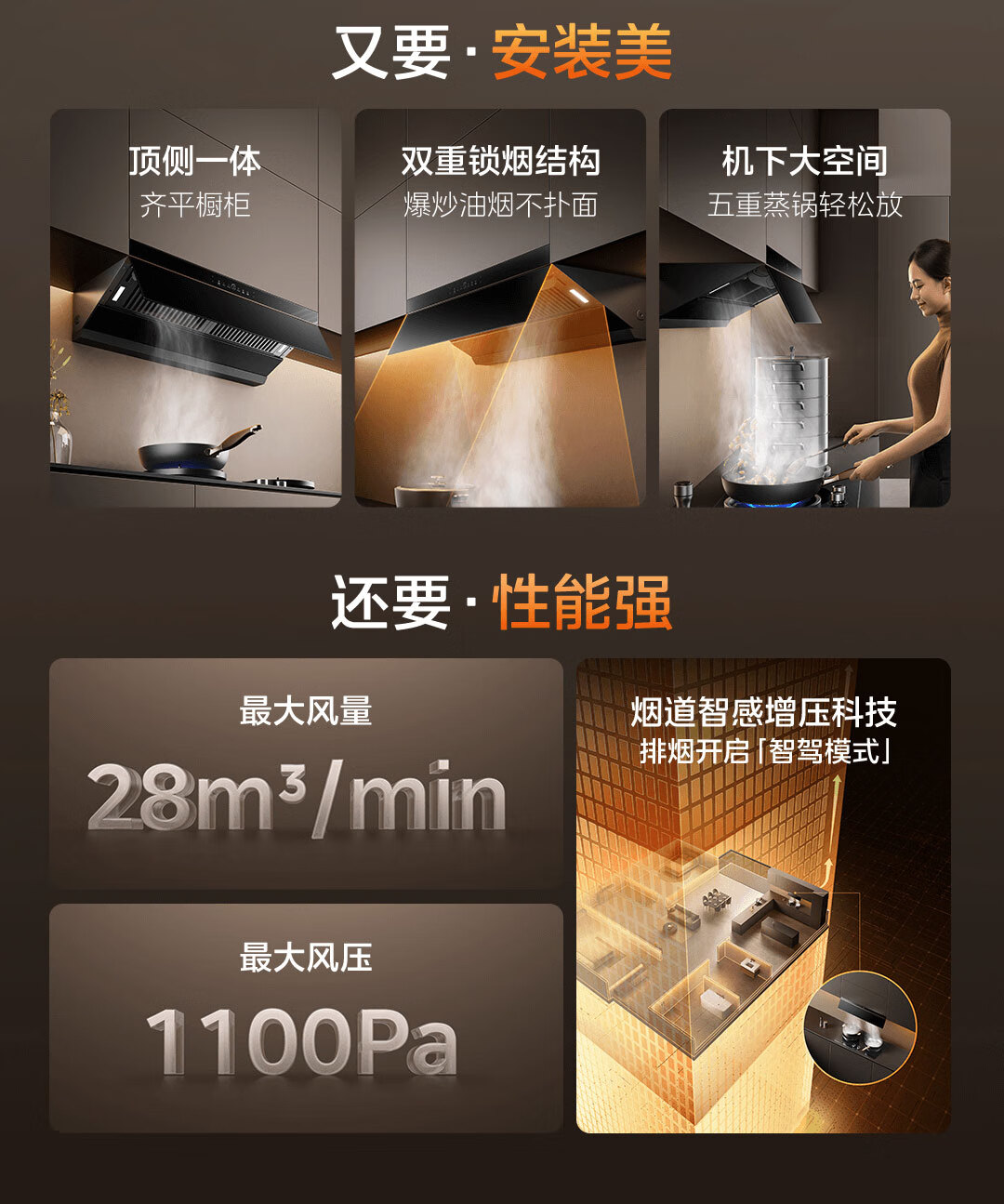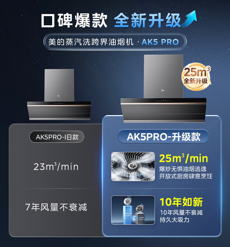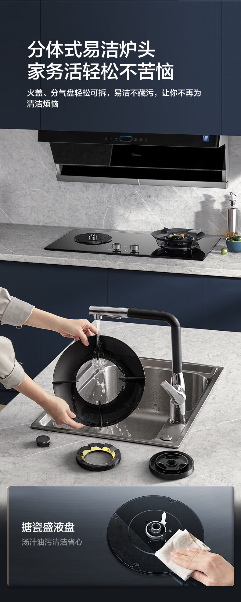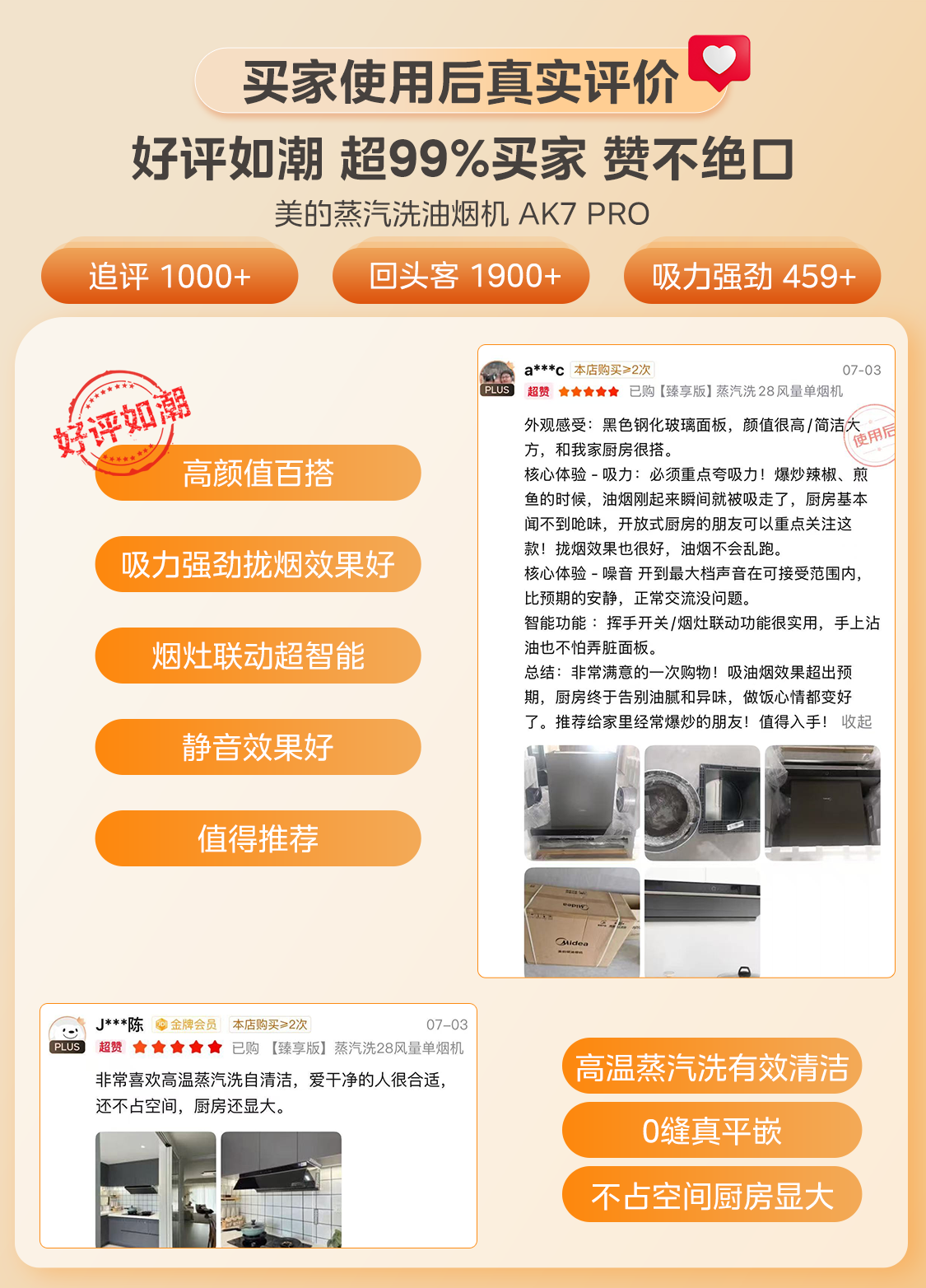 美的(Midea)【蒸汽洗AK7PRO/AK5PRO】抽吸排油烟机家用28风量大吸力顶侧一体变频自清洁高温蒸汽洗齐平橱柜 【天然气套装】AK7PRO+QD529双定时燃气灶 烟灶联动【国家补贴立减20%】