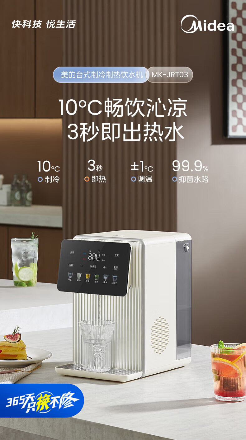 美的(Midea)电热水瓶小魔方 4L家用可制冷即热式饮水机 多段控温电热水壶 抑菌电水壶自清洁烧水壶 4L MK-JRT03