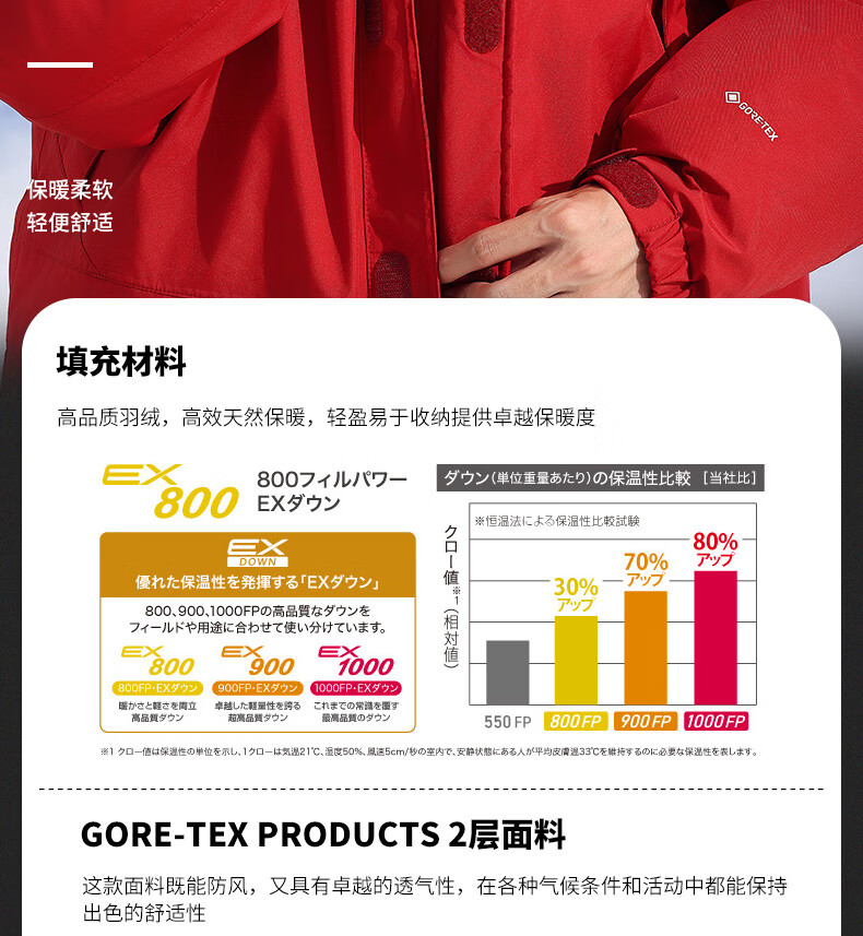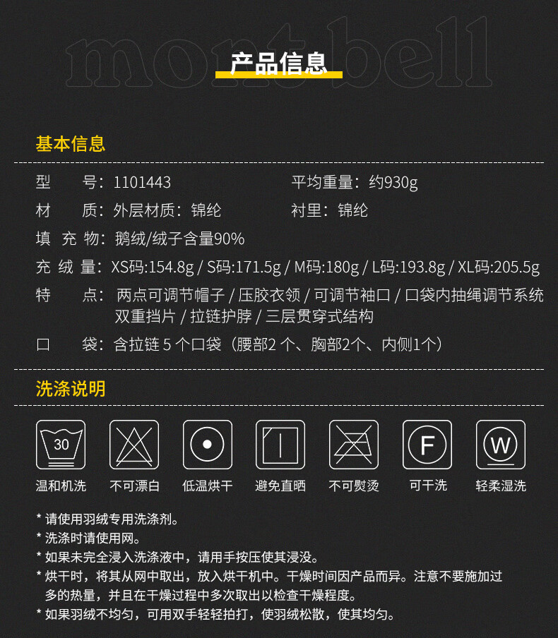 mont·bell探险系列羽绒服男女800高蓬鹅绒GTX科技面料防风保暖外套 1101443 深海军蓝 DKNV XL