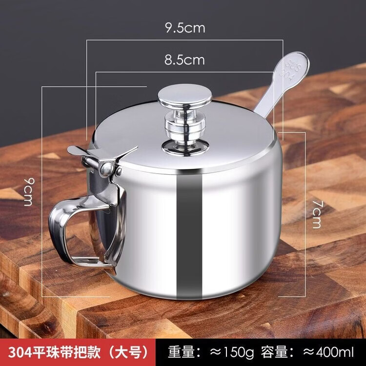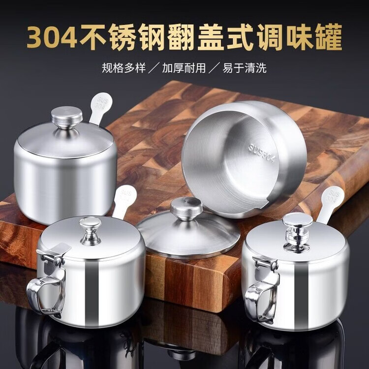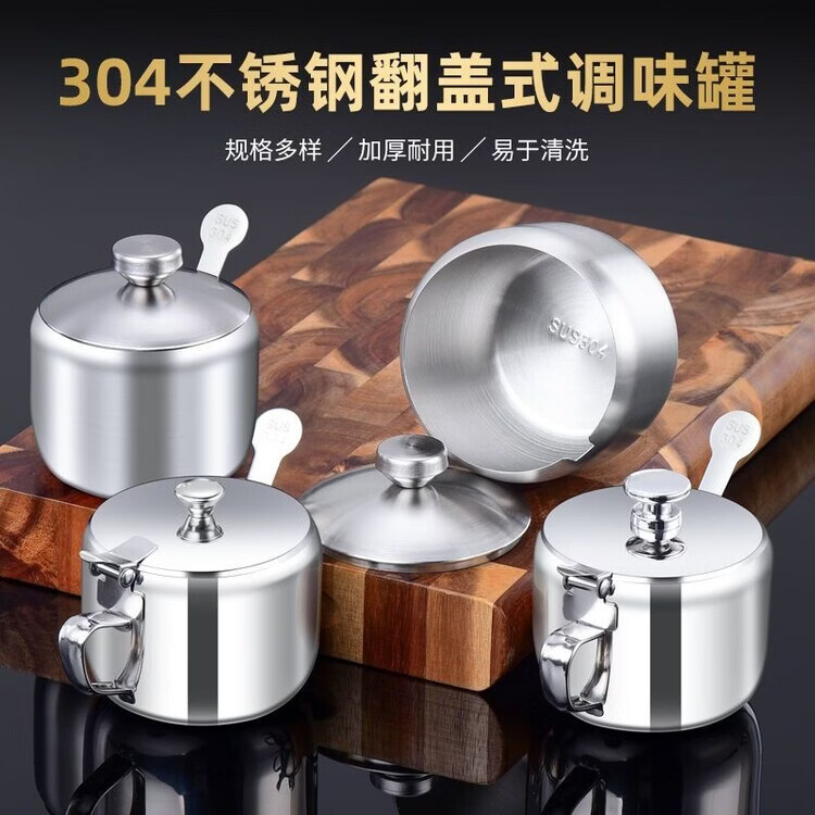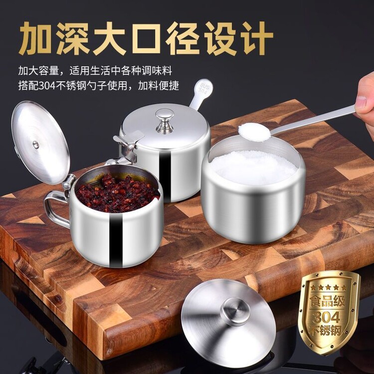 咏夏304不锈钢调料罐盐罐厨房家用调料盒大容量辣椒油味精调味料罐子 304调料罐(带把手)中号 (1个装)送勺子