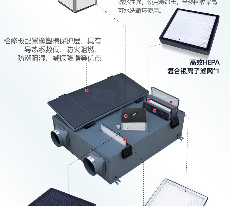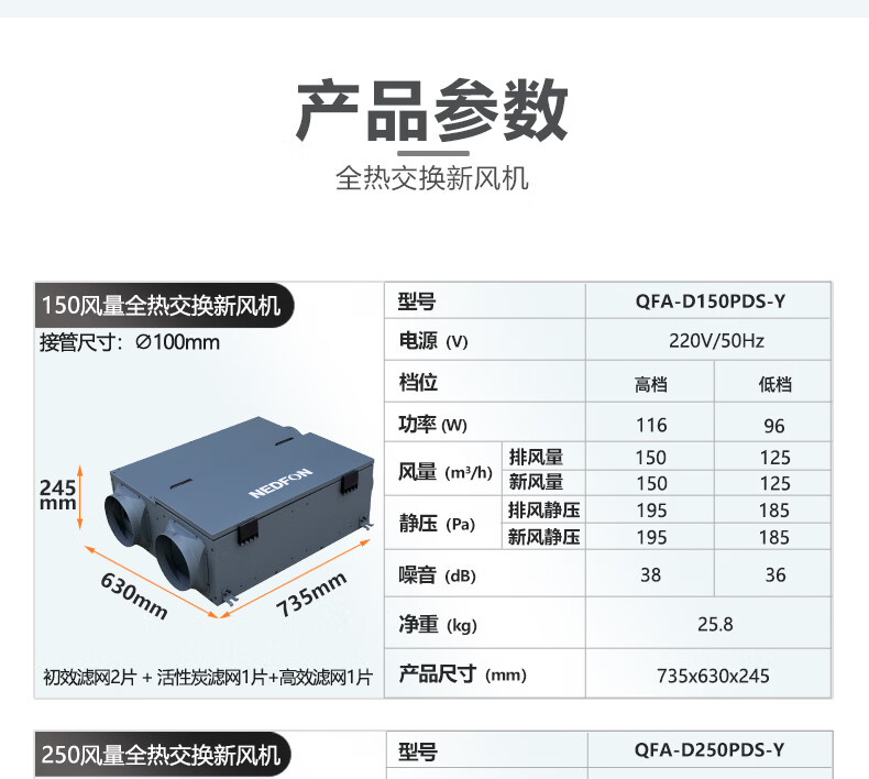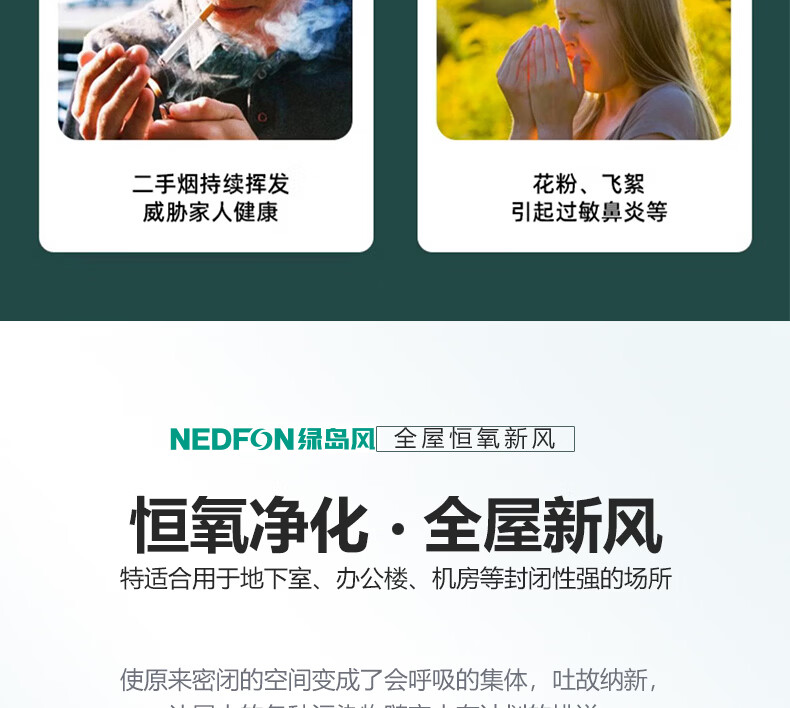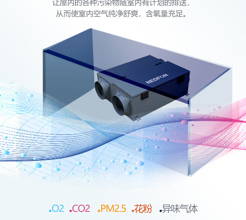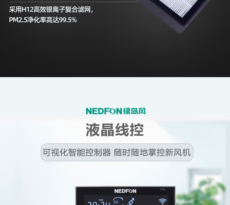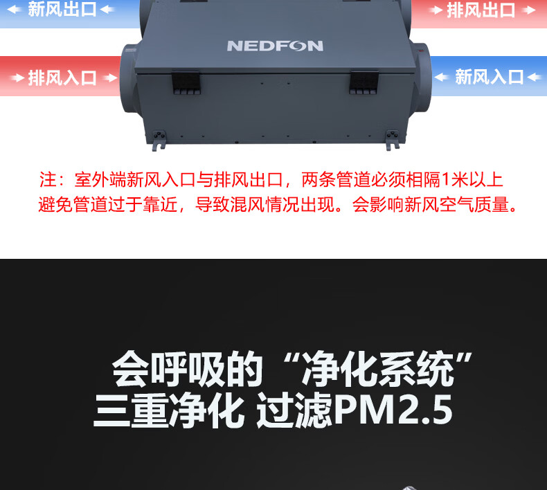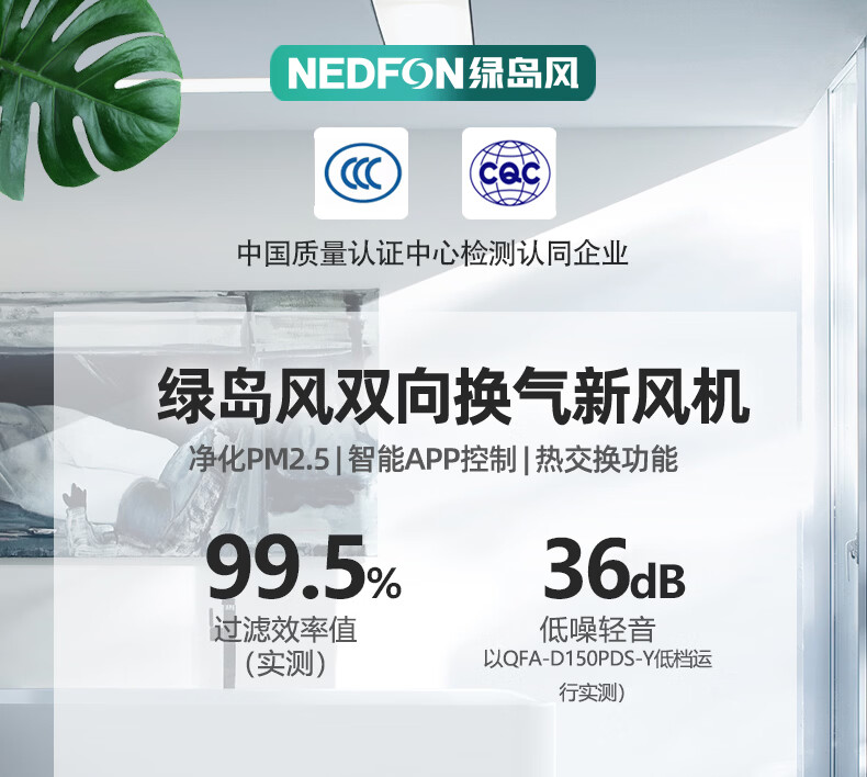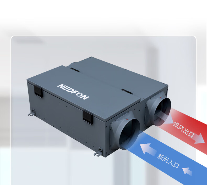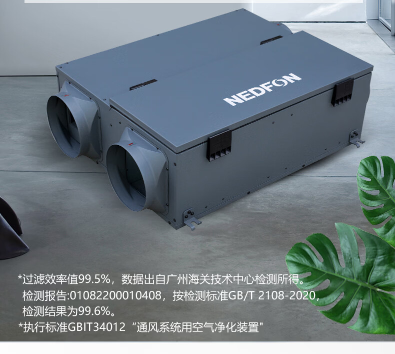 绿岛风(Nedfon)新风系统家用全屋通风换气吊顶双向新风机地下室商用带热交换过滤PM2.5带APP智控【三层过滤】 吊顶式 150m³/h 40-59㎡