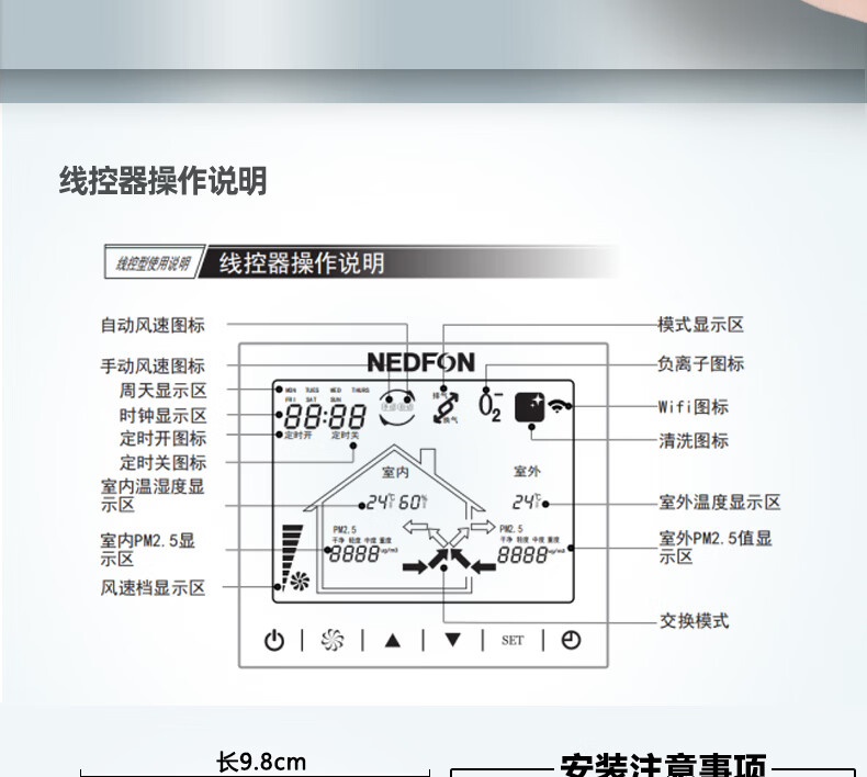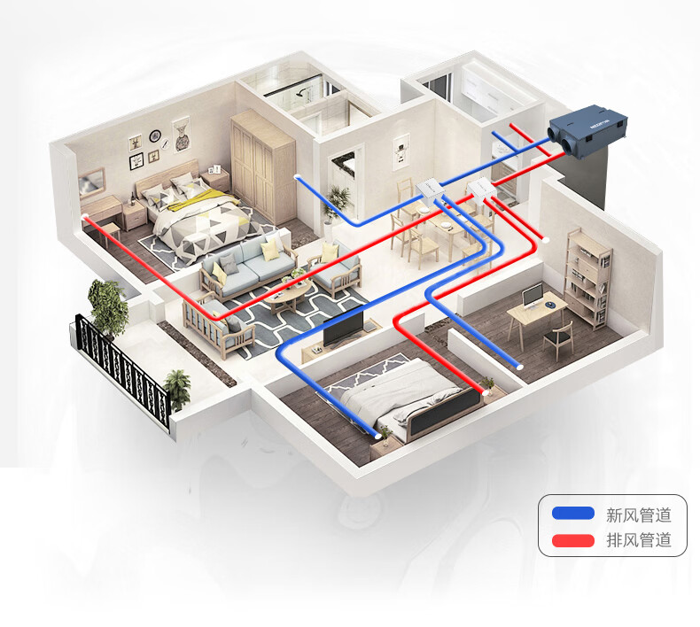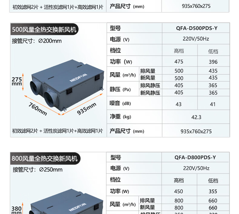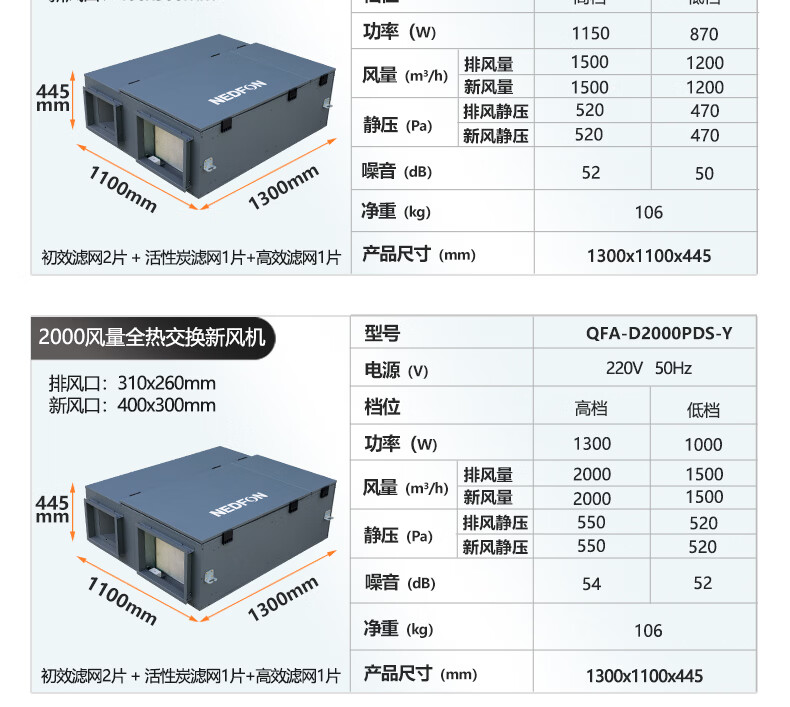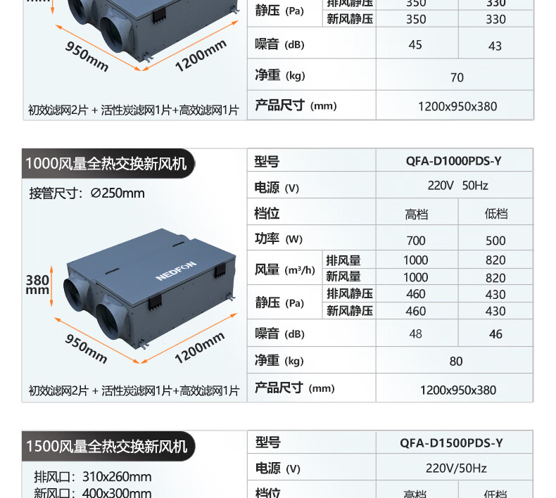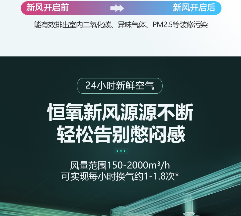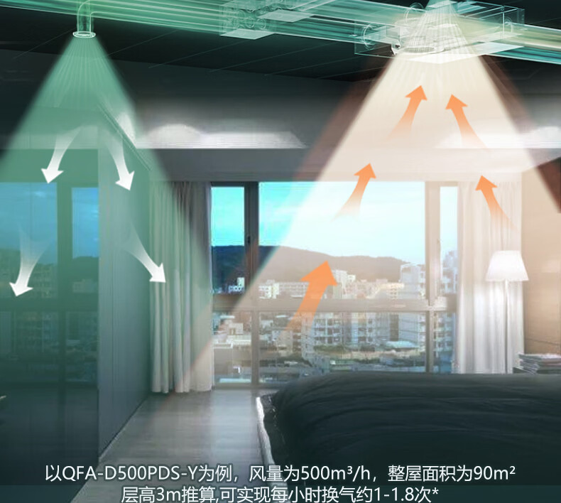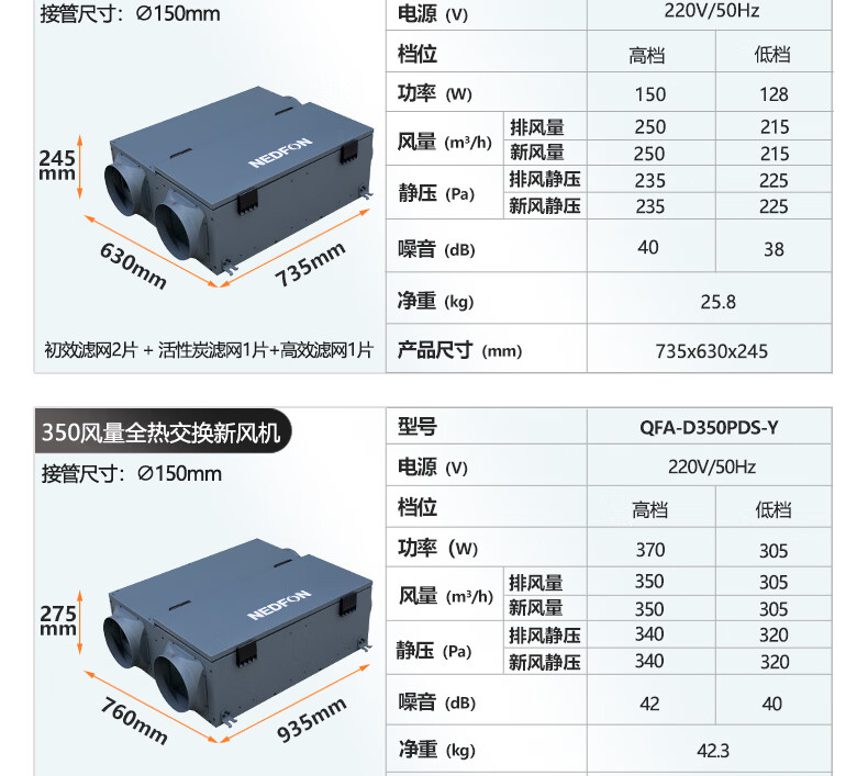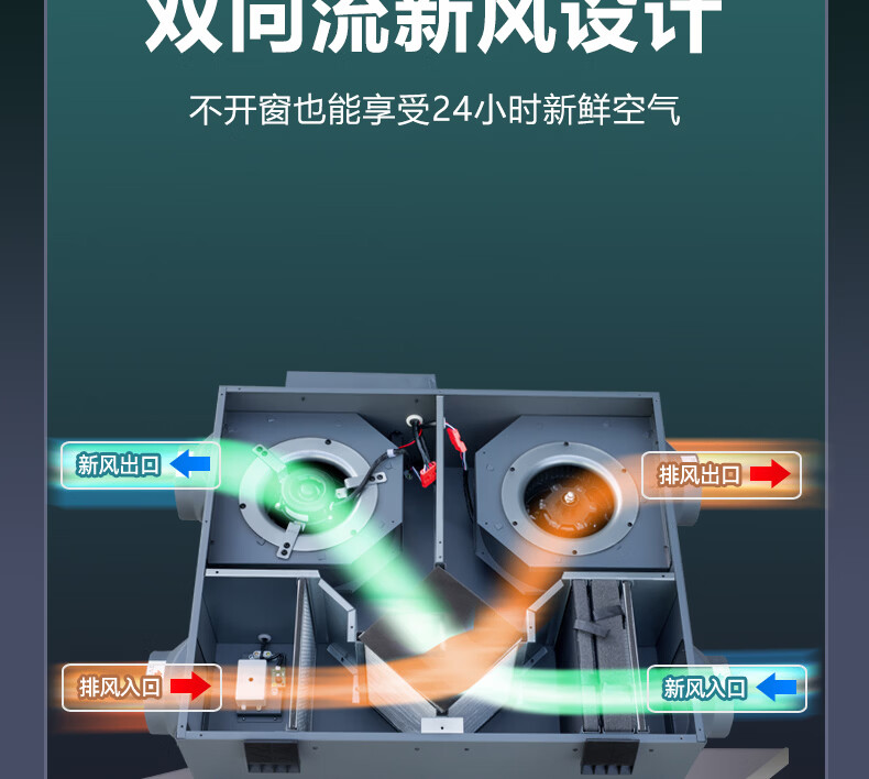 绿岛风(Nedfon)新风系统家用全屋通风换气吊顶双向新风机地下室商用带热交换过滤PM2.5带APP智控【三层过滤】 吊顶式 150m³/h 40-59㎡