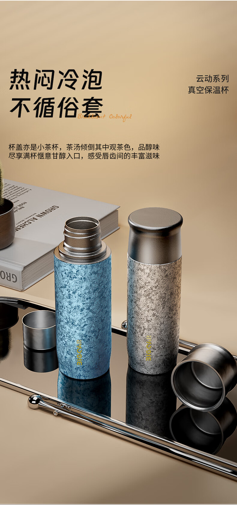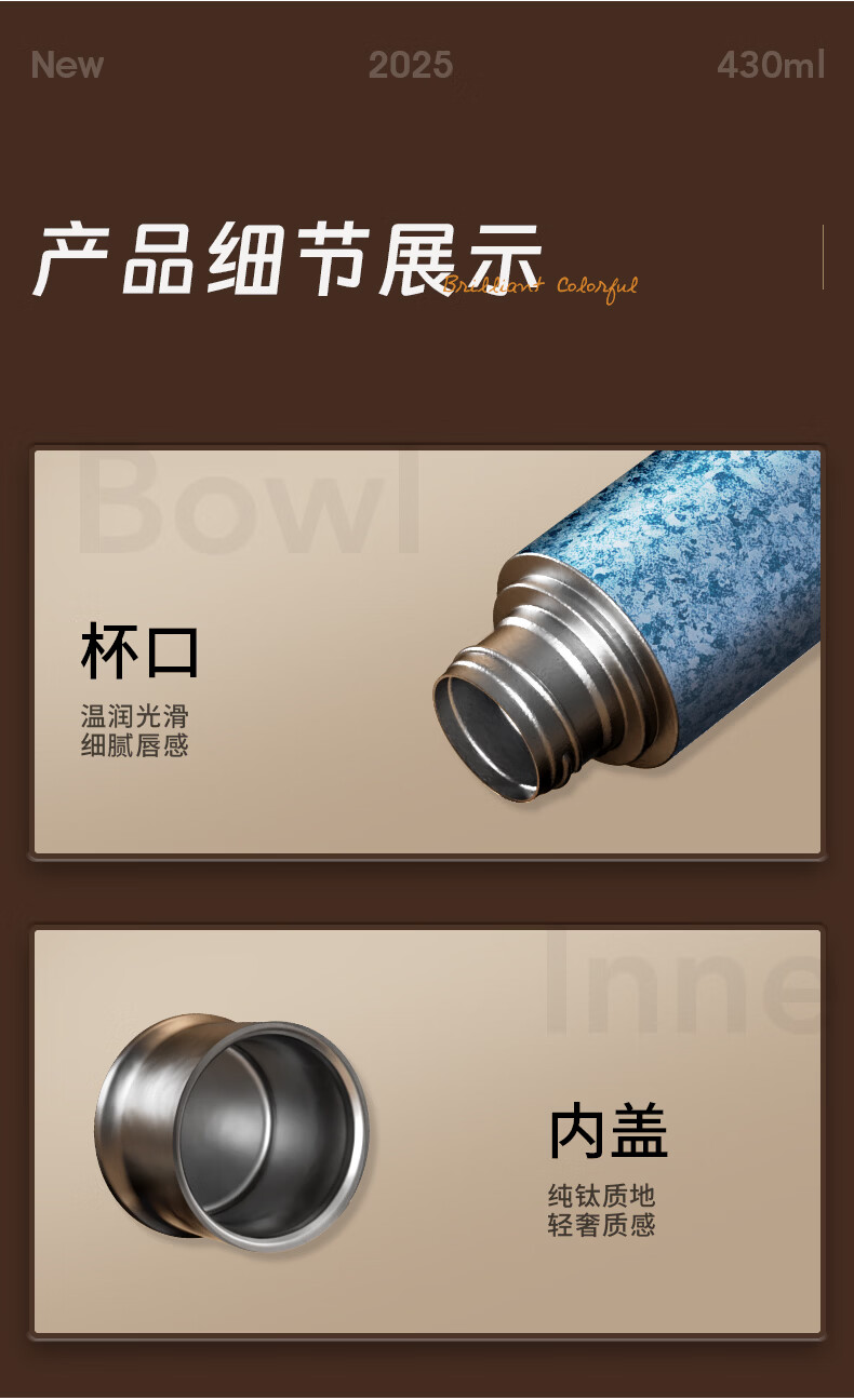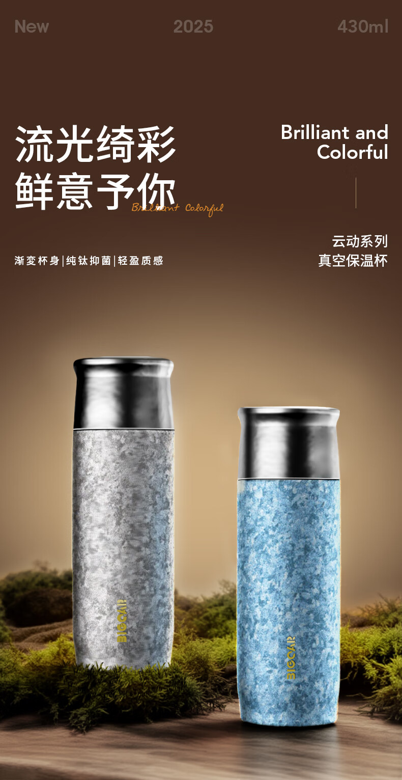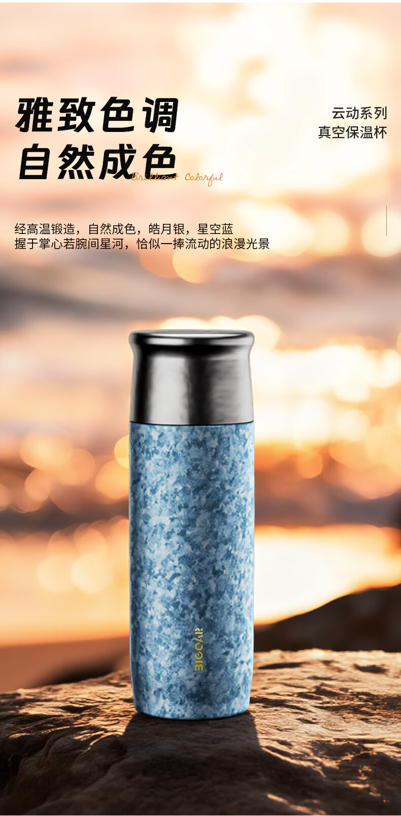 大卡纯钛保温杯双层钛高端钛闷茶杯闷泡水杯户外车载高颜值水杯 星空蓝【内外纯钛+礼盒】430ml
