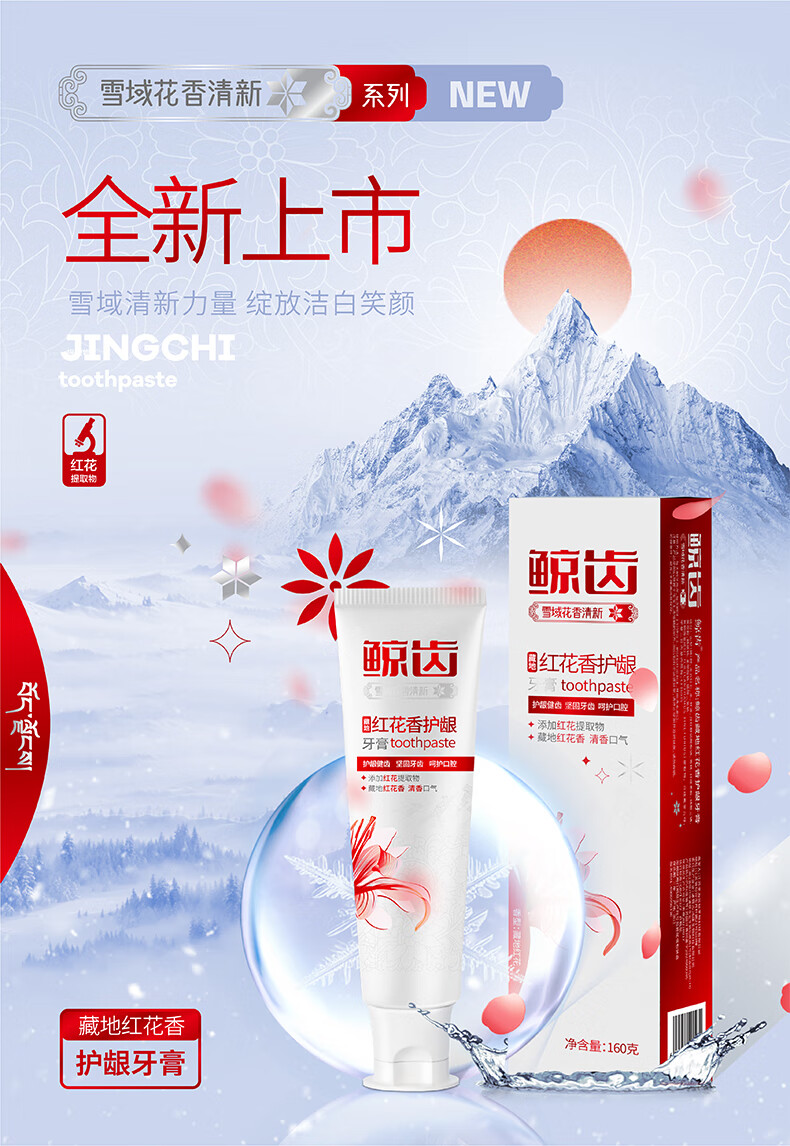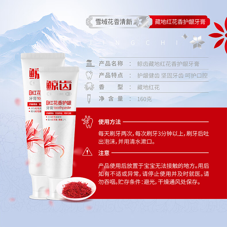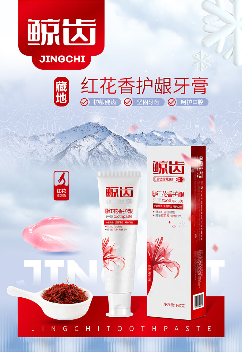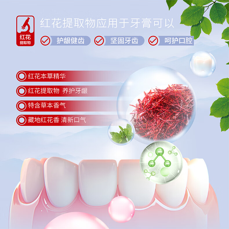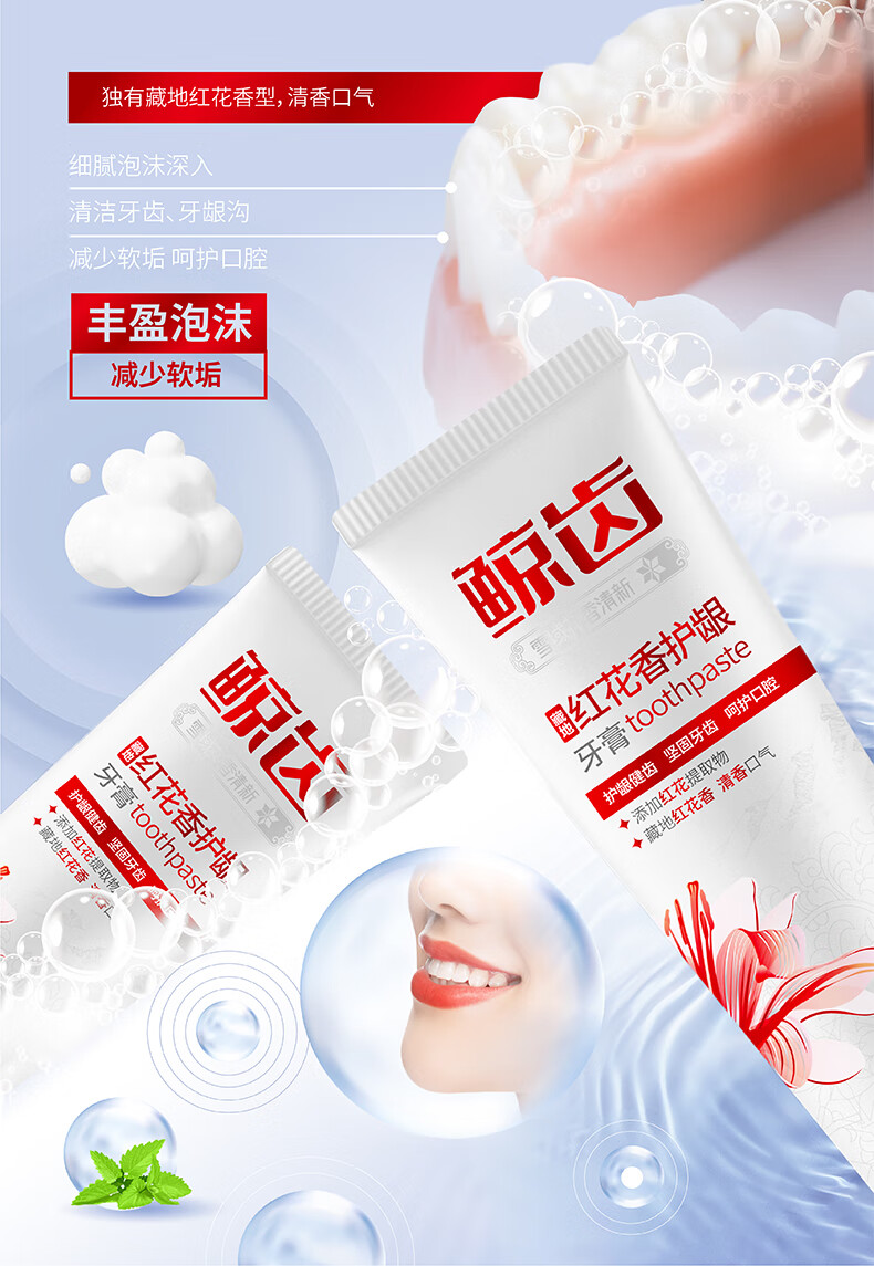 鲸齿红花香型清新口气清洁牙齿呵护口腔红花提取物护龈成人不含氟牙膏 160克*4支共640克红花香型牙膏