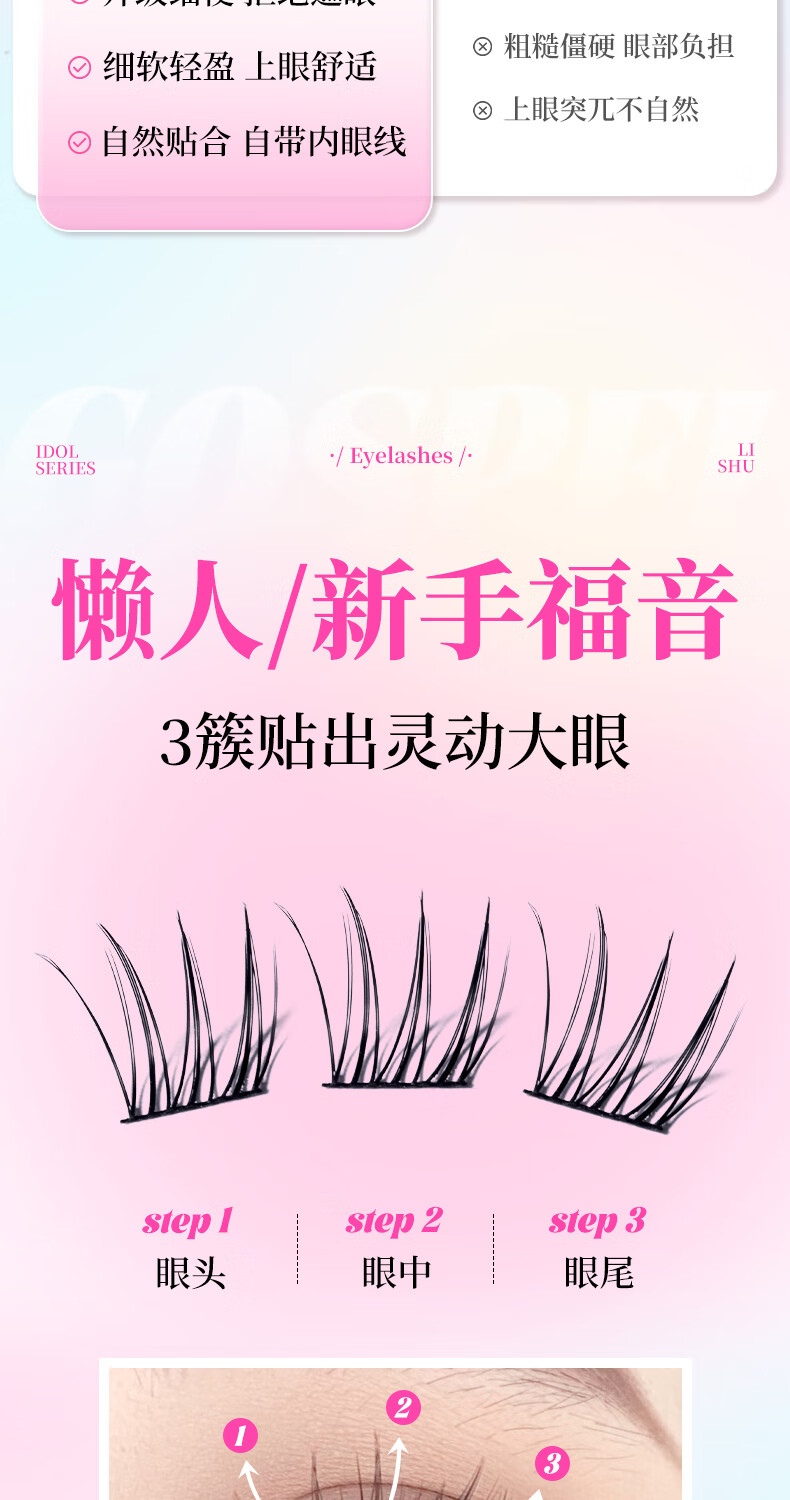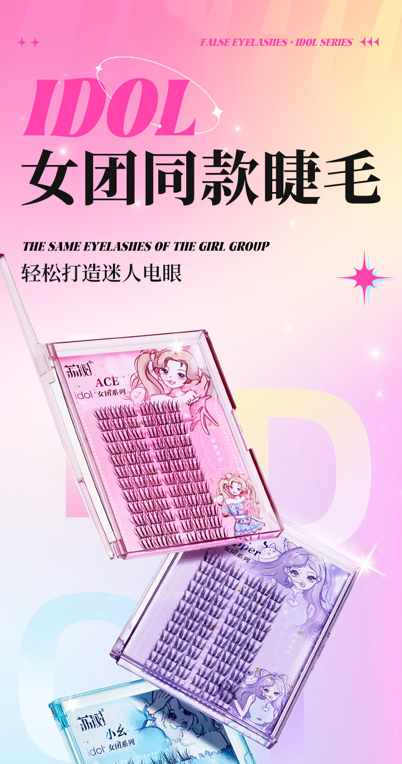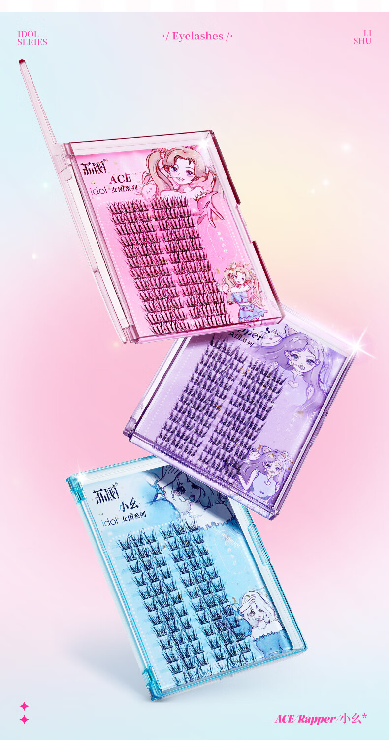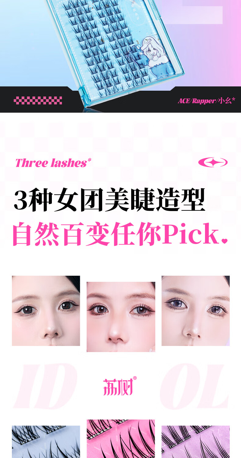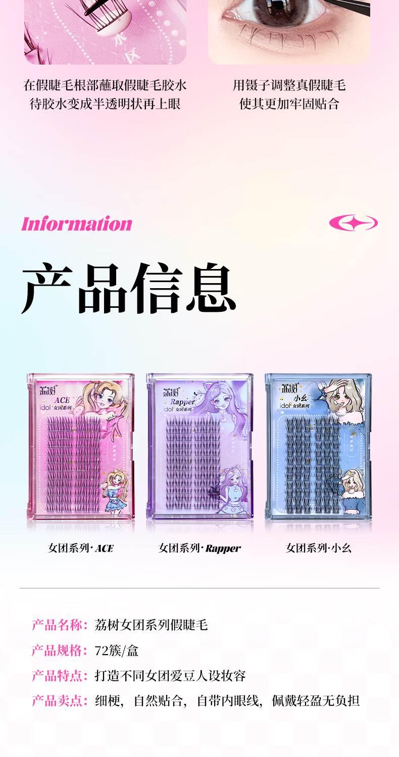 荔树女团爱豆系列3款假睫毛书女自然仿真三部曲单簇分段式 女团爱豆系列-全能ACE 72簇 无胶水镊子