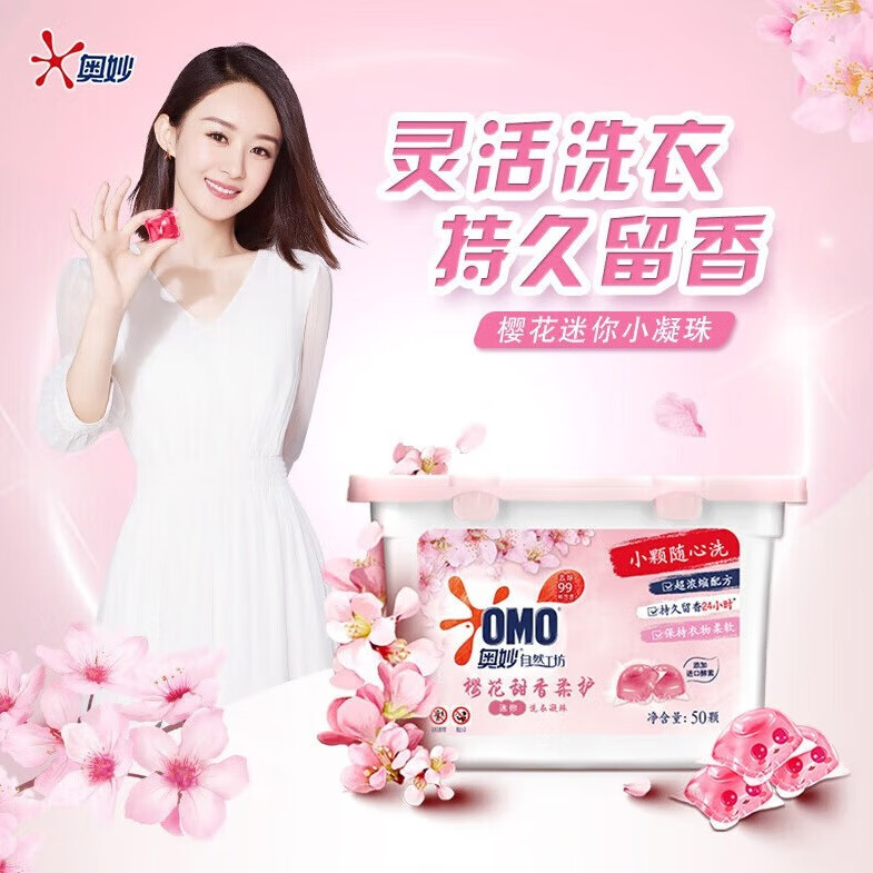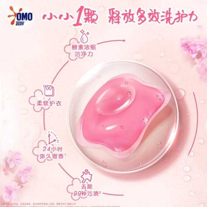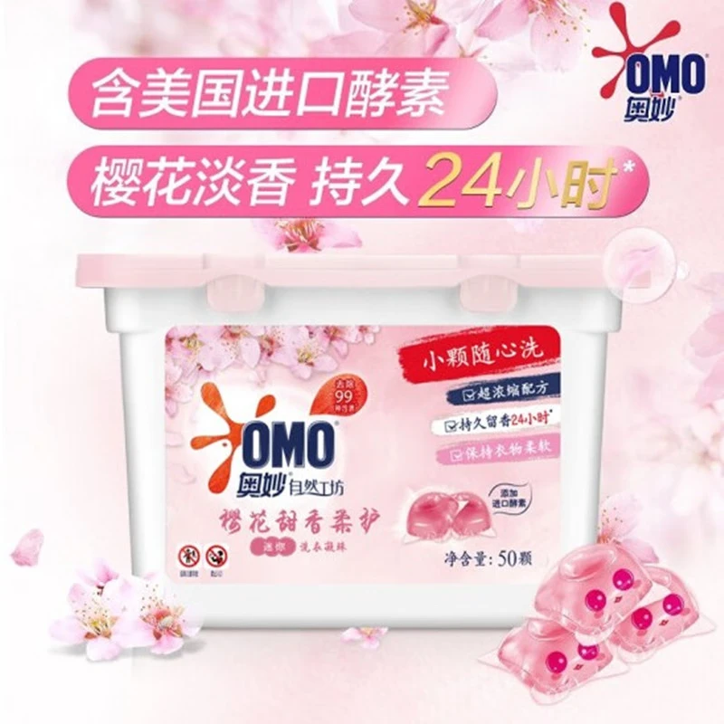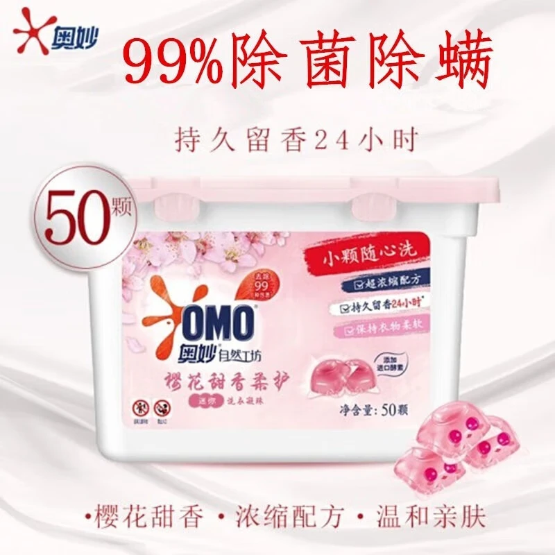 奥妙洗衣凝珠自然工坊护衣护色樱花甜香除菌除螨浓缩洗衣液粉皂 (2盒100颗)樱花甜香