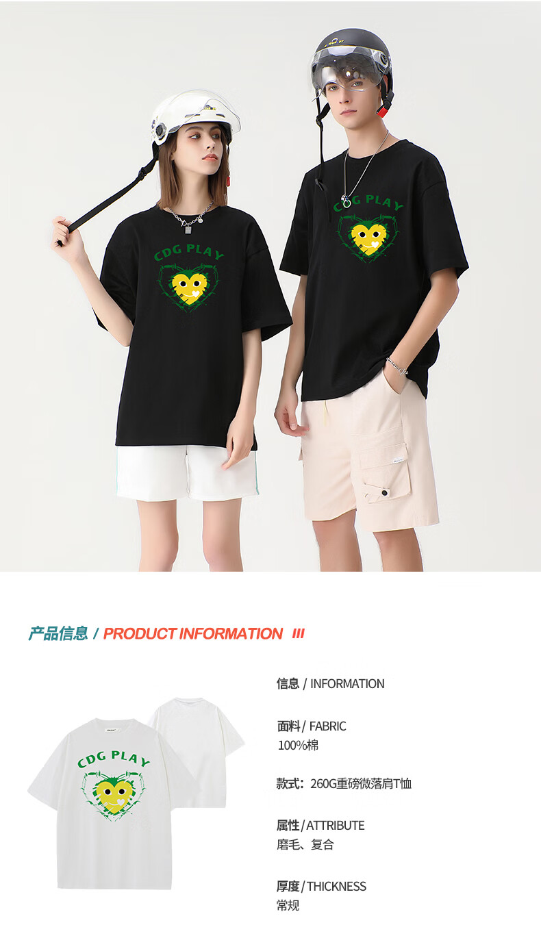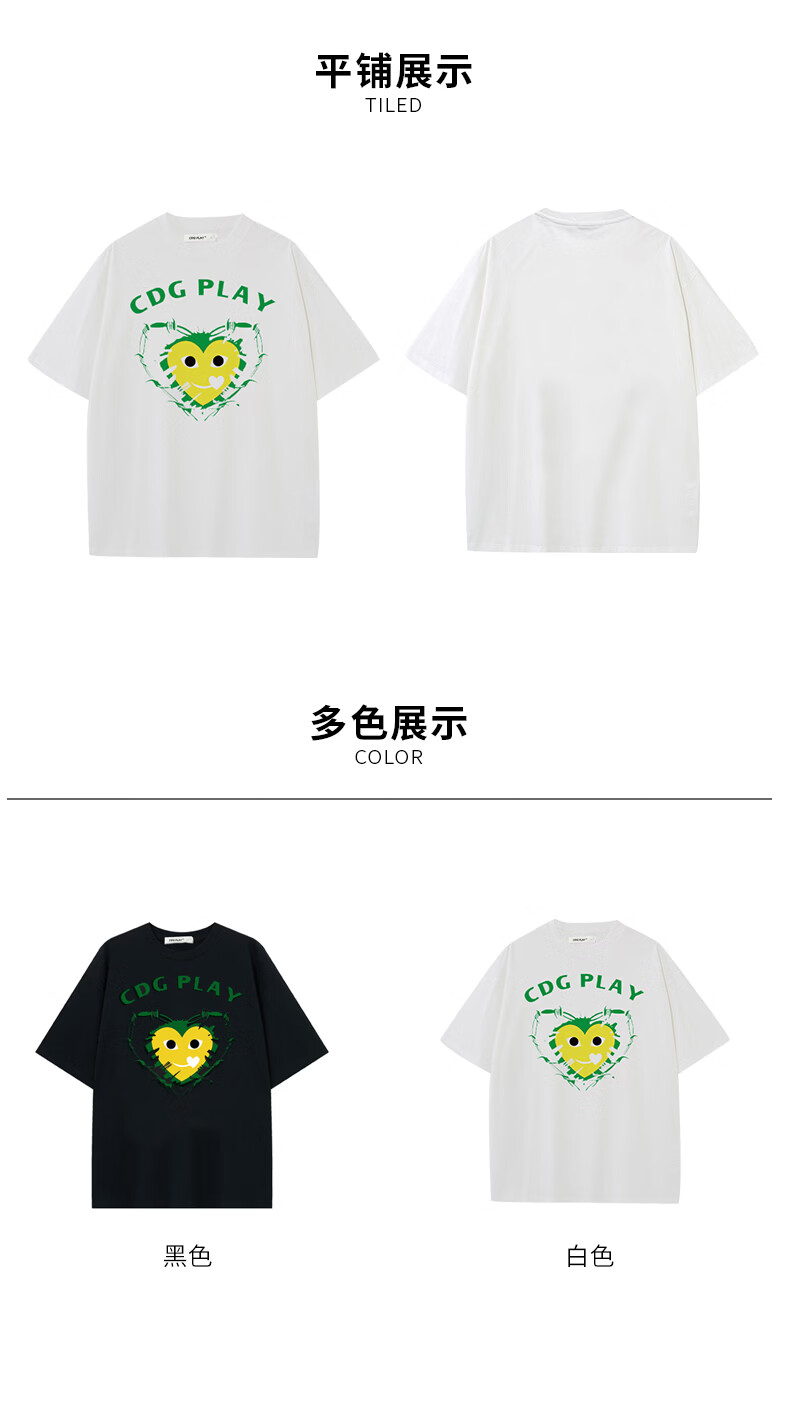 CDGPLAY动漫短袖T恤夏装日常潮流卡通黑色ins春夏新款纯棉t恤半袖上衣 白色 S