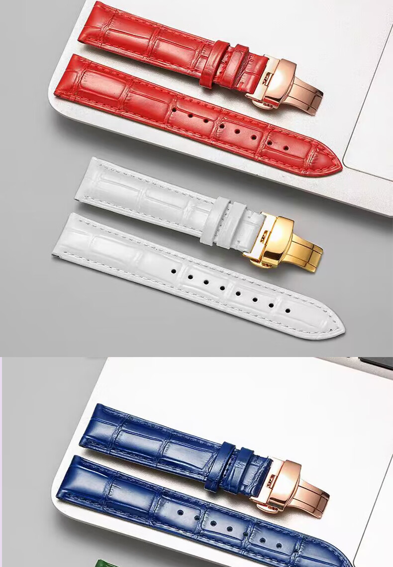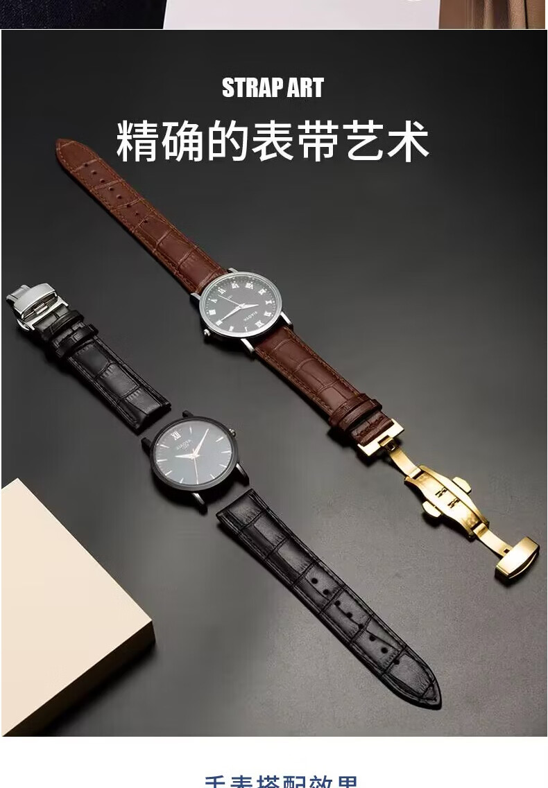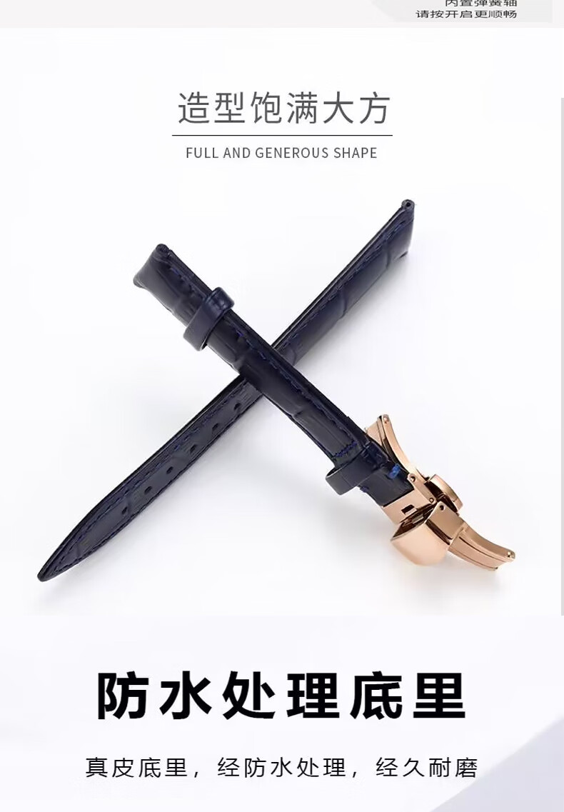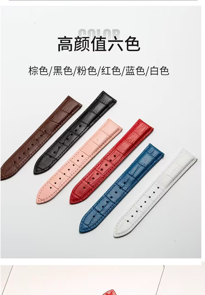 适配卡地亚坦克手表带真皮原装cartie伦敦钥匙solo男女蝴蝶扣表链 (头层牛皮)黑色-银针扣 接口宽度-14mm