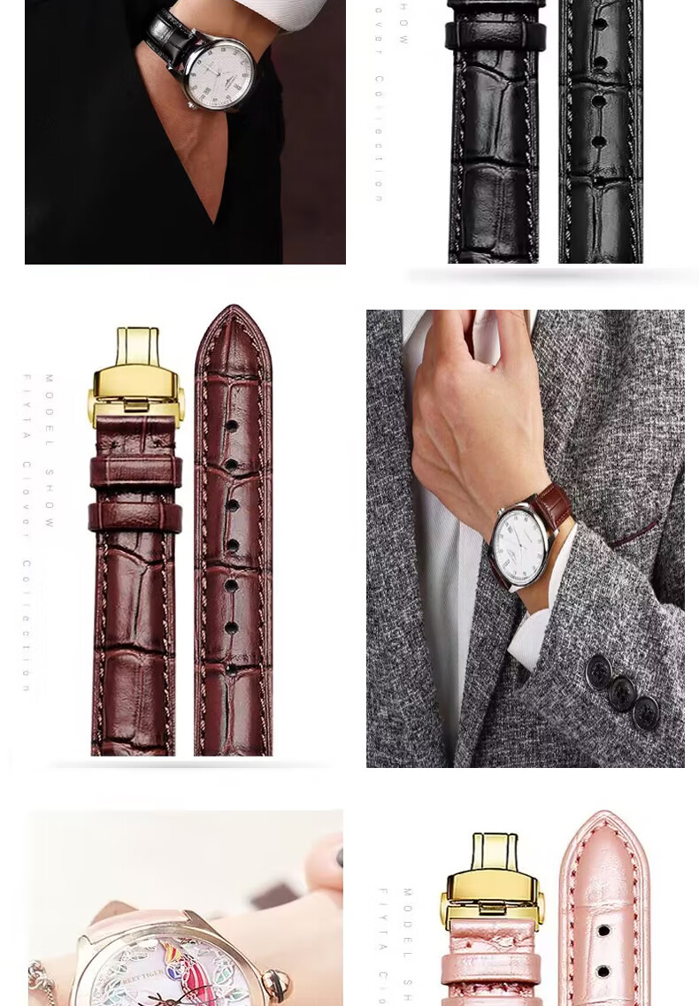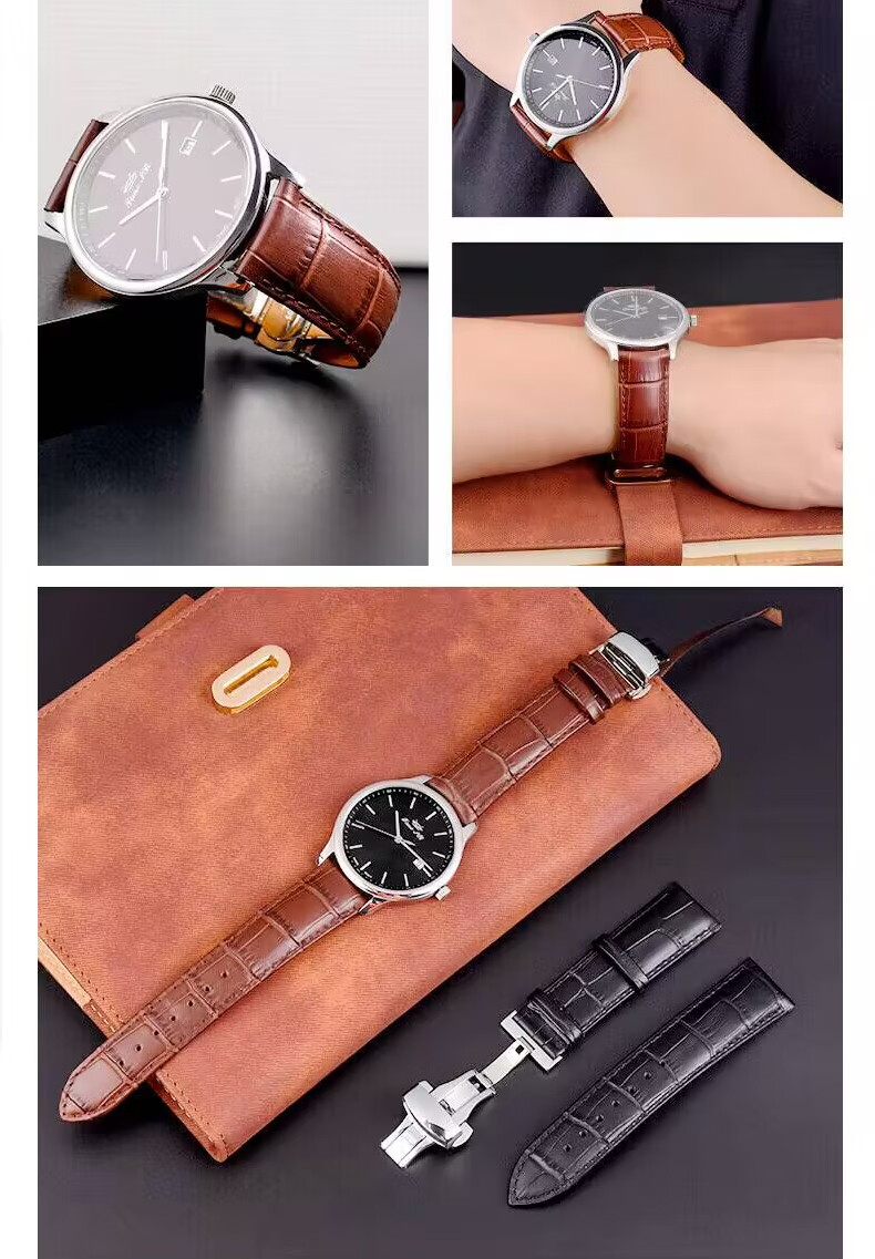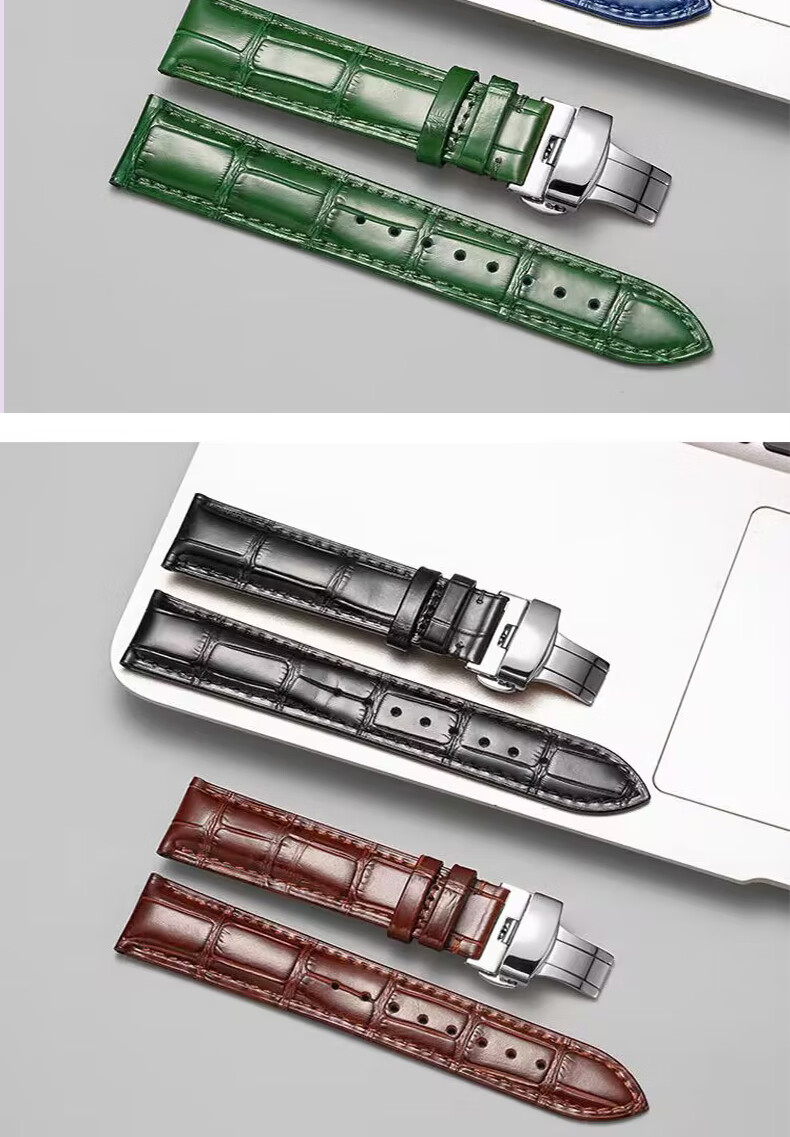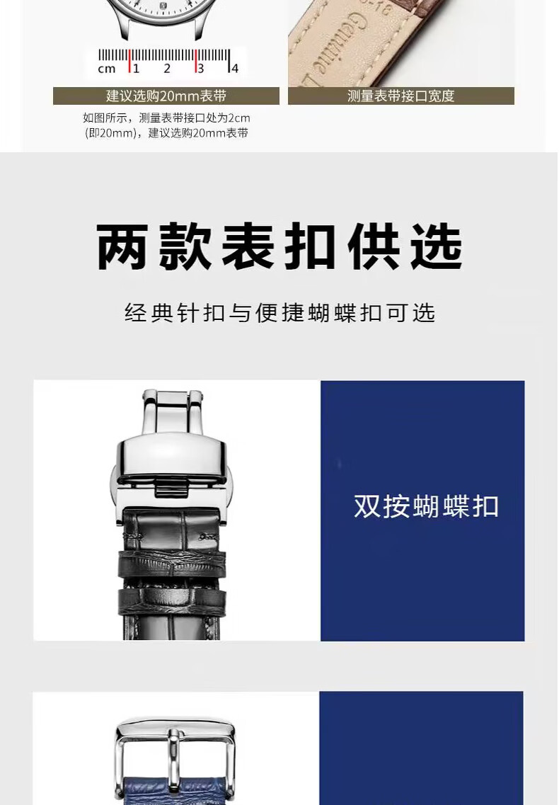 适配卡地亚坦克手表带真皮原装cartie伦敦钥匙solo男女蝴蝶扣表链 (头层牛皮)黑色-银针扣 接口宽度-14mm