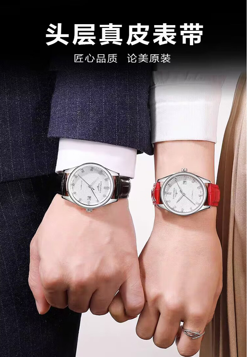 欧品客瑞士正品浪琴手表女全自动机械表双日历夜光防水专用女表 本色粉面【升级版】 33mm
