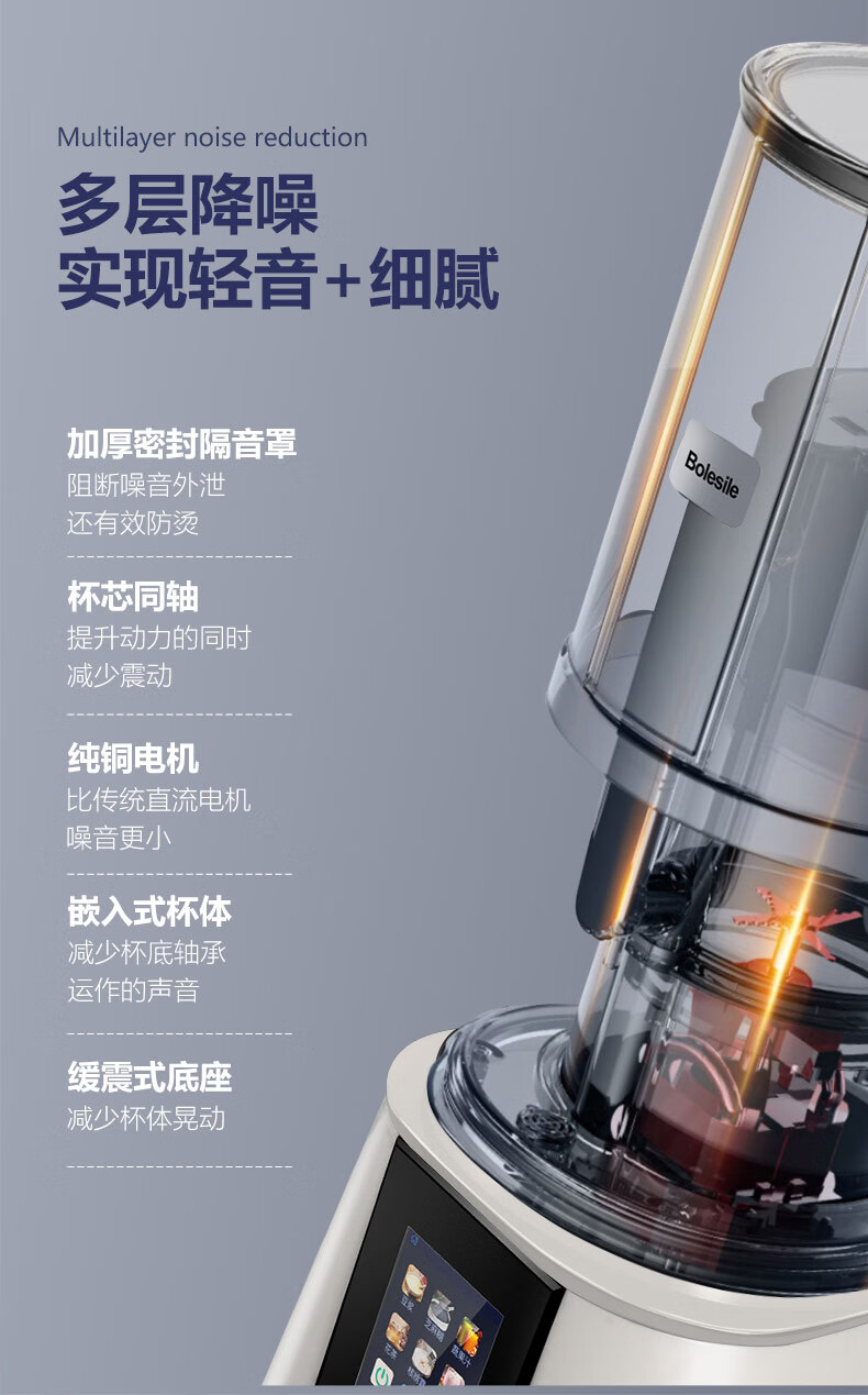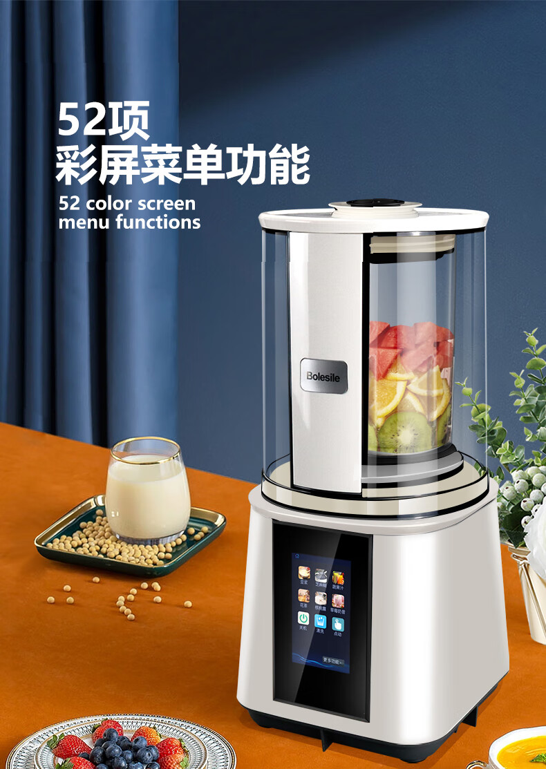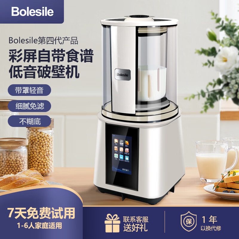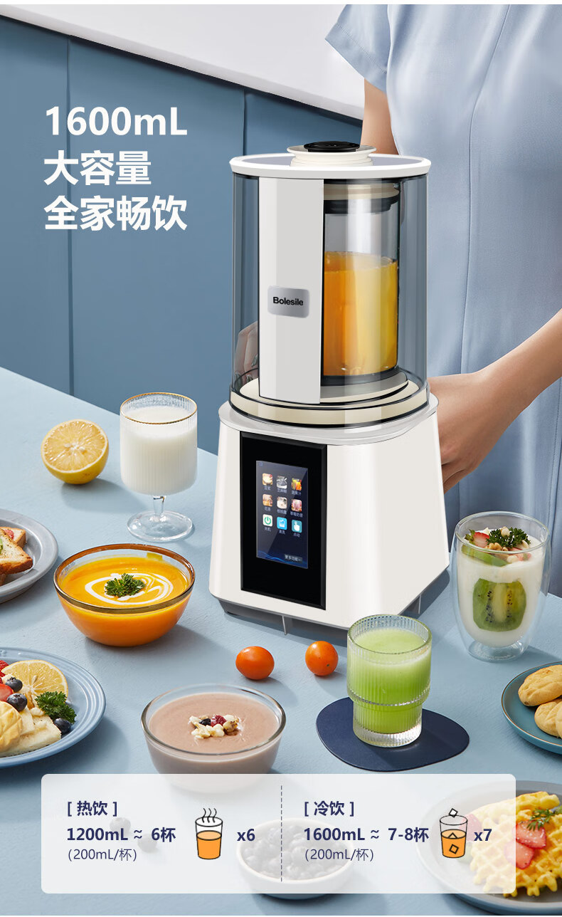博洛斯洛【轻音+彩屏+保温】第四代纯铜电机破壁机内置五十项功能自动保温免滤婴儿辅食机果汁机煮粥熬汤 白色