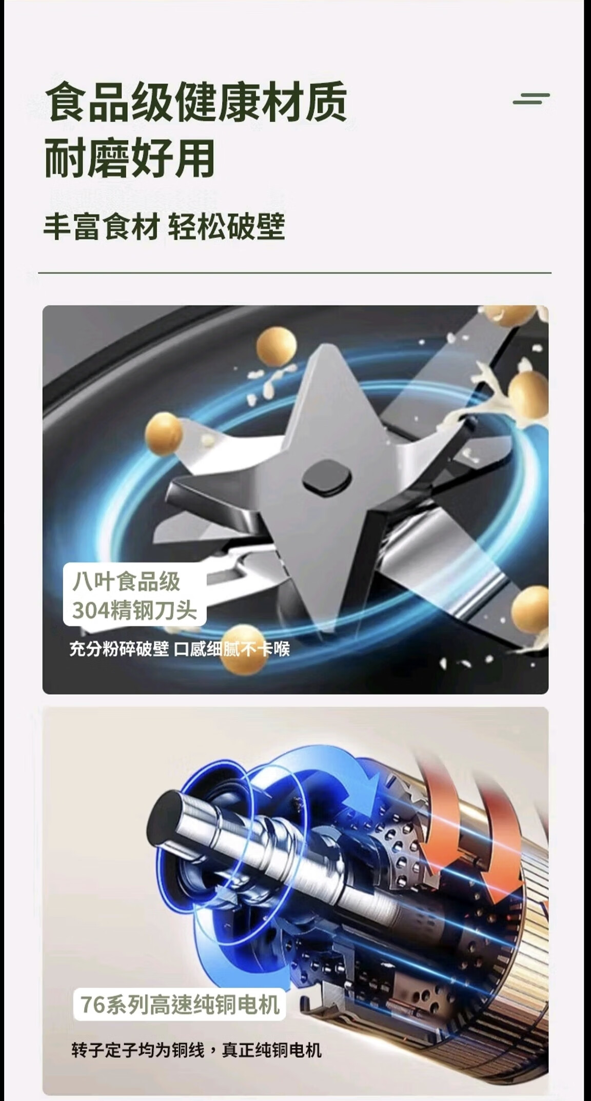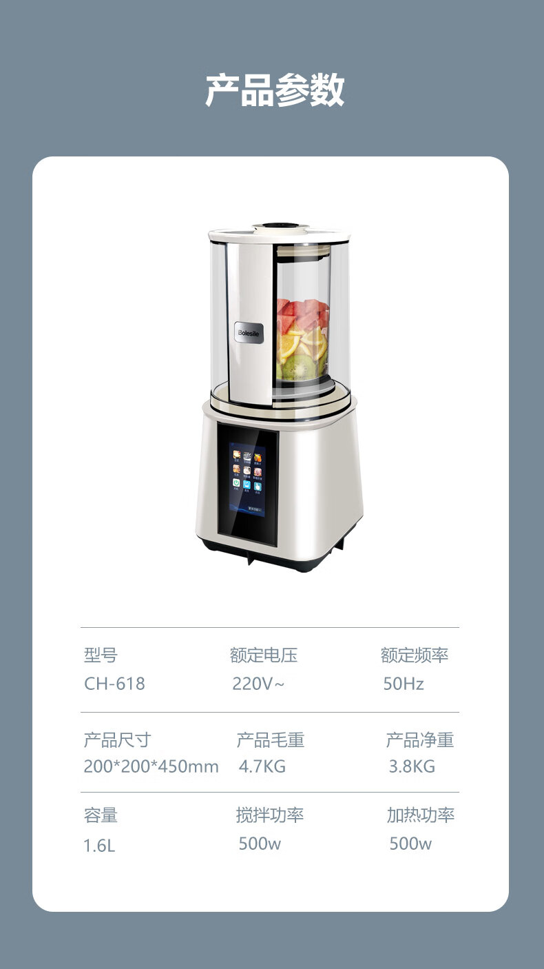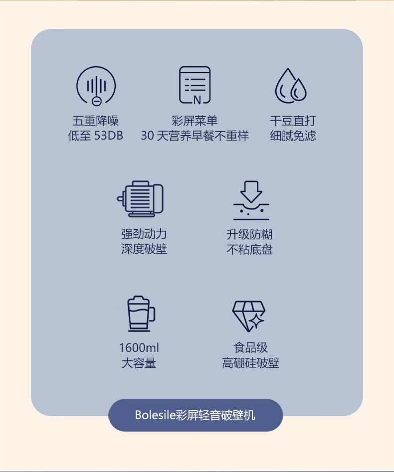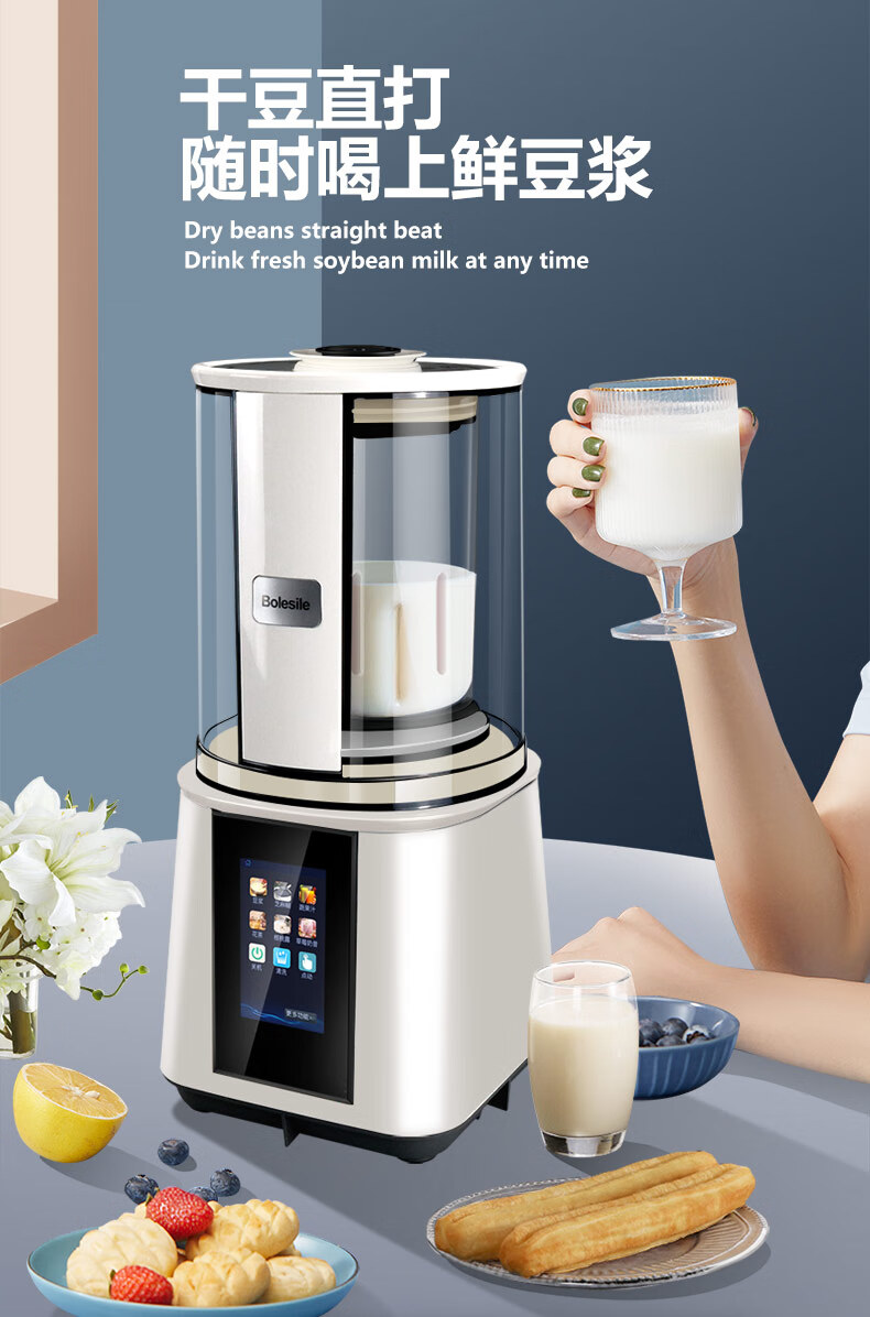博洛斯洛【轻音+彩屏+保温】第四代纯铜电机破壁机内置五十项功能自动保温免滤婴儿辅食机果汁机煮粥熬汤 白色