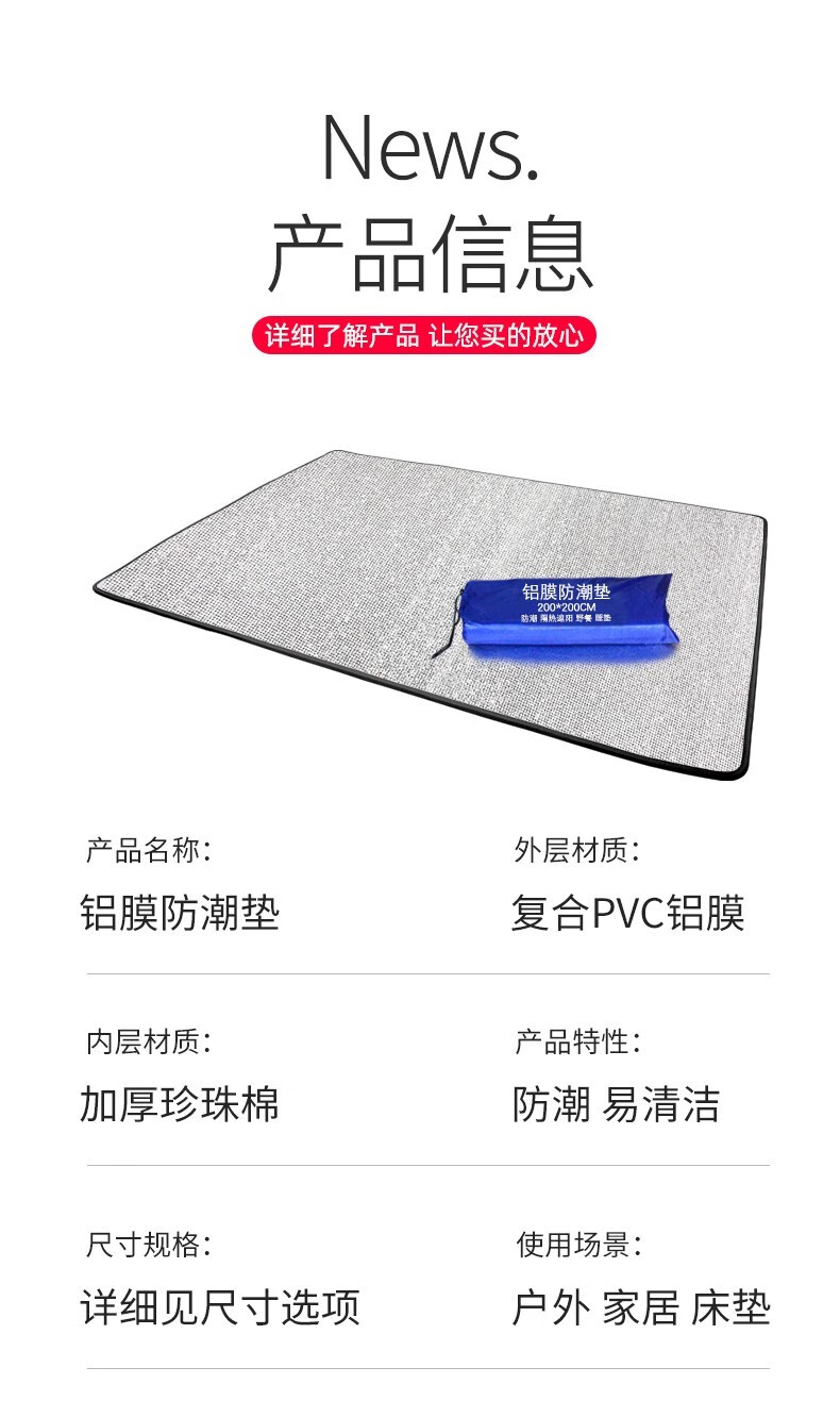 凡卡印象防潮垫单人宿舍午睡垫学生午休加厚地垫铝膜垫露营睡垫户外野餐垫 厚度3.5MM宽1.2*2米
