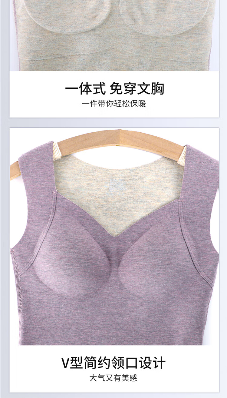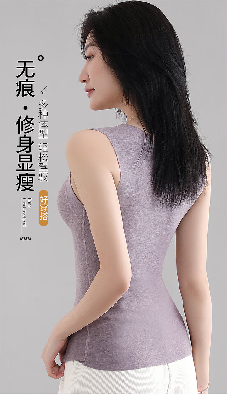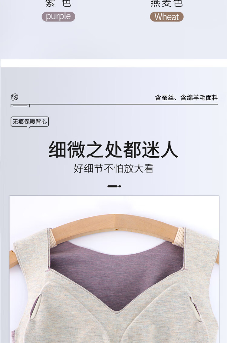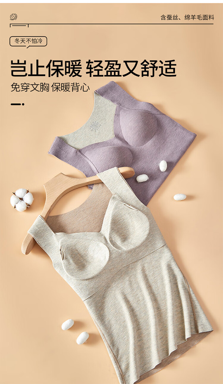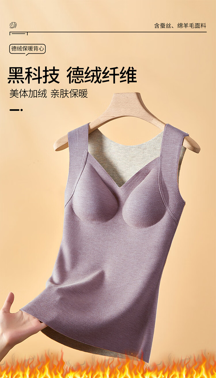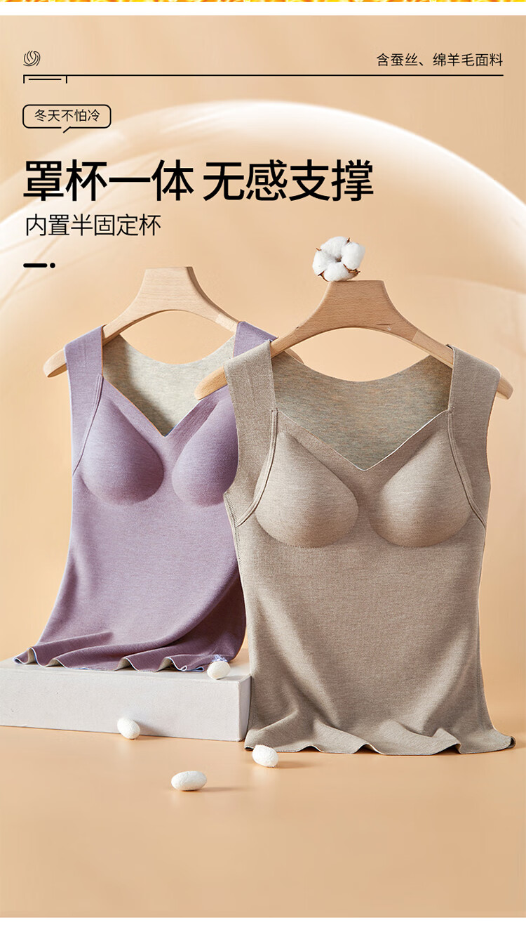 浪漫春天【含绵羊毛桑蚕丝】秋冬女士保暖背心免穿文胸无痕修身内搭打底衫 朦胧紫 XL