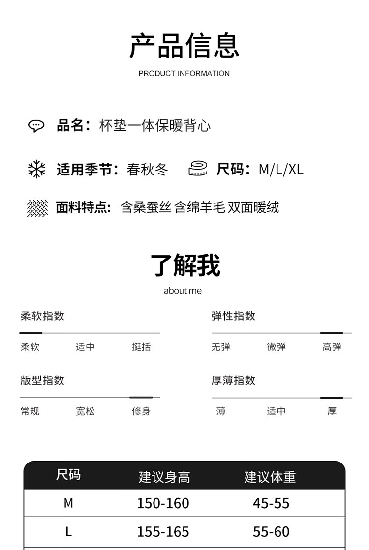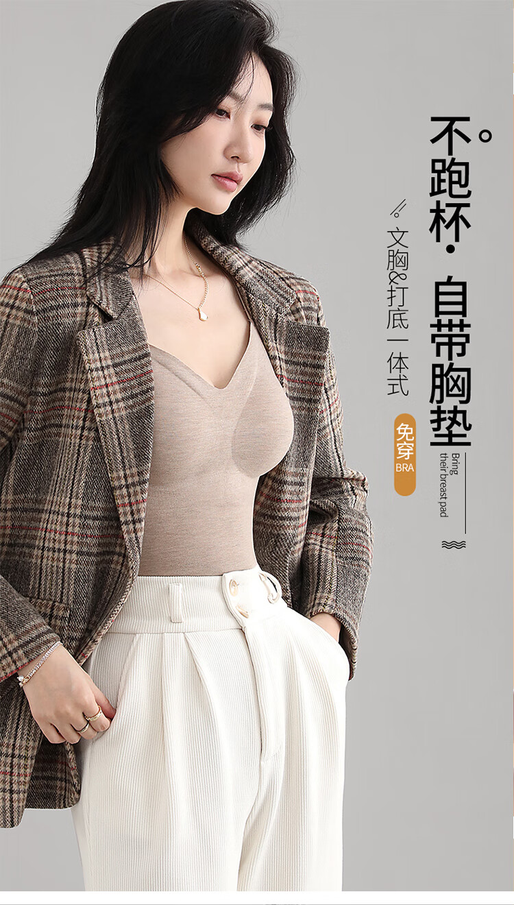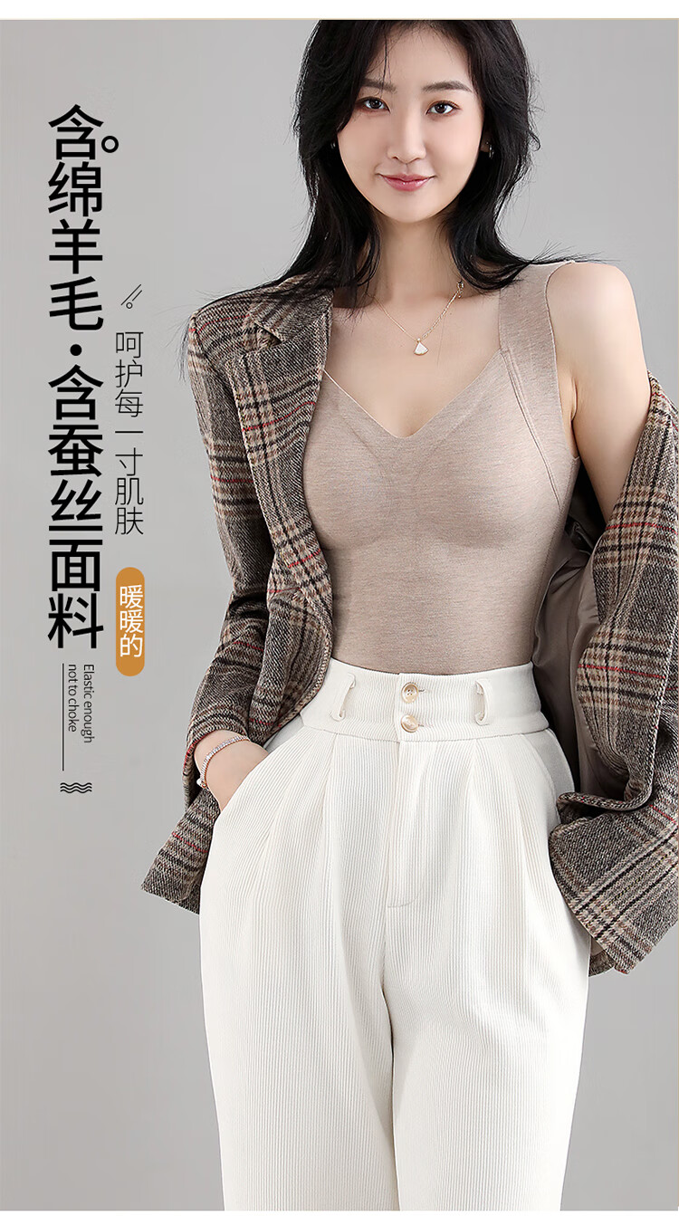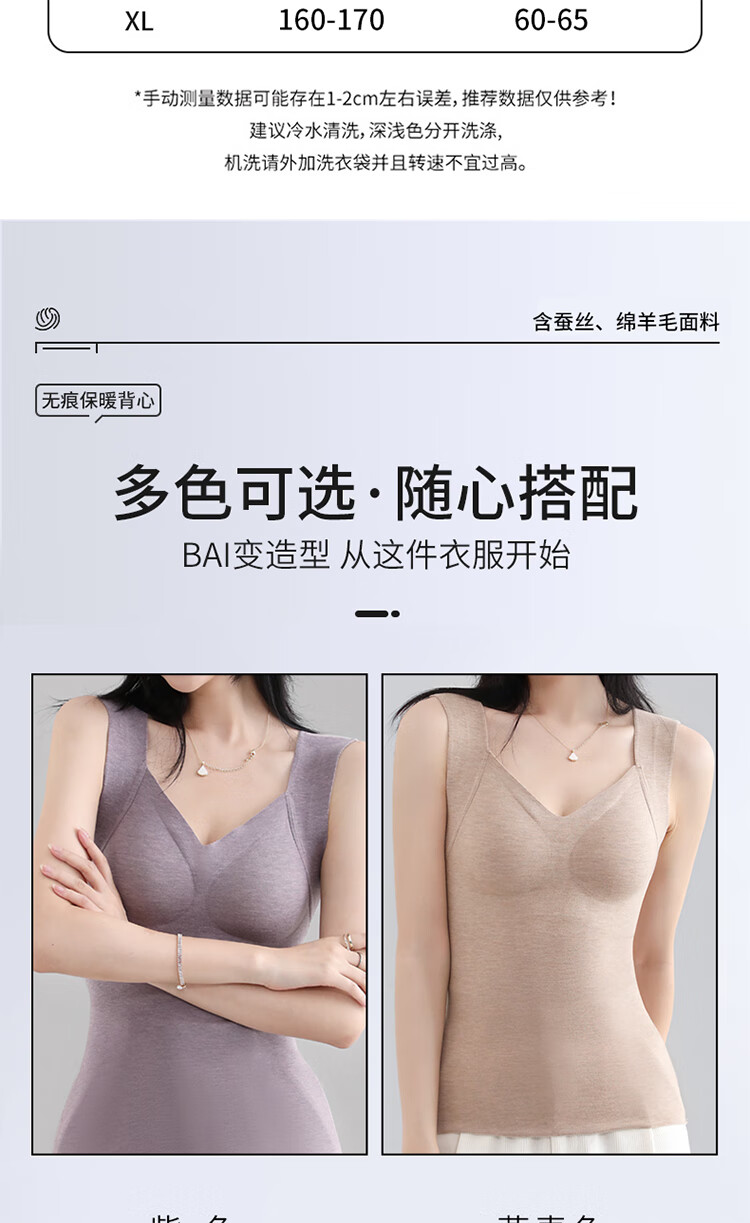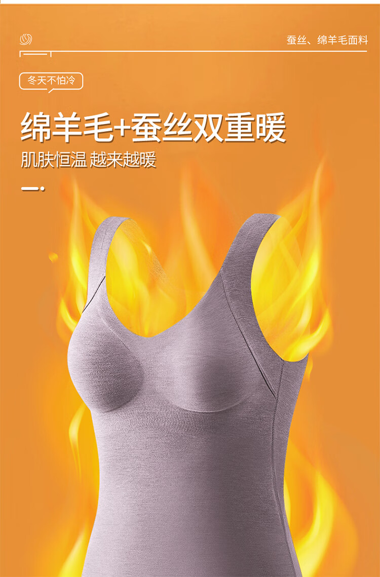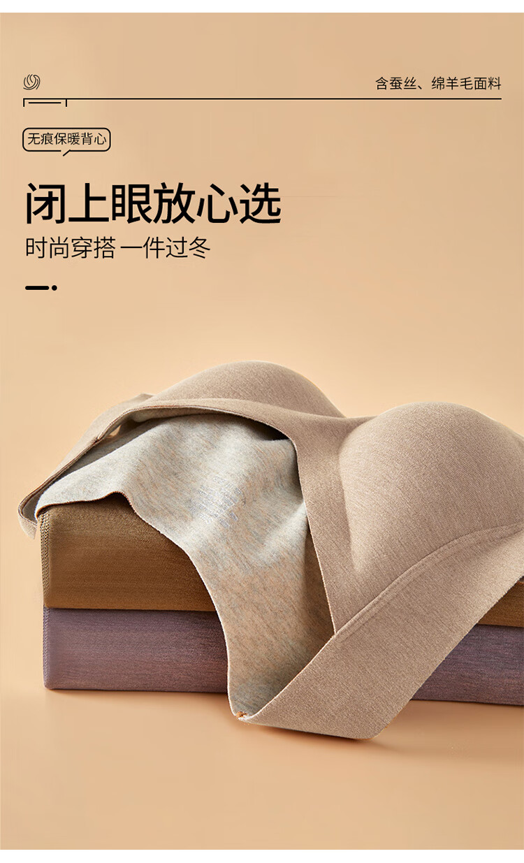 浪漫春天【含绵羊毛桑蚕丝】秋冬女士保暖背心免穿文胸无痕修身内搭打底衫 朦胧紫 XL