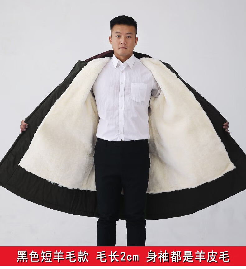 宰搂假一赔十羊皮军棉大衣男冬加厚保暖皮毛一体长款东北羊毛棉 黑色羊毛裤羊剪绒 大号180斤以上特优皮毛+手套
