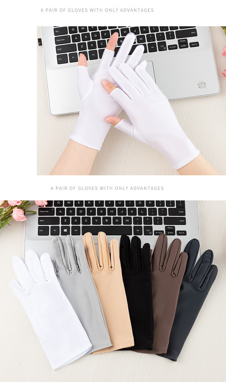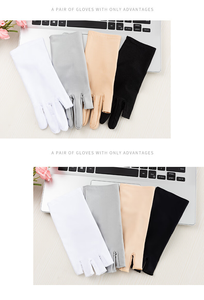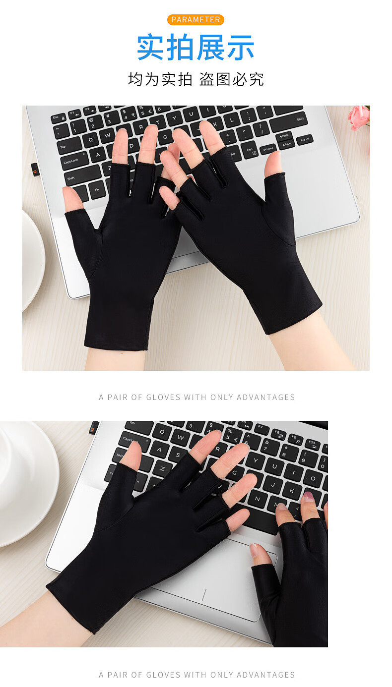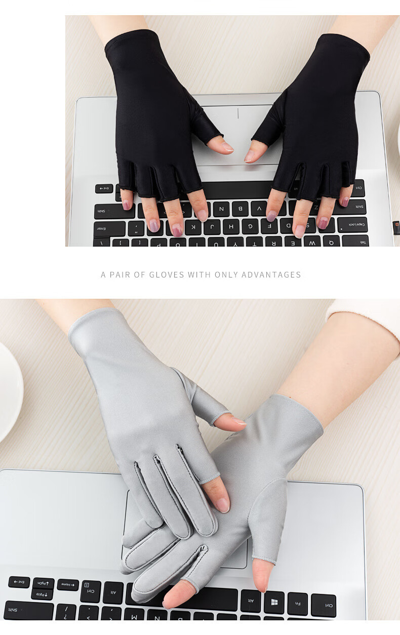 【精选】女半指骑行开车防晒手套春夏季触屏高弹防滑手套薄款透气 半指手套-黑色