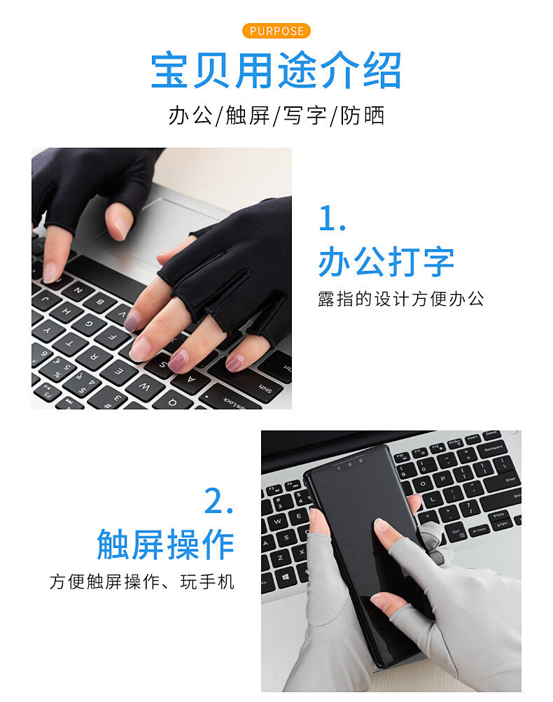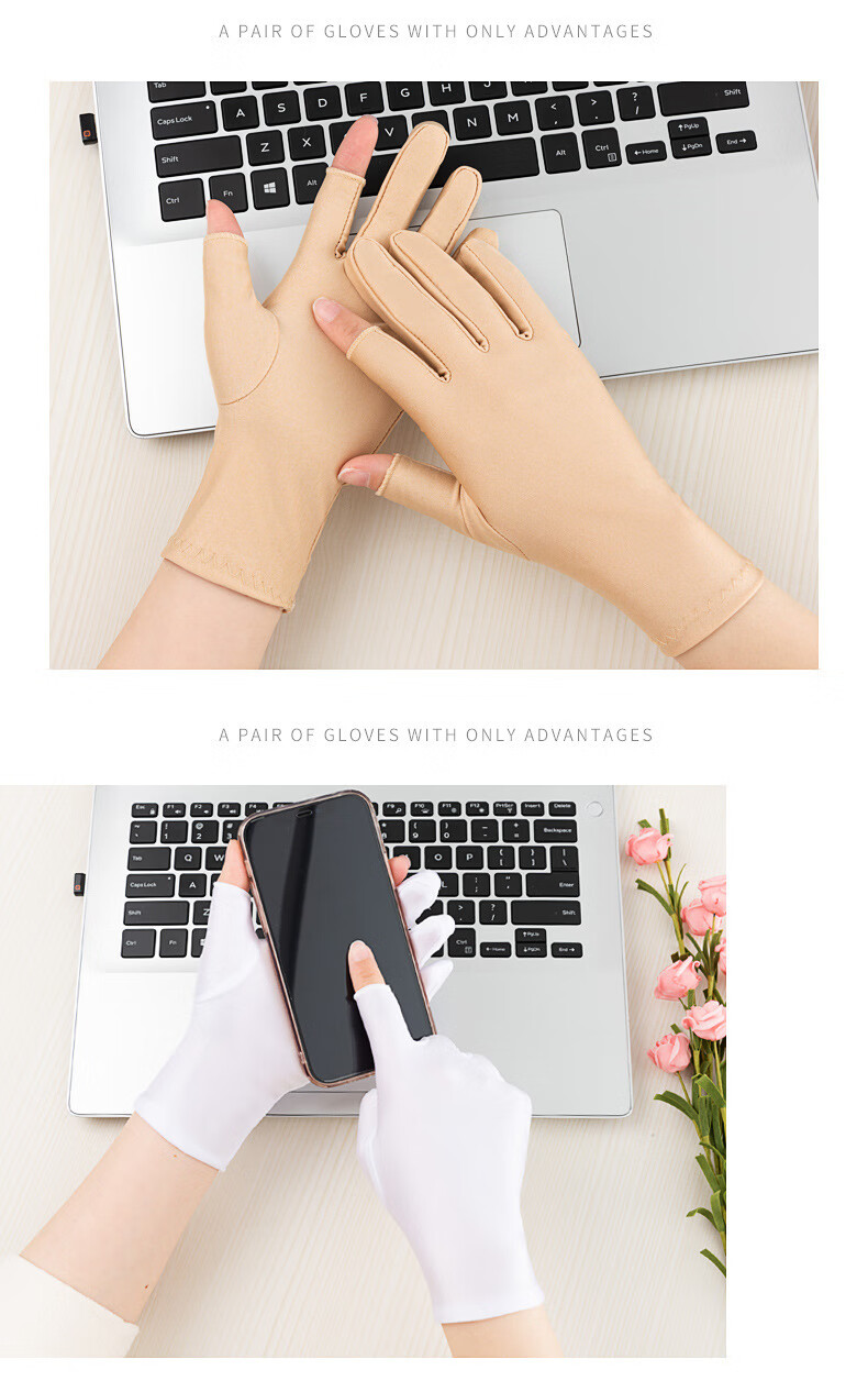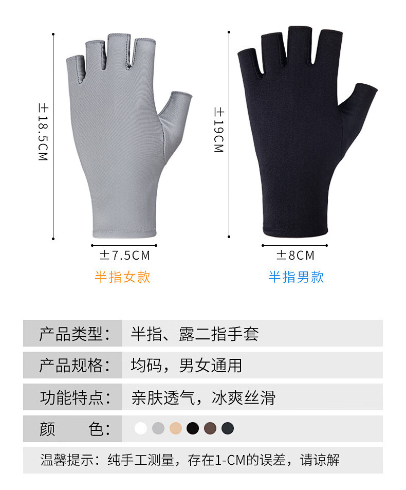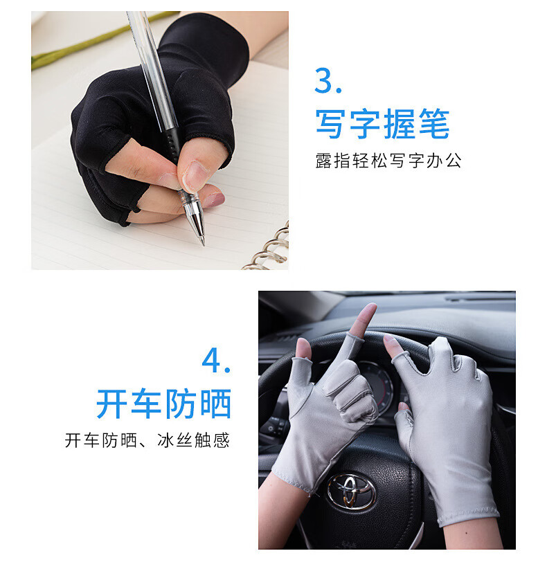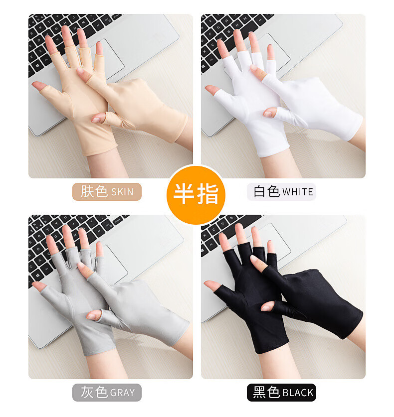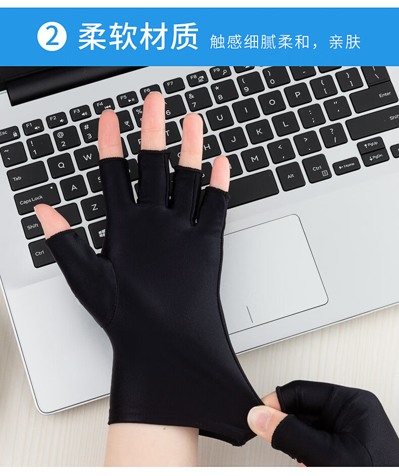 【精选】女半指骑行开车防晒手套春夏季触屏高弹防滑手套薄款透气 半指手套-黑色