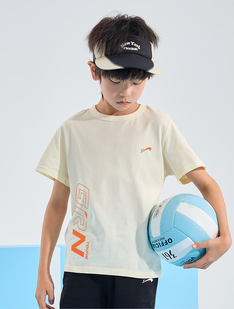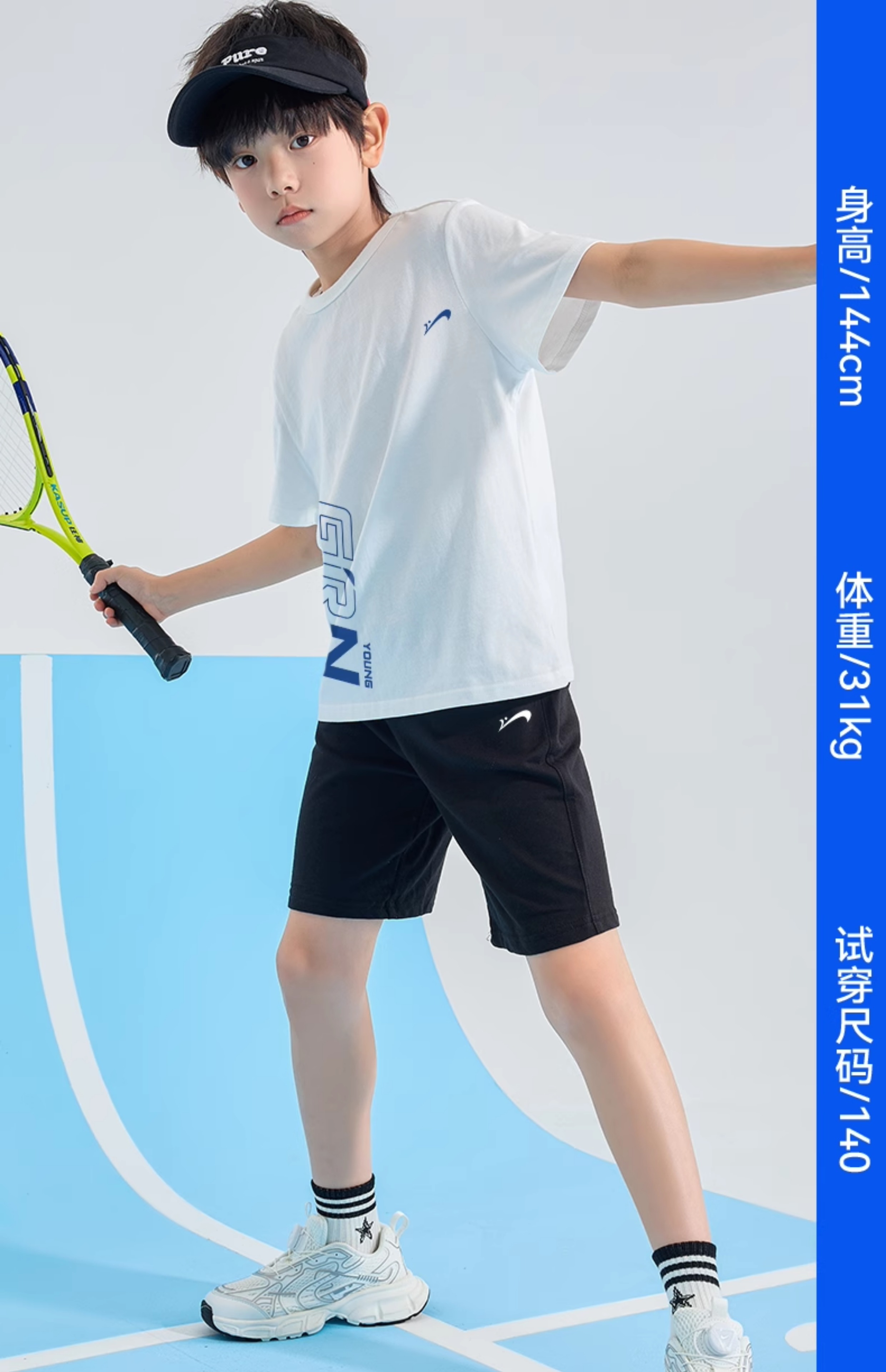 贵人鸟男童夏套装2026新款儿童夏季纯棉运动短袖中大童短裤宽松透气夏装 【纯棉套装】杏+黑/G贵人鸟白K 110