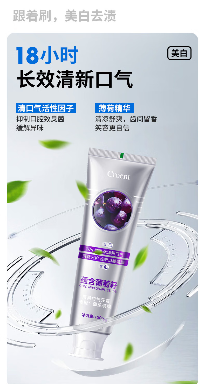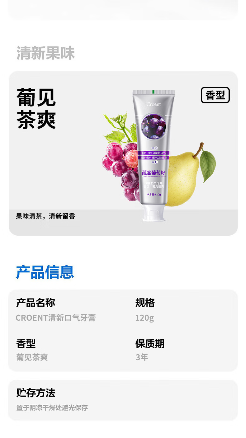 Croent葡萄籽牙膏清新口气减轻牙渍牙垢牙黄口腔牙龈护理牙齿洁白 葡萄籽牙膏3支