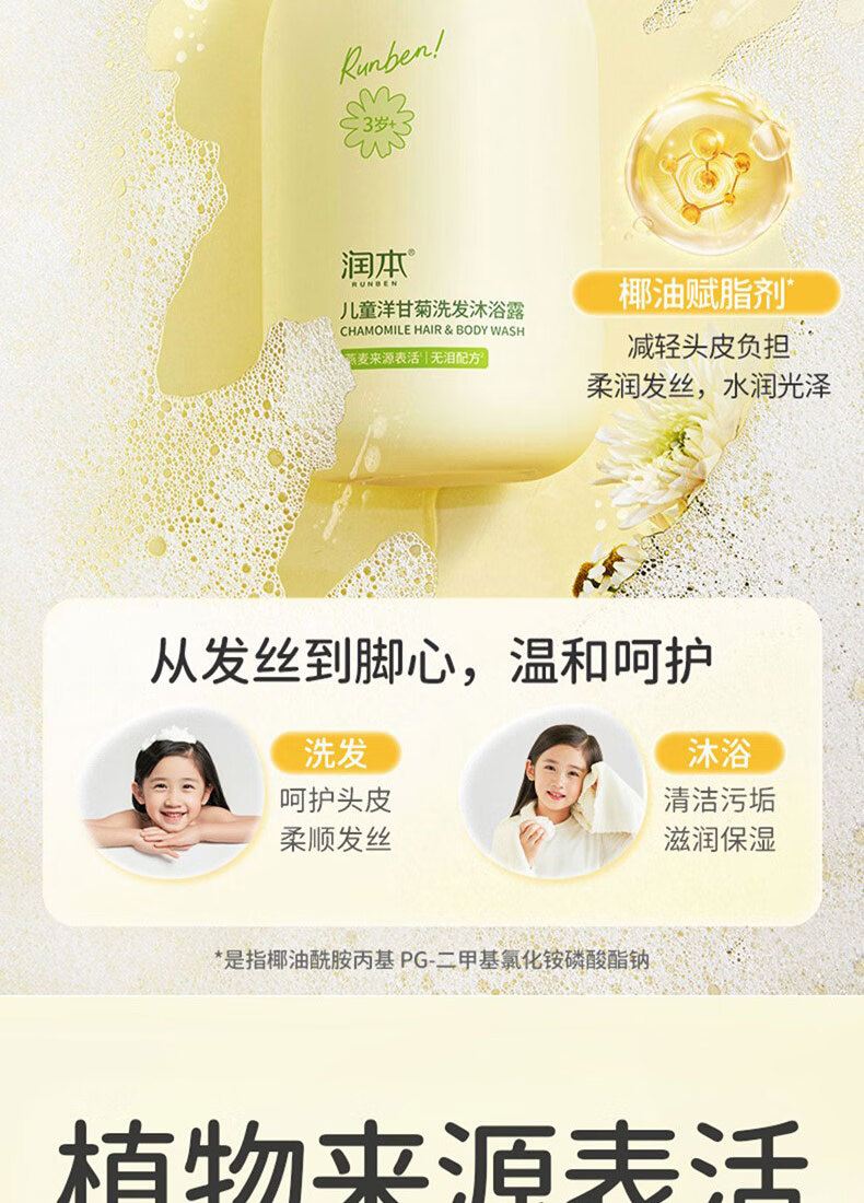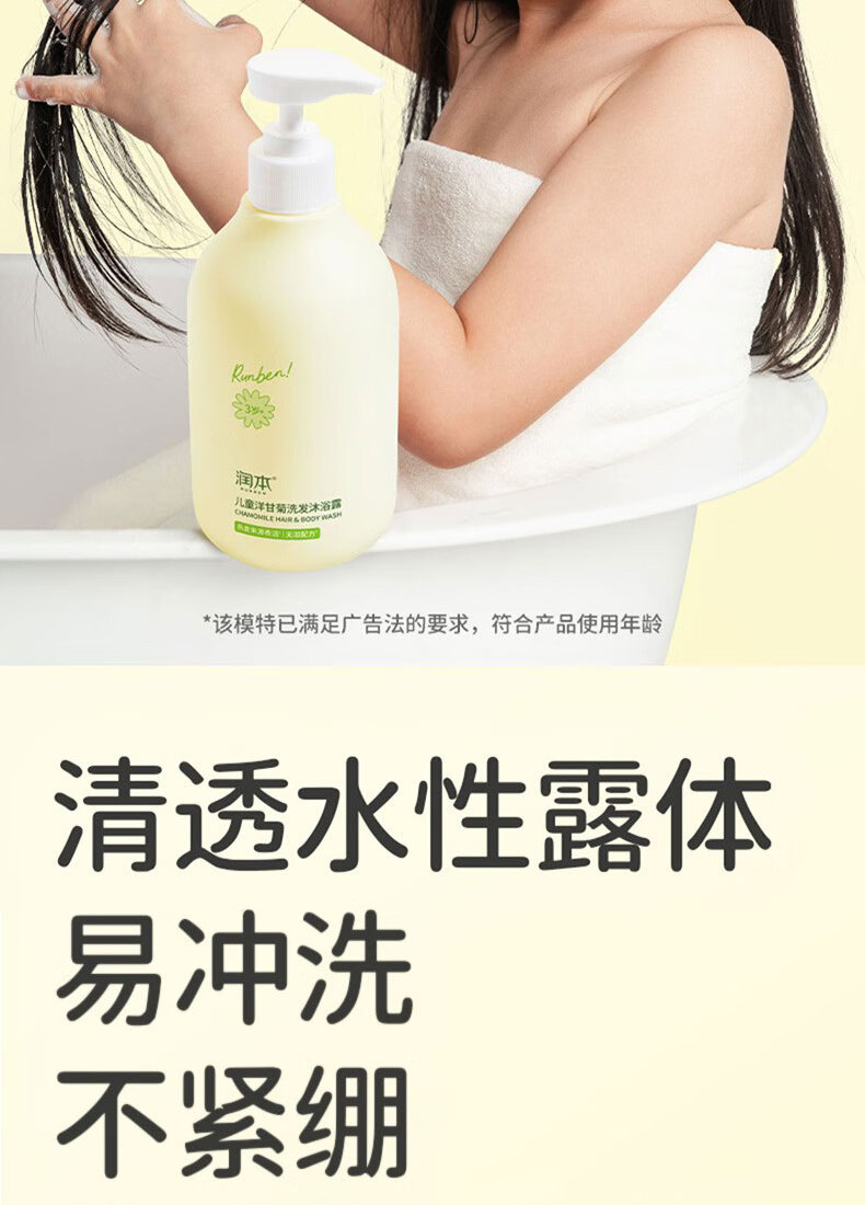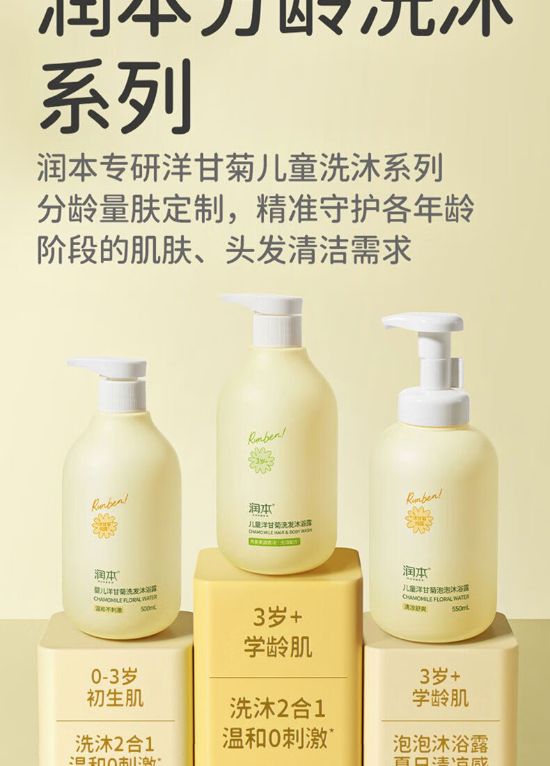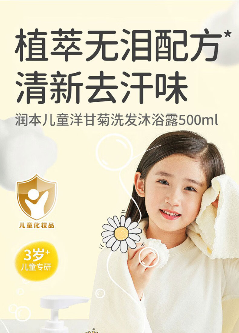 润本婴儿儿童洗发水沐浴露500ml 宝宝洗发泡泡沐浴乳二合一 婴儿洋甘菊洗发沐浴露*1瓶