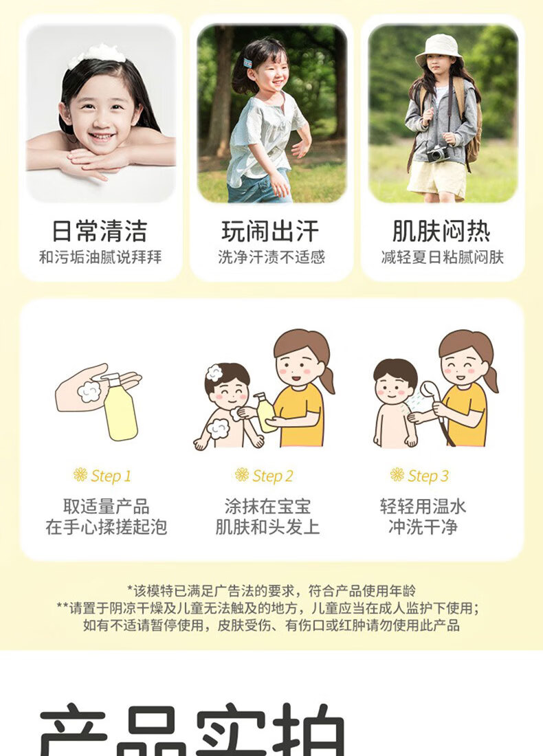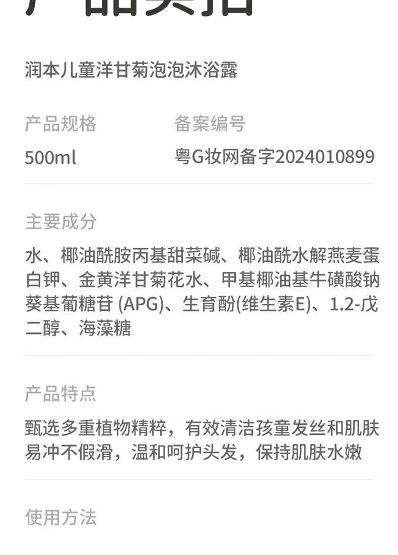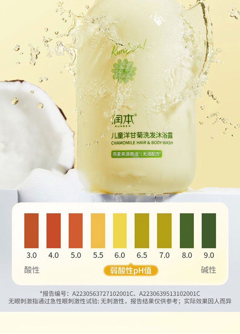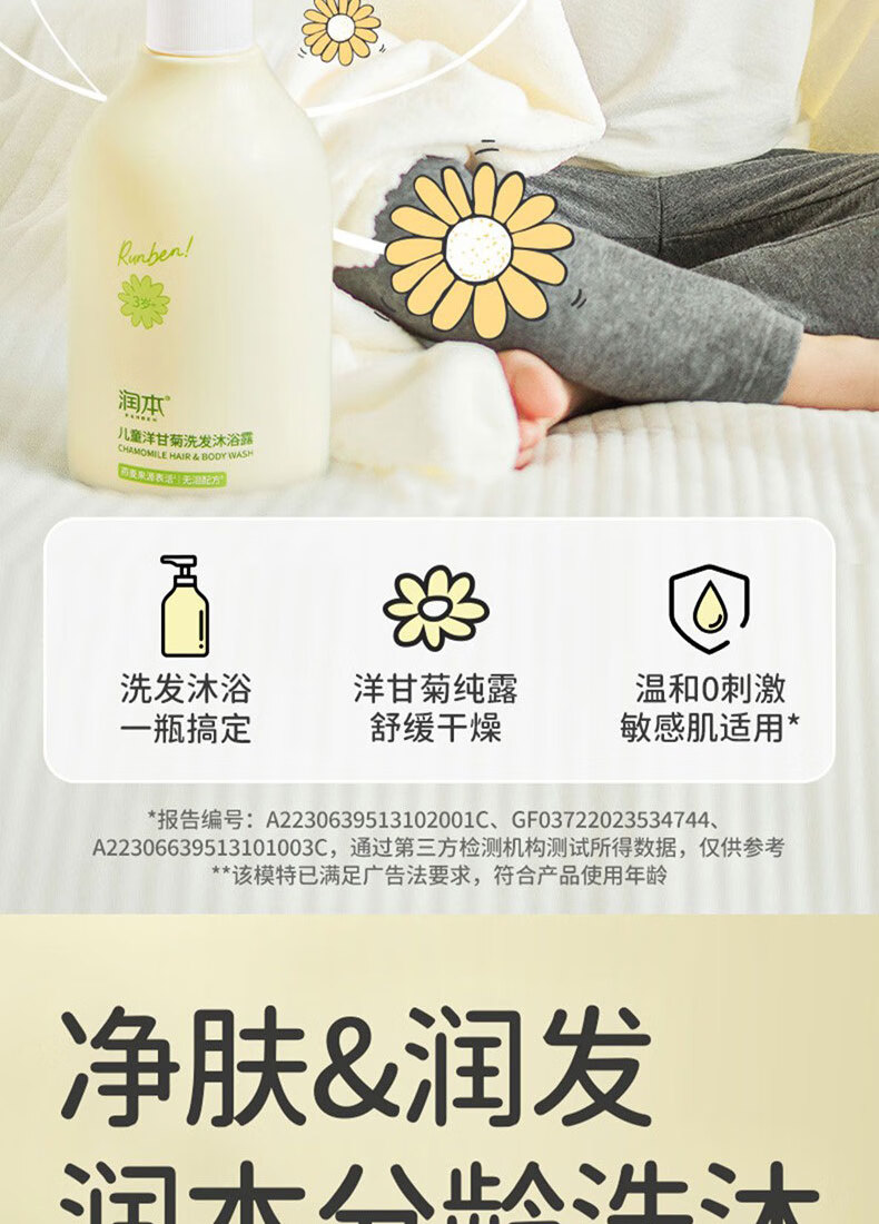 润本婴儿儿童洗发水沐浴露500ml 宝宝洗发泡泡沐浴乳二合一 婴儿洋甘菊洗发沐浴露*1瓶