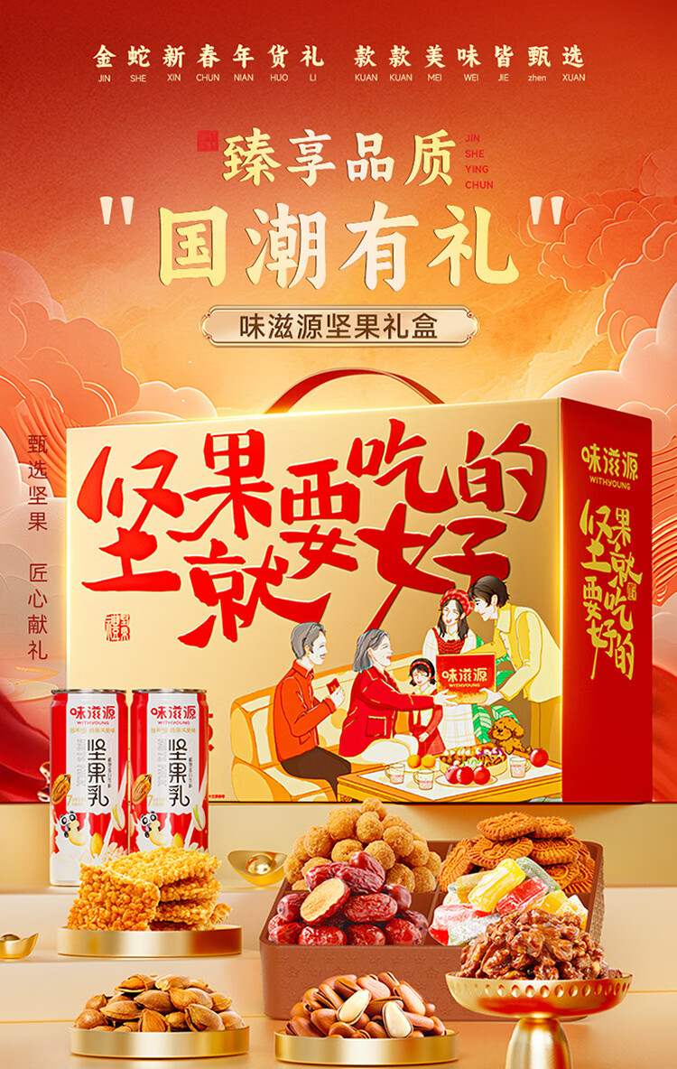 味滋源节日礼盒中秋月饼礼盒年货大礼包 团购送礼年货节庆中秋礼包福利 坚果就要吃好的坚果礼盒-771g 1件