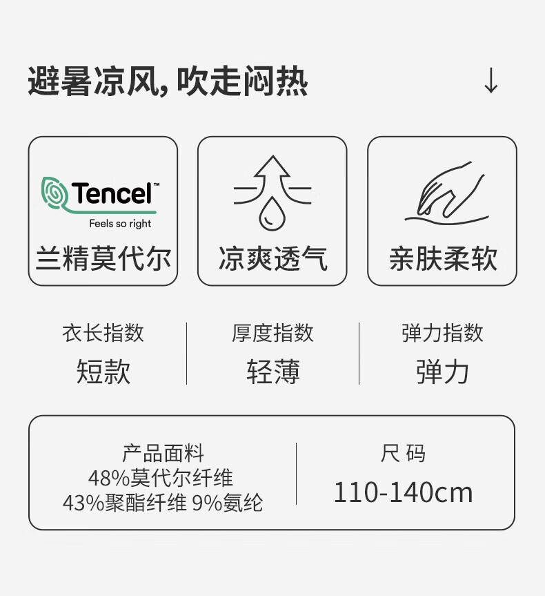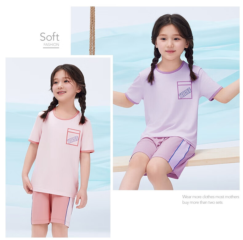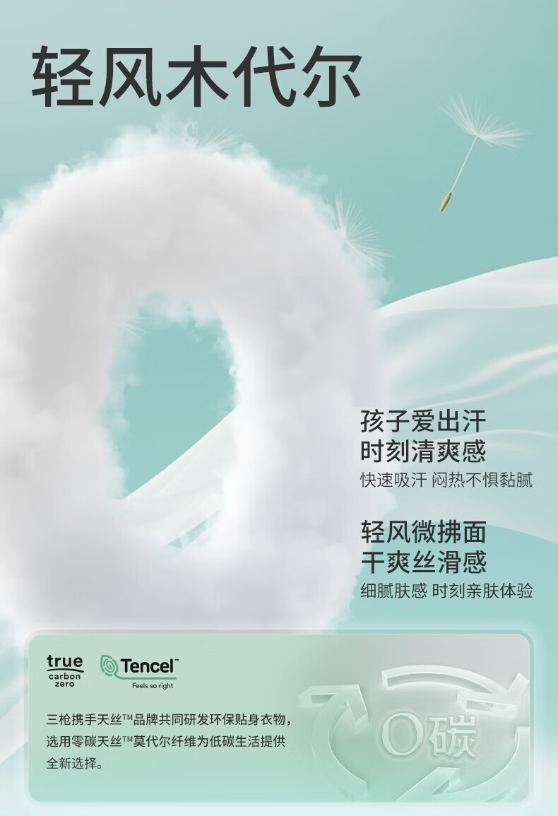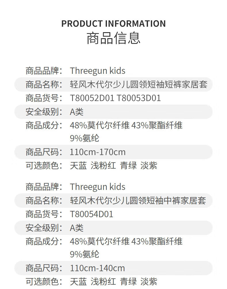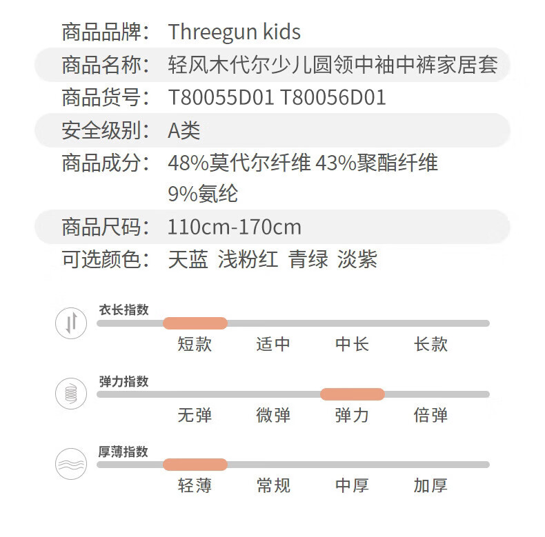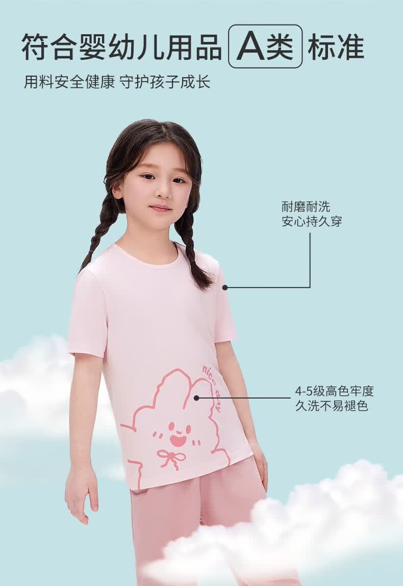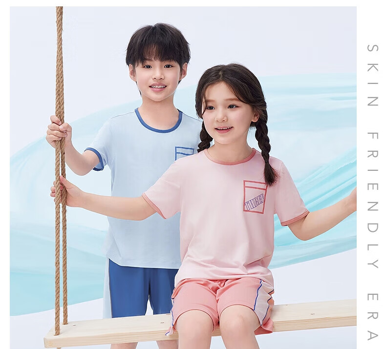 三枪童装新款凉感莫代尔防螨抑菌男童女童吸湿排汗中袖中裤圆领家居服 中袖中裤青绿 150