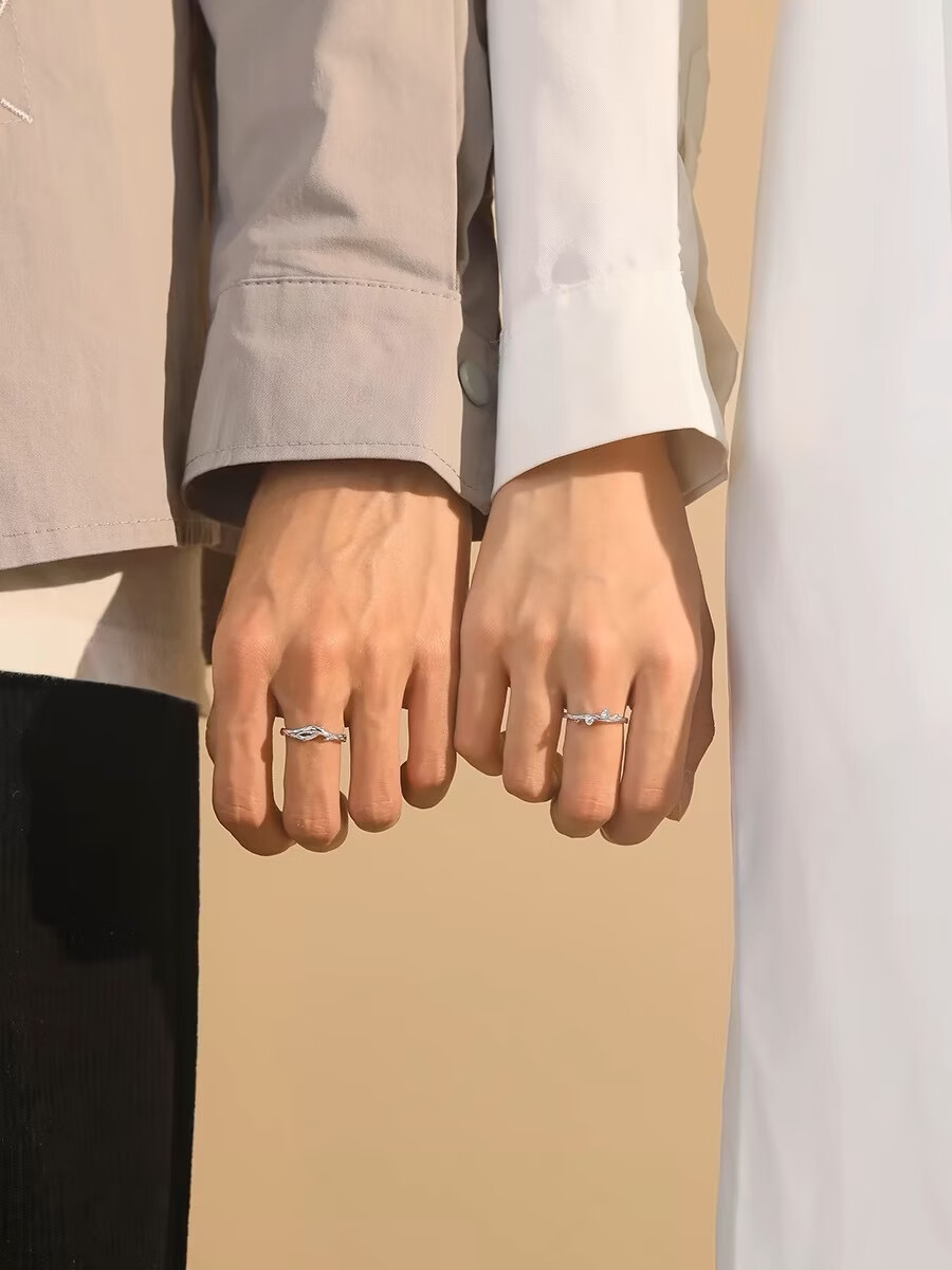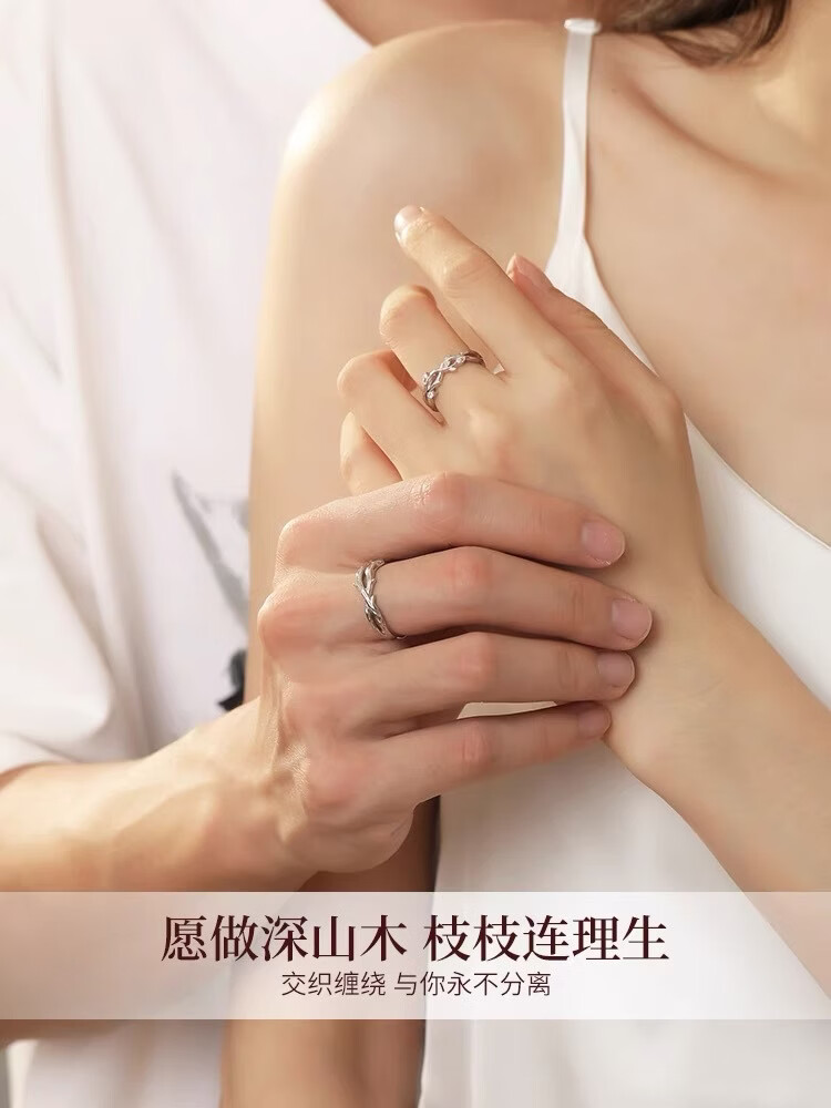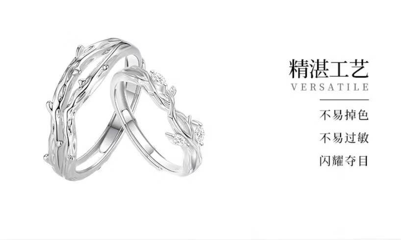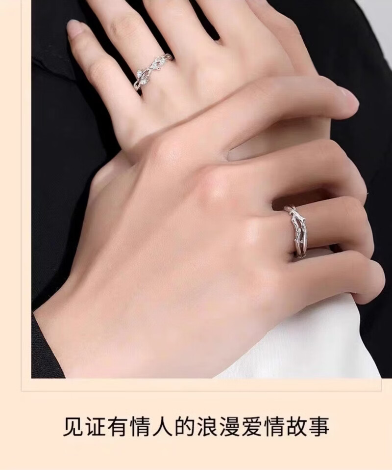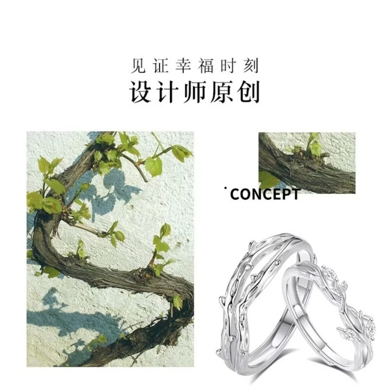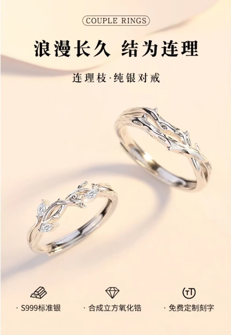 S999纯银连理枝情侣对戒轻奢感戒指情人节生日送女友男友 S999足银 -男 开口可调节