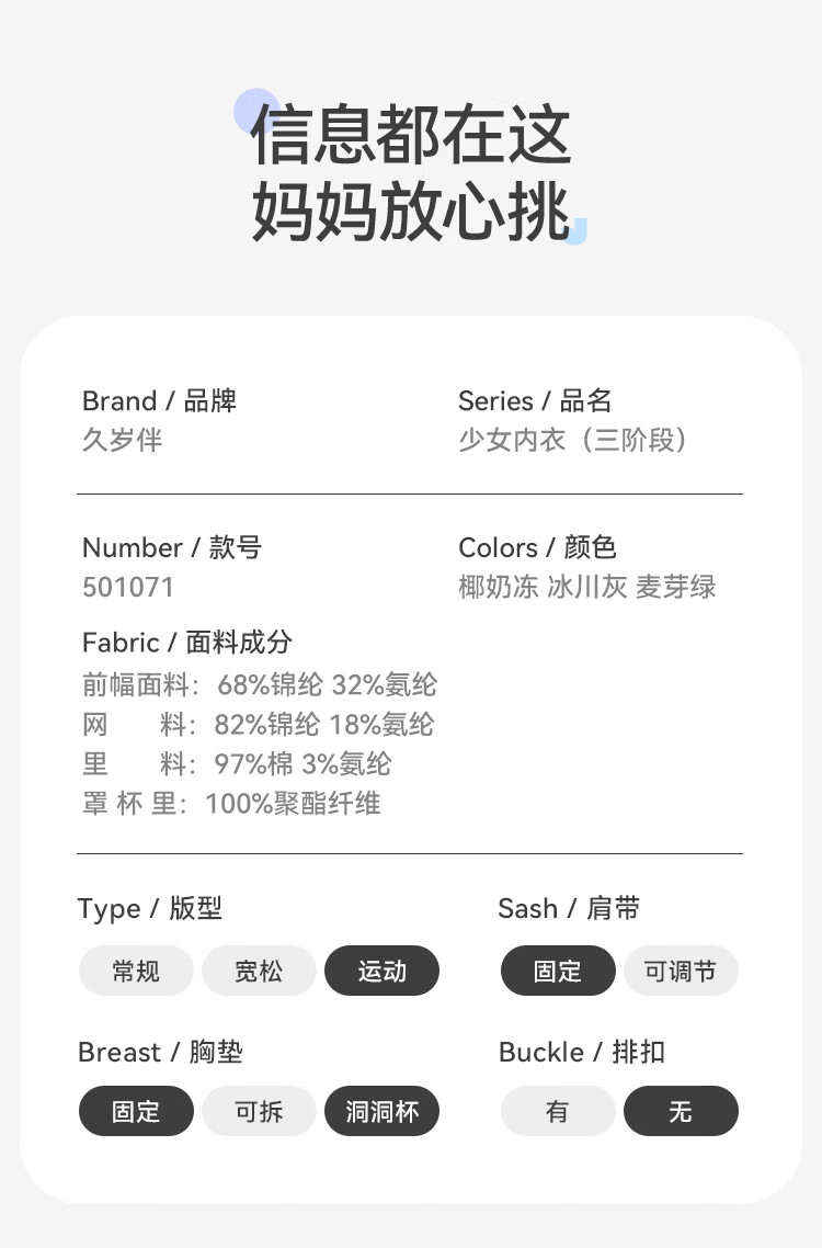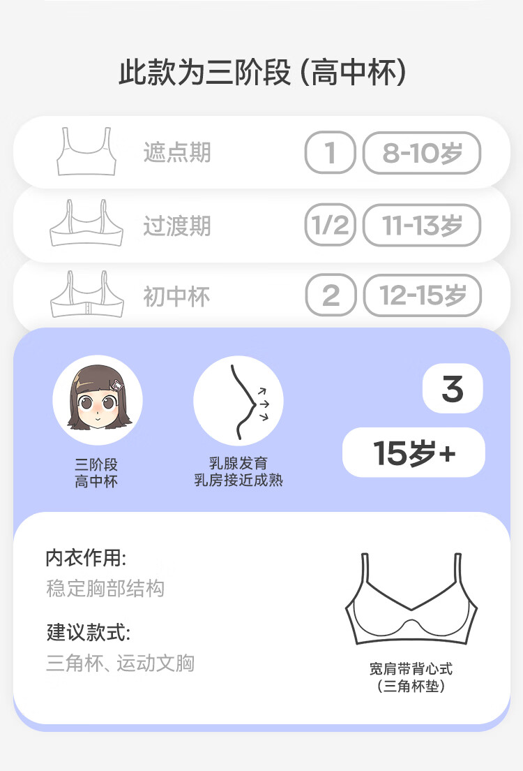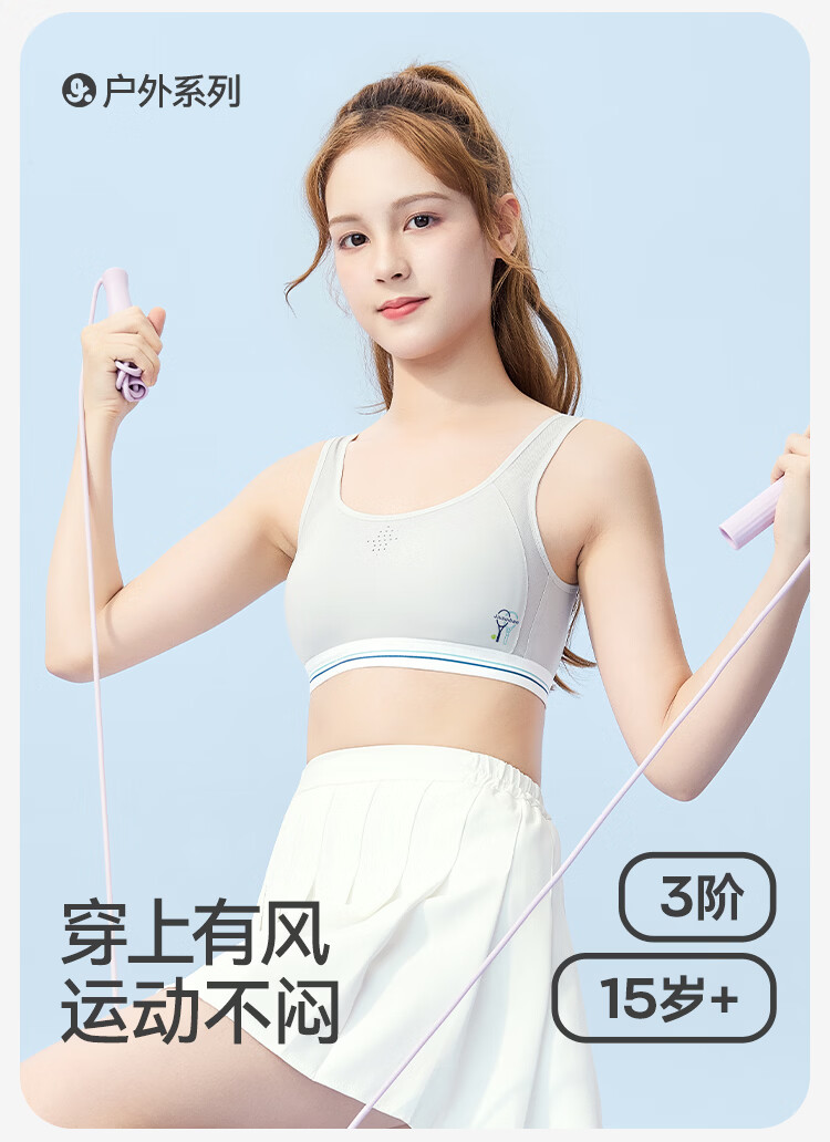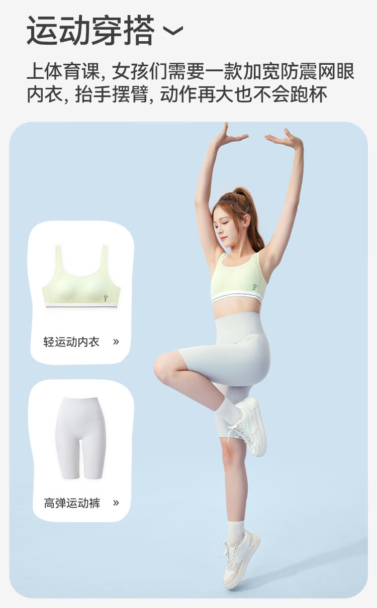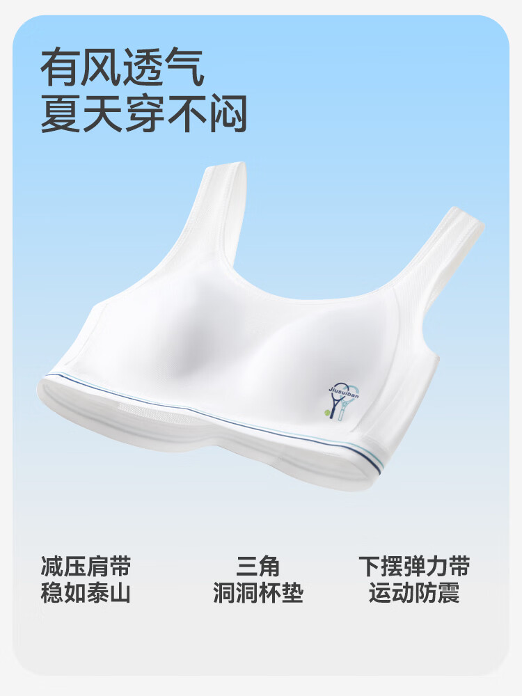 久岁伴少女【运动防震】发育文胸三阶段高中生A类弹力网纱美背内衣背心 麦芽绿(3 阶段 15+高中杯) 75B 建议70-85斤