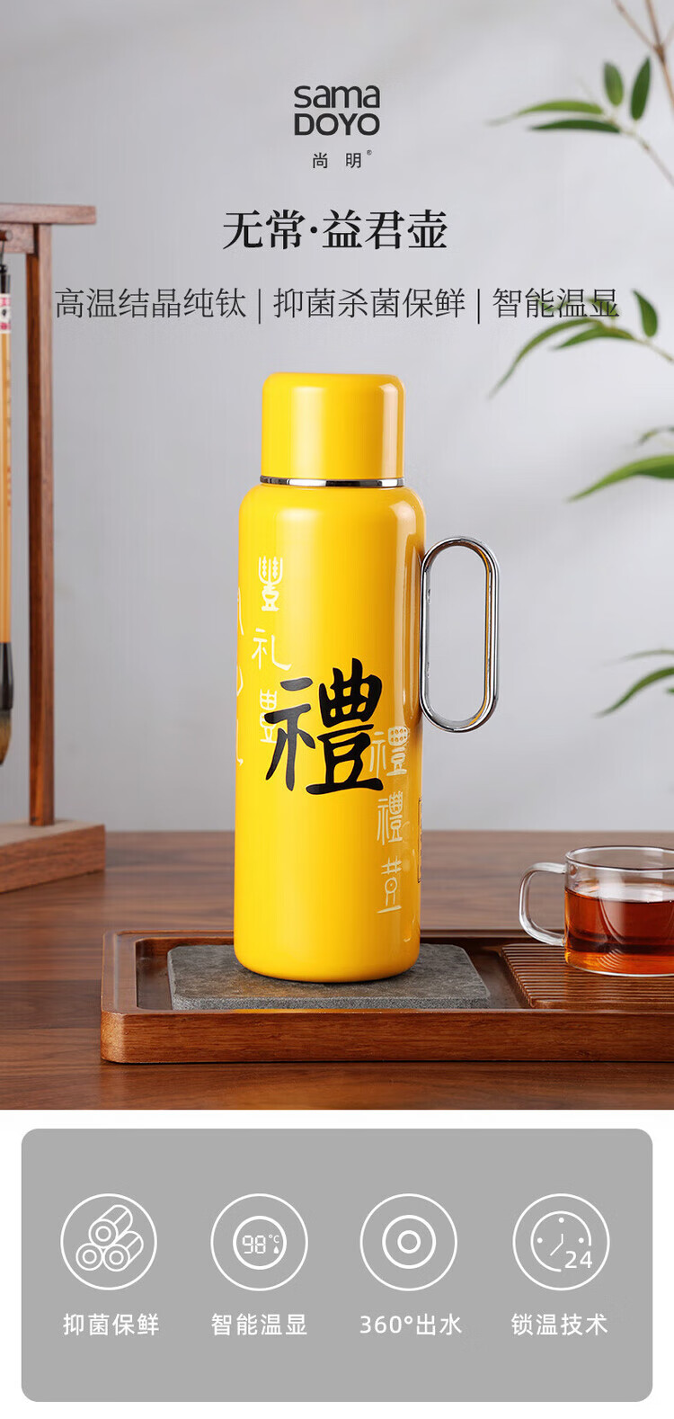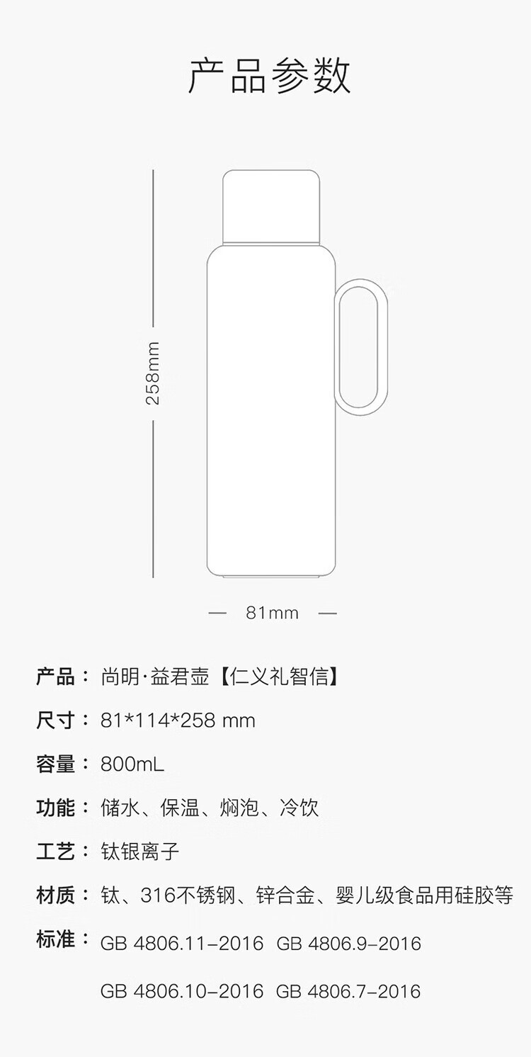 尚明(SAMADOYO)益君壶家用保温壶316钛银离子抑菌闷茶壶抗菌保鲜仁义礼智信暖壶 霞光紫【信】800ml