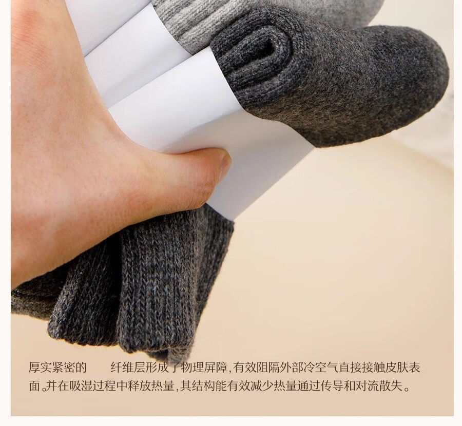 雅鹿特厚袜子男生冬季中筒袜毛圈保暖加绒加厚毛绒袜秋冬抗寒袜 保暖防臭【五双经典系】 均码 巨厚毛圈袜-轻松抗寒-30度