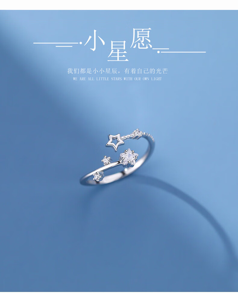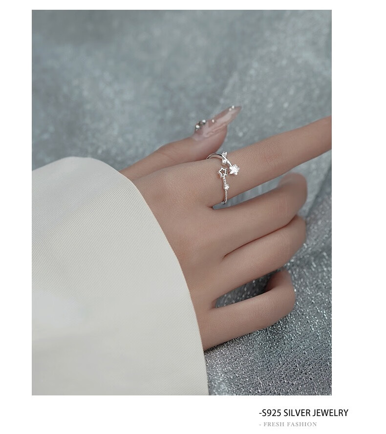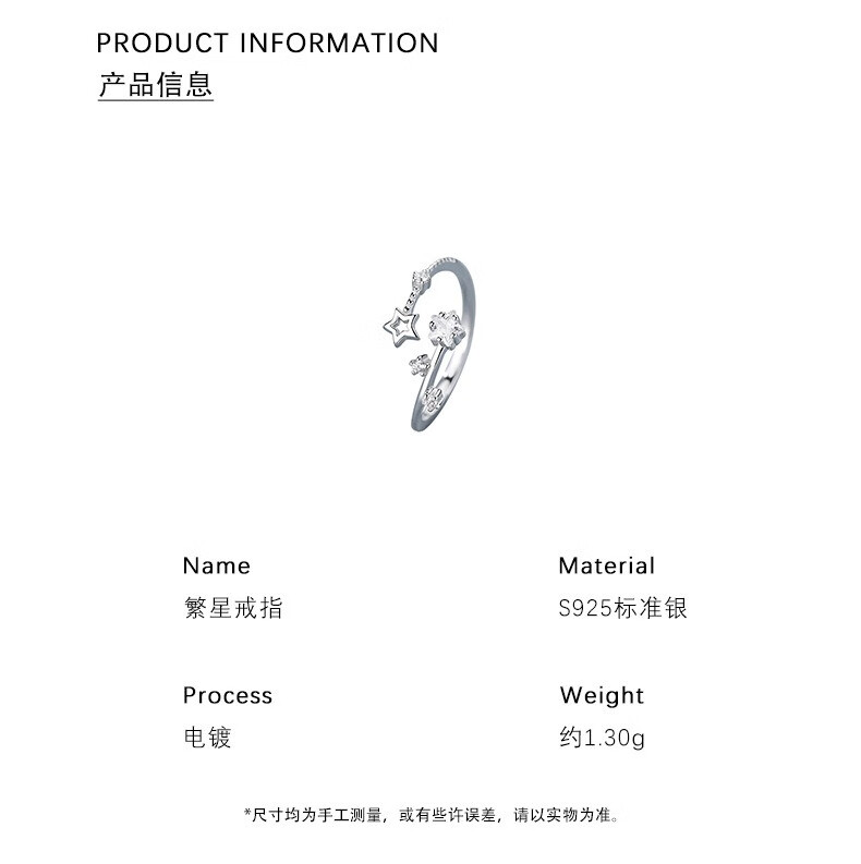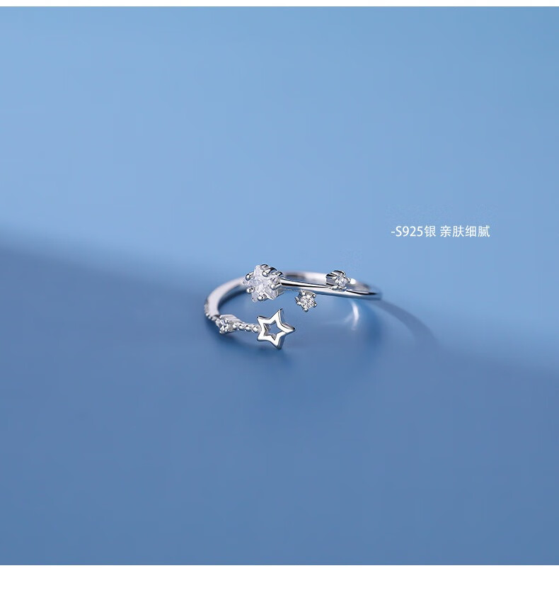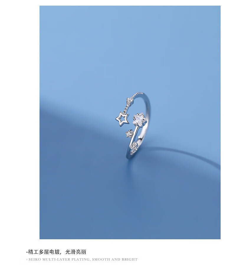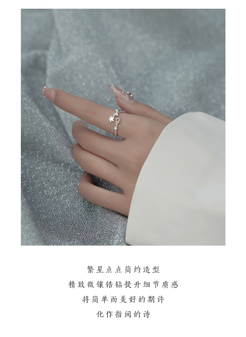 苏十六925银繁星戒指女时尚个性小众食指环单身尾戒女生生日礼物送女友 繁星戒指【活口】