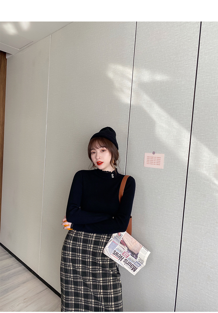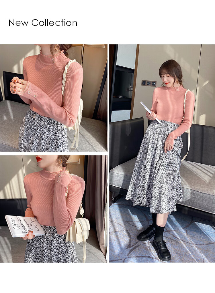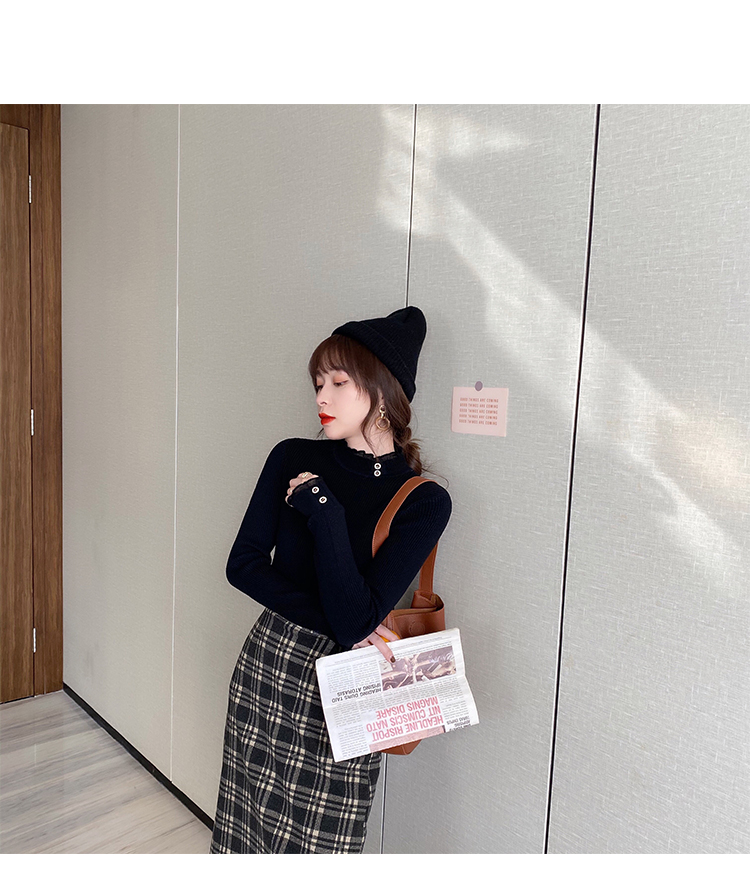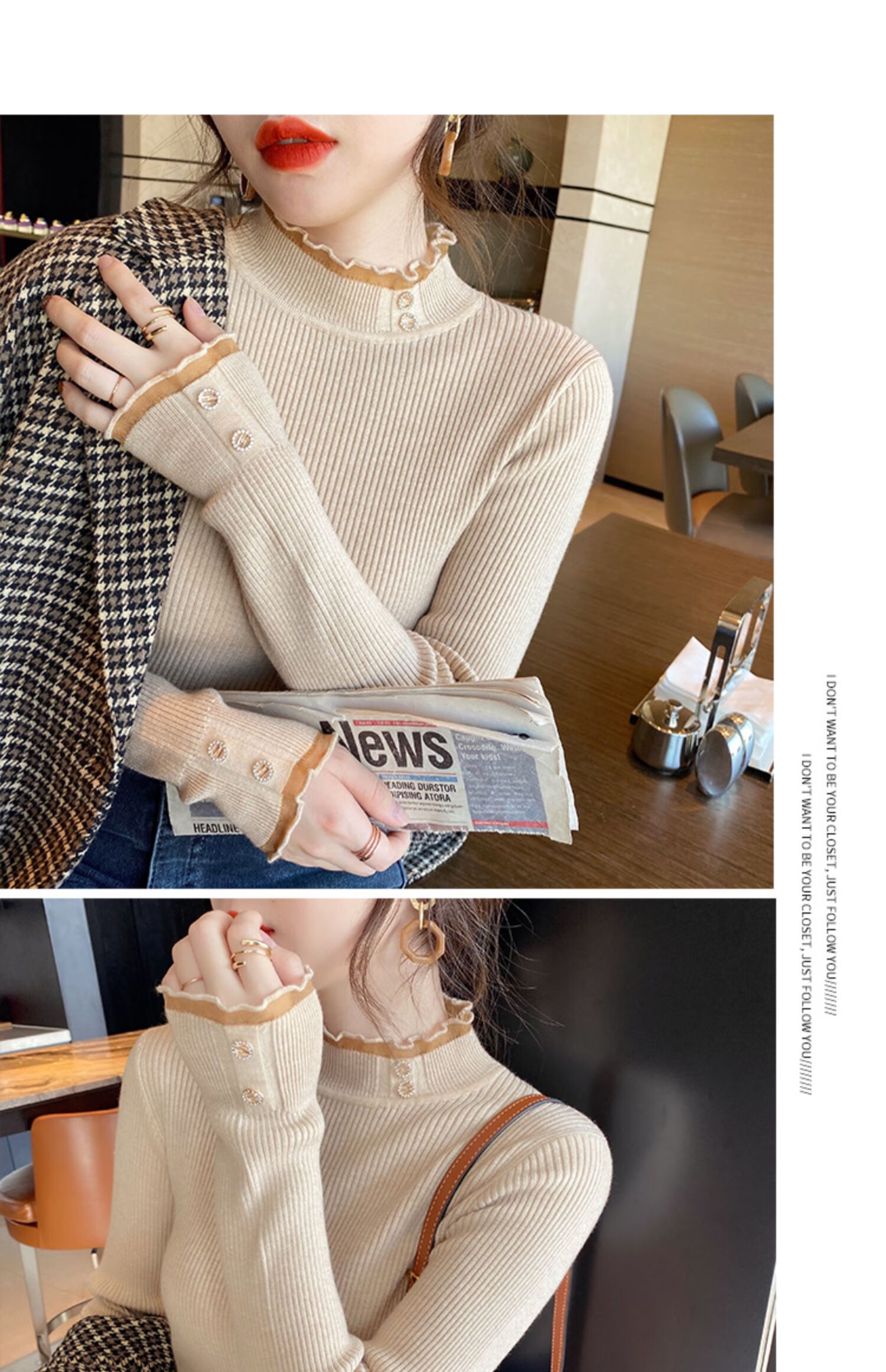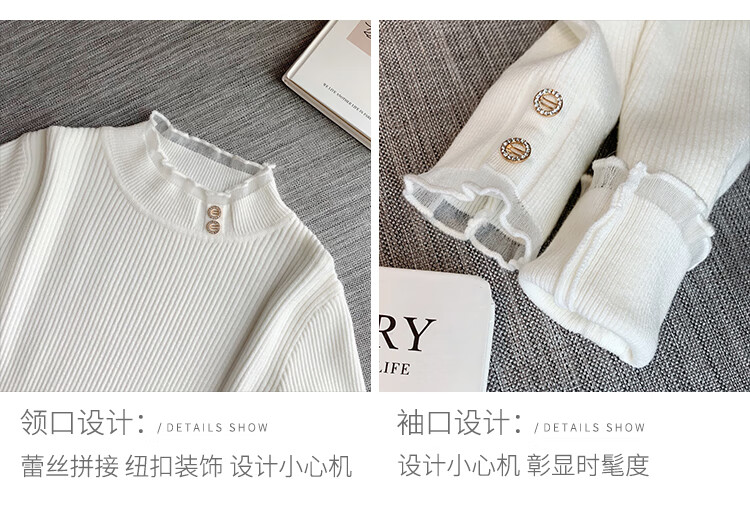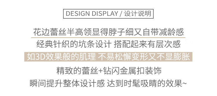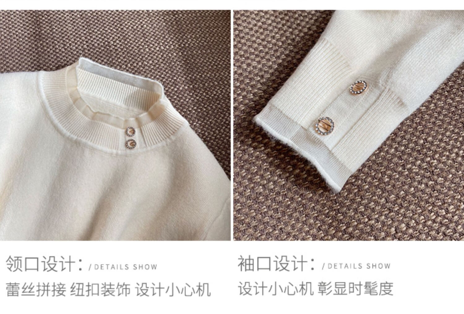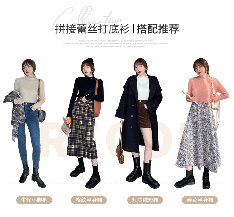 翊尚美毛衣女冬新款春秋季半高领针织衫女士打底衫修身显瘦蕾丝内搭上衣 杏色【春季薄款】 L 【115-140斤】