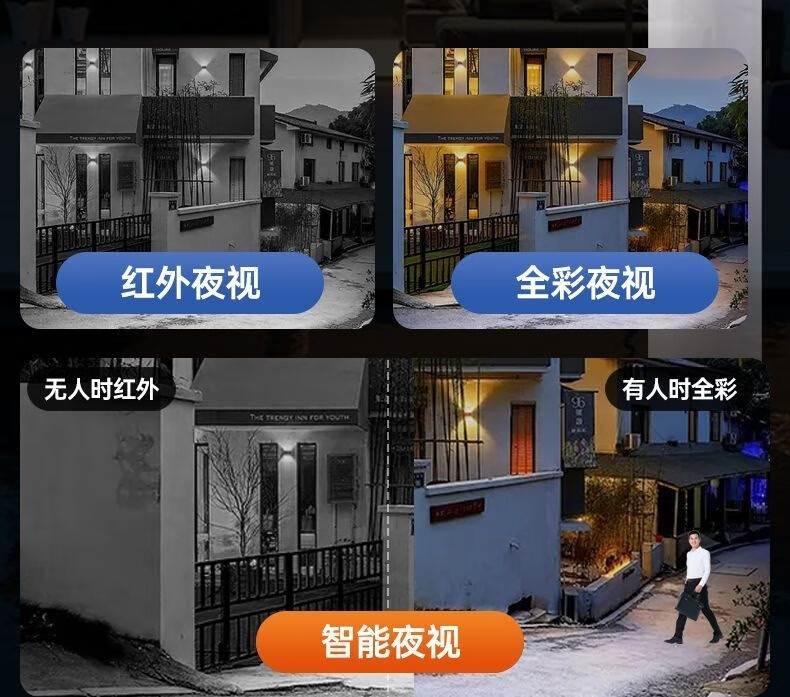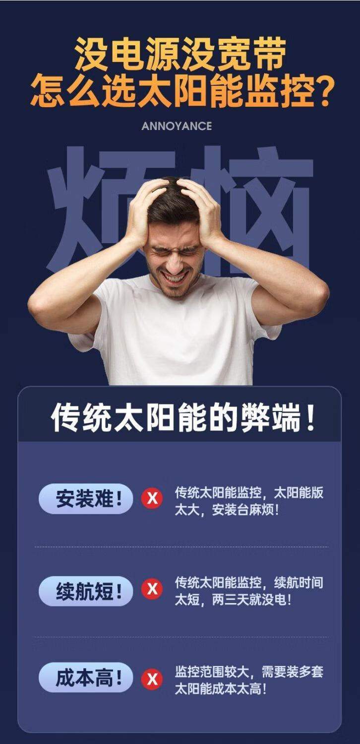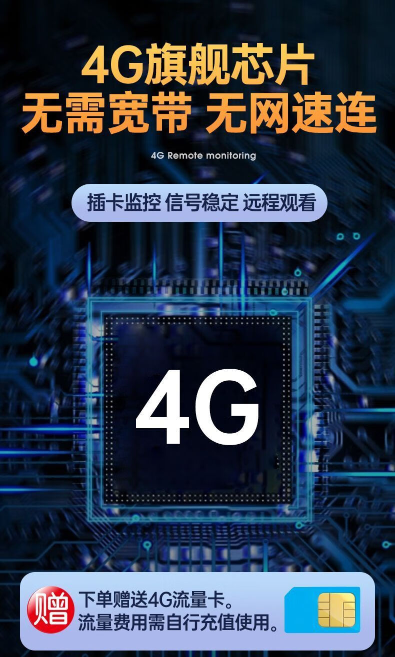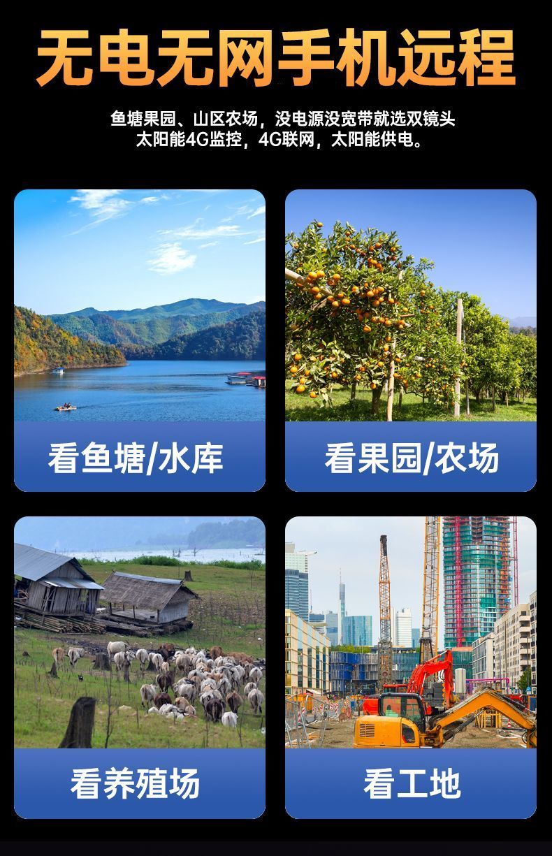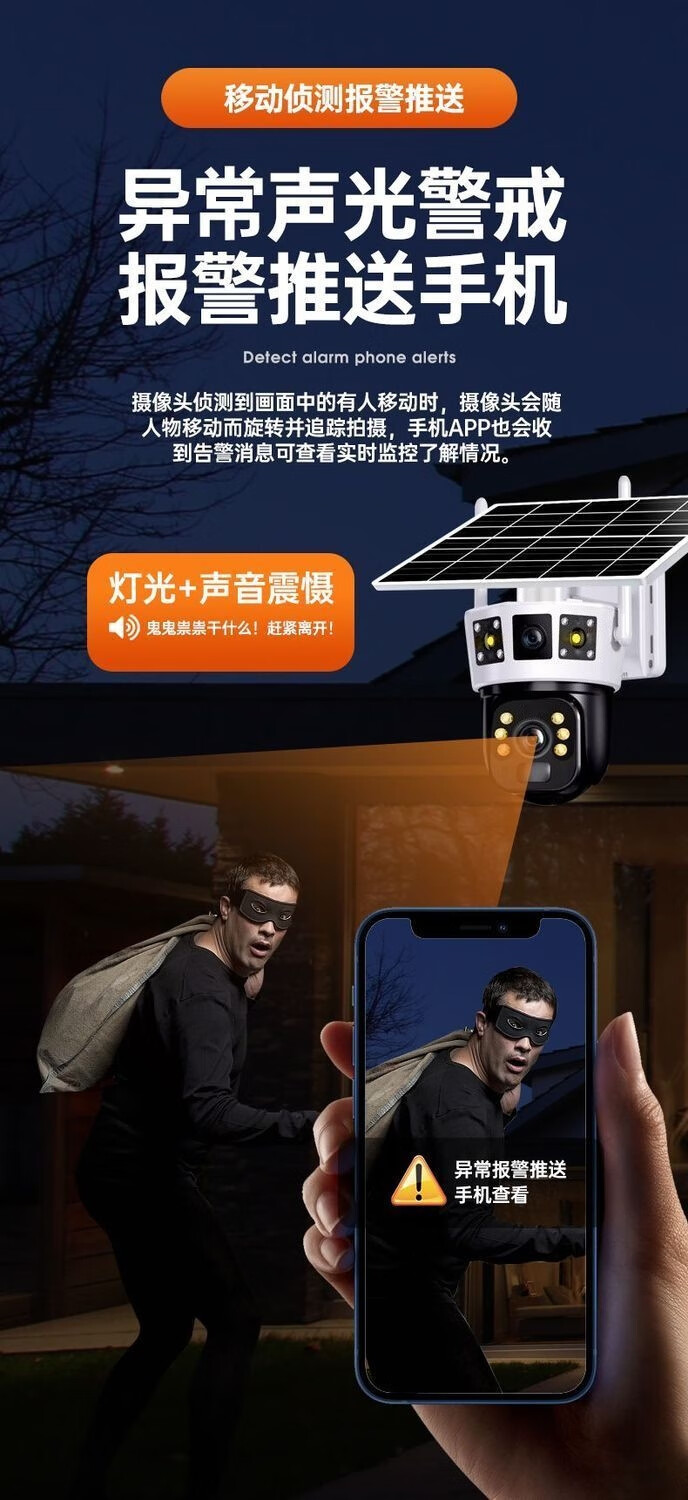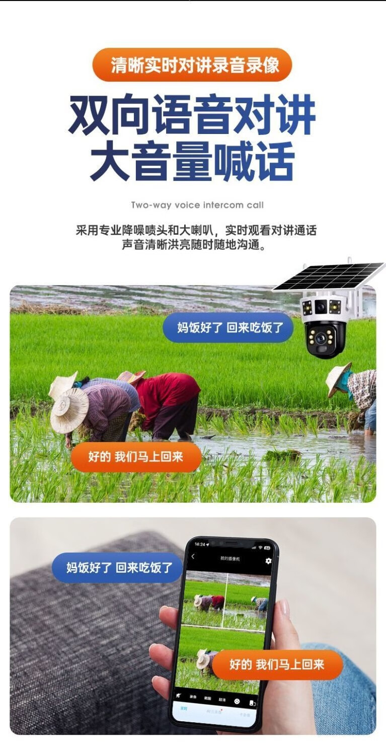 洛小嘉太阳能监控无电无网终身免费流量高清室外监控器360度全景无死角全彩带夜视追踪监控户外4G摄像头 太阳能三画面+流量免充值+30天循环录