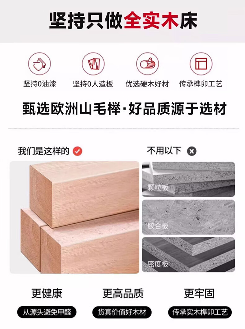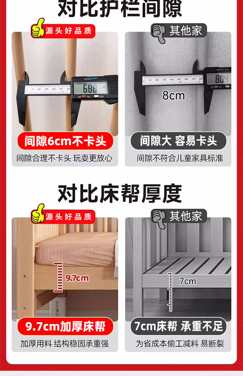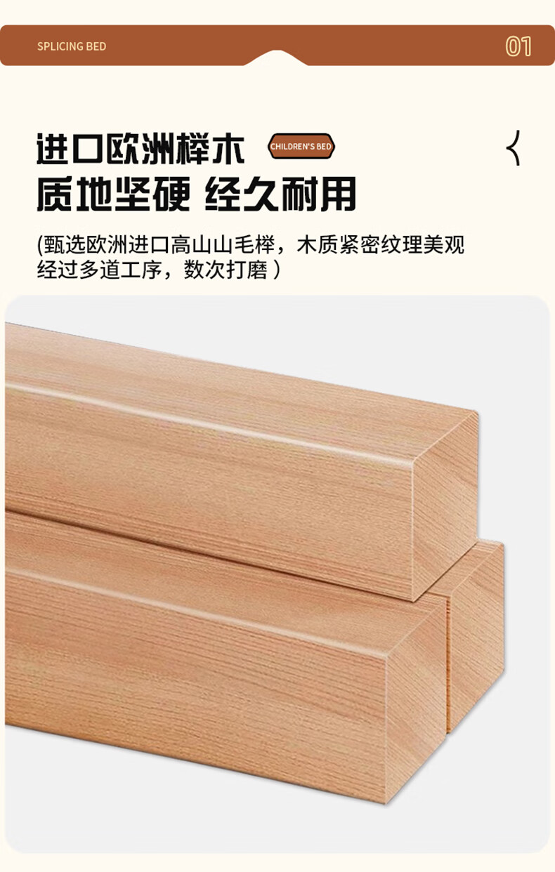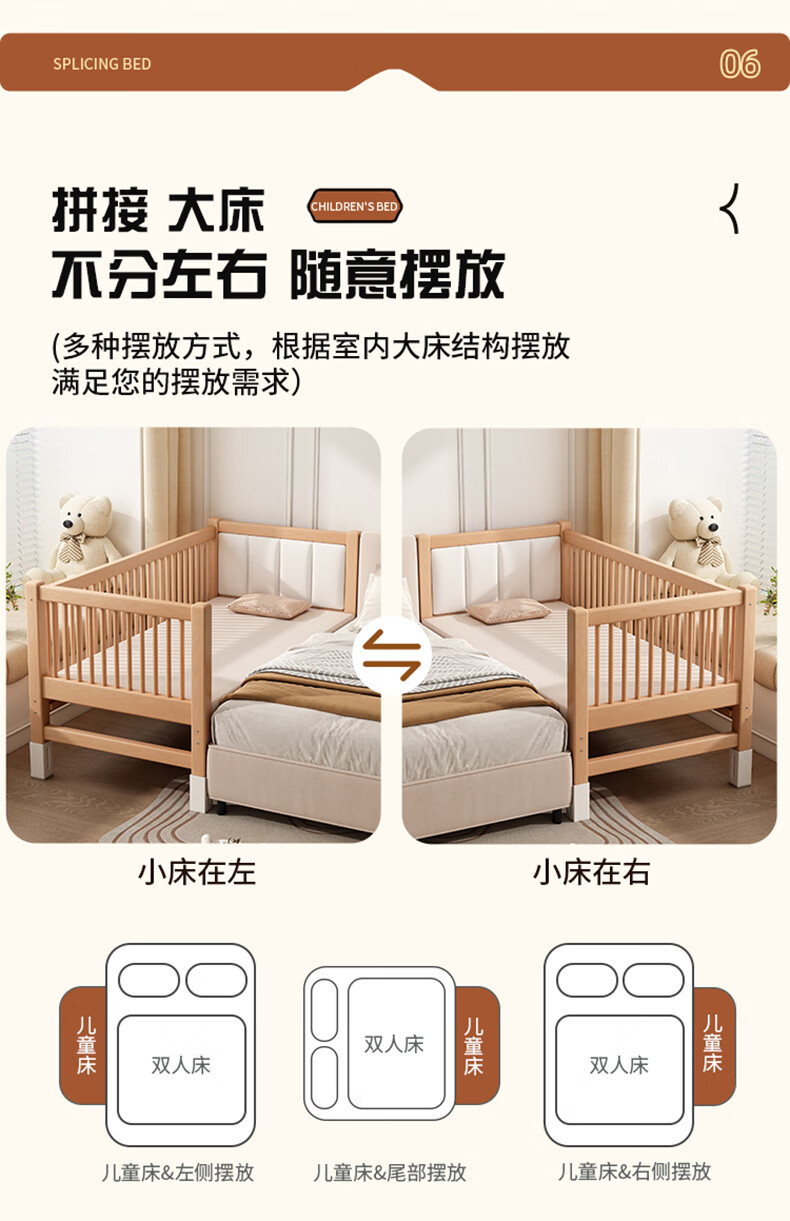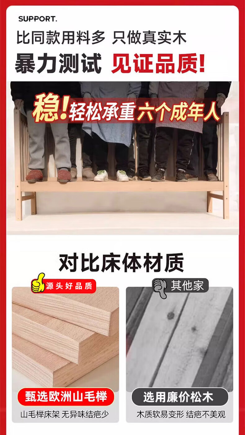 忆特佳榉木拼接床加宽床边小床带护栏宝宝婴儿床可调节带护栏实木单人床 三面护栏+8厘米空气纤维垫 200x100cm