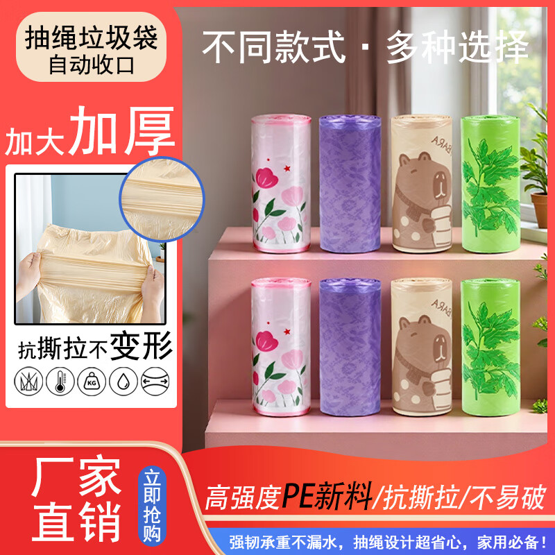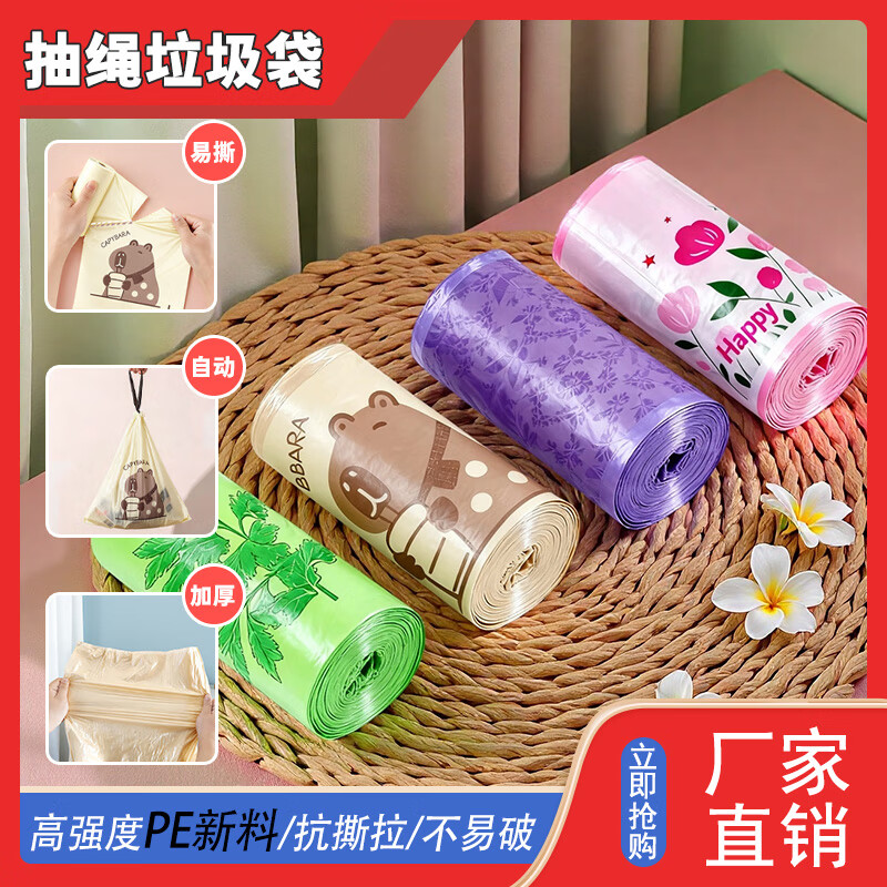 祥盈升加大加厚家用45*50cm抽绳式厨房卫生间不脏手垃圾袋 随机色【300只】