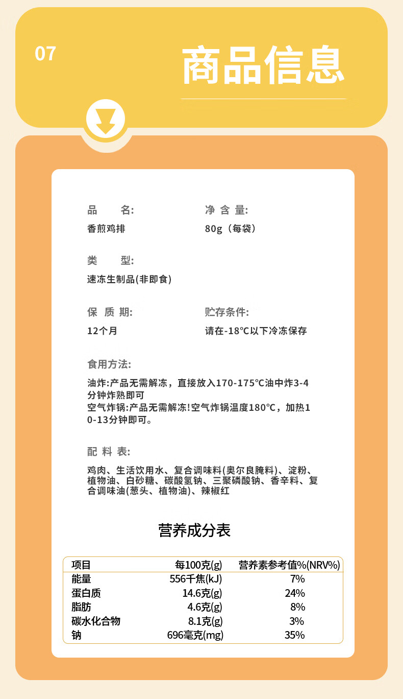 禾豊香煎鸡排鸡胸肉煎鸡排早餐速食半成品营养早餐空气炸锅 香煎鸡排10袋装(共800g)