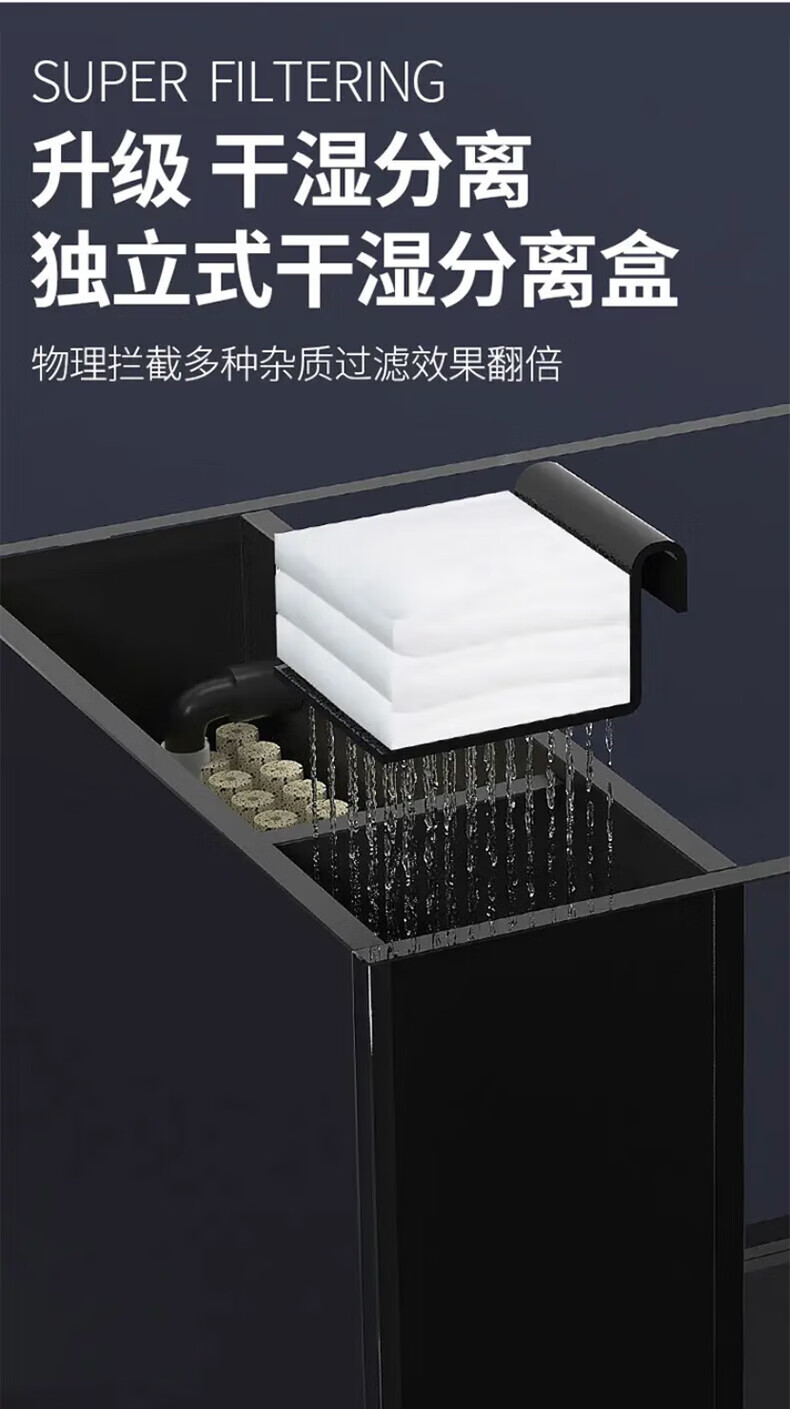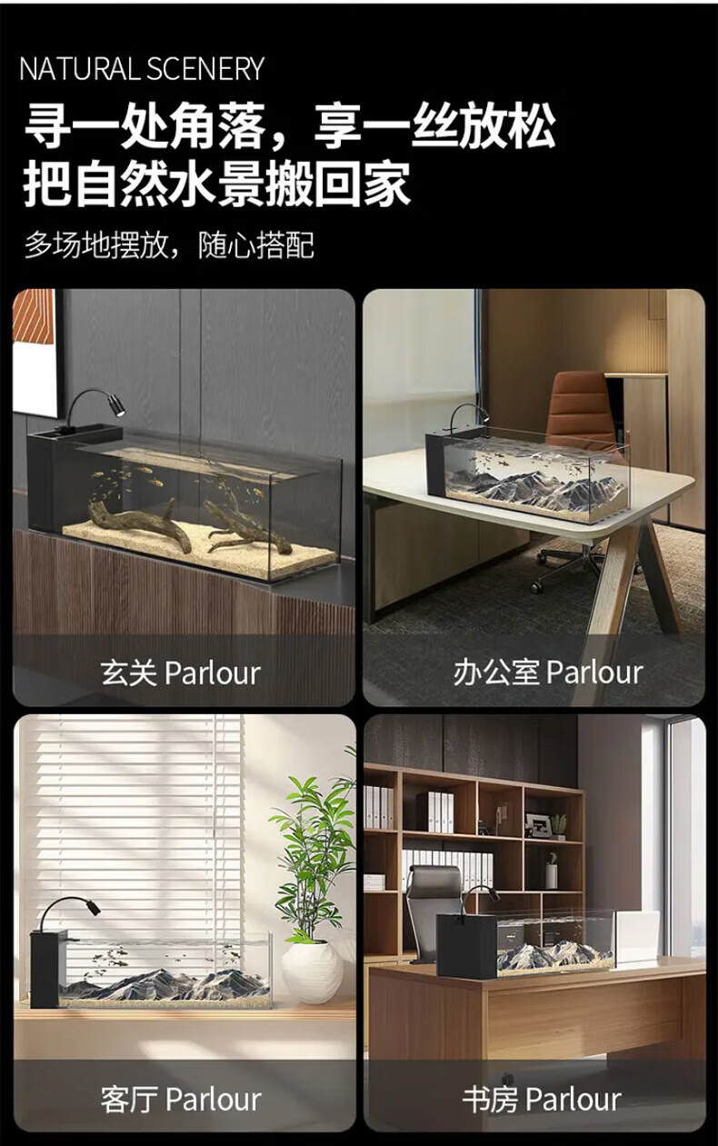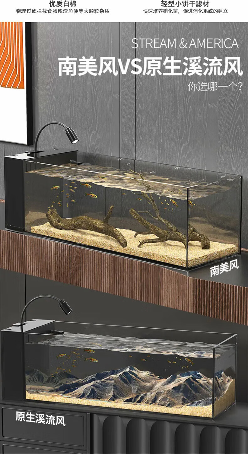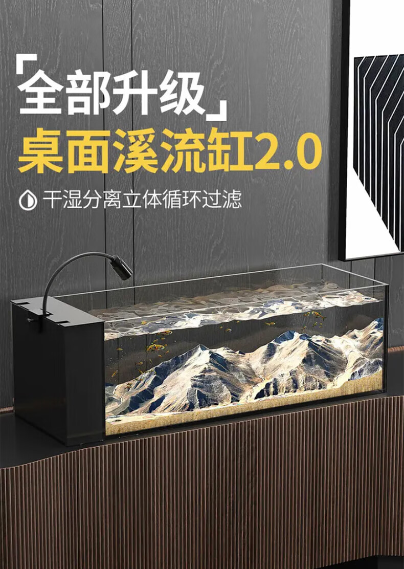 宠小岛溪流鱼缸一体缸2025新款一体式懒人生态造景桌面客厅玄关鱼缸 溪流缸60x20x20【升级带盖款】赠溪流石