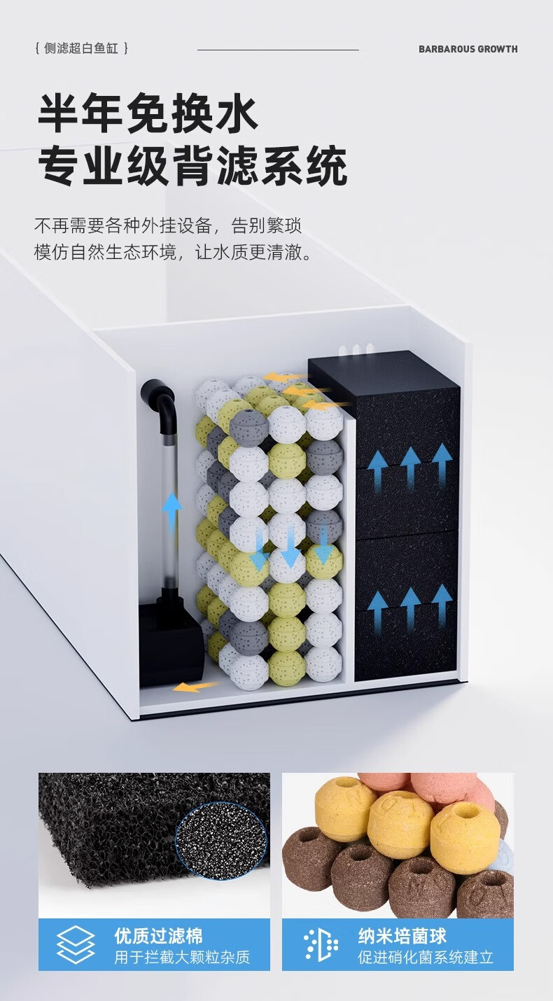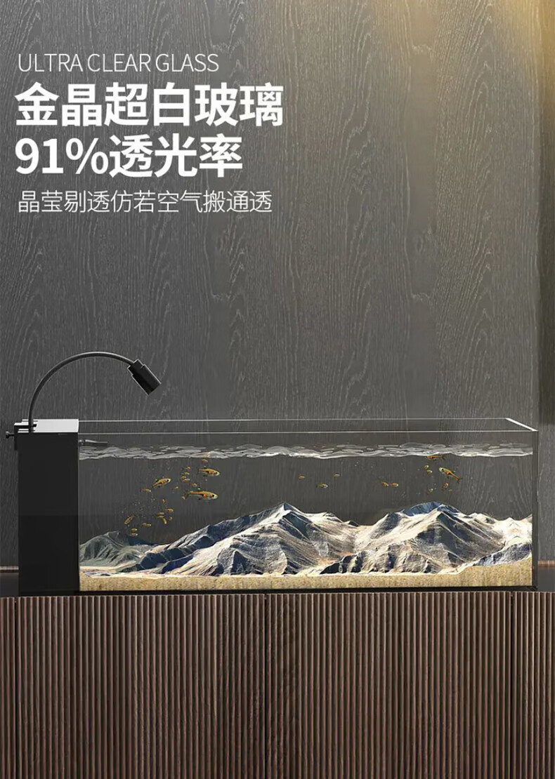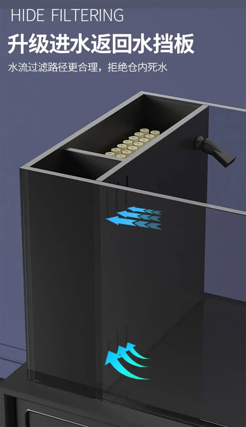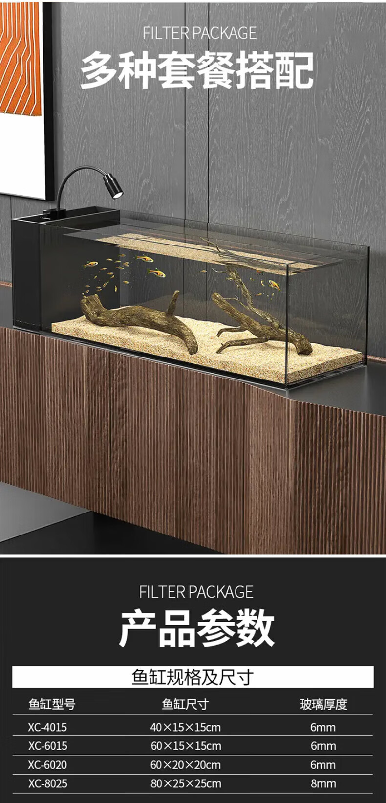 宠小岛溪流鱼缸一体缸2025新款一体式懒人生态造景桌面客厅玄关鱼缸 溪流缸60x20x20【升级带盖款】赠溪流石