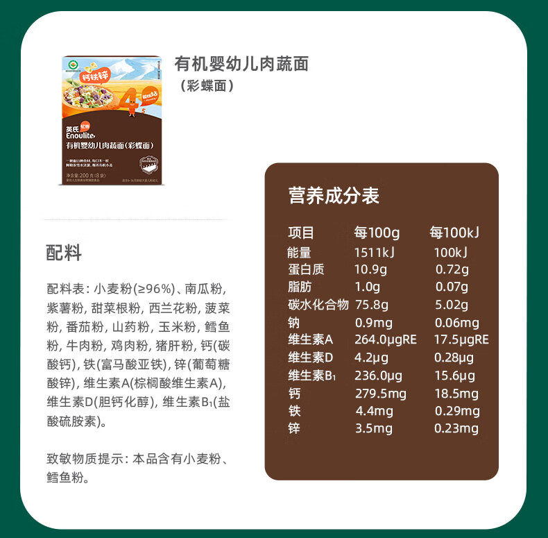 英氏有机婴幼儿彩蝶面200g 婴儿面条蝴蝶面儿童早餐辅食面条 采销验厂
