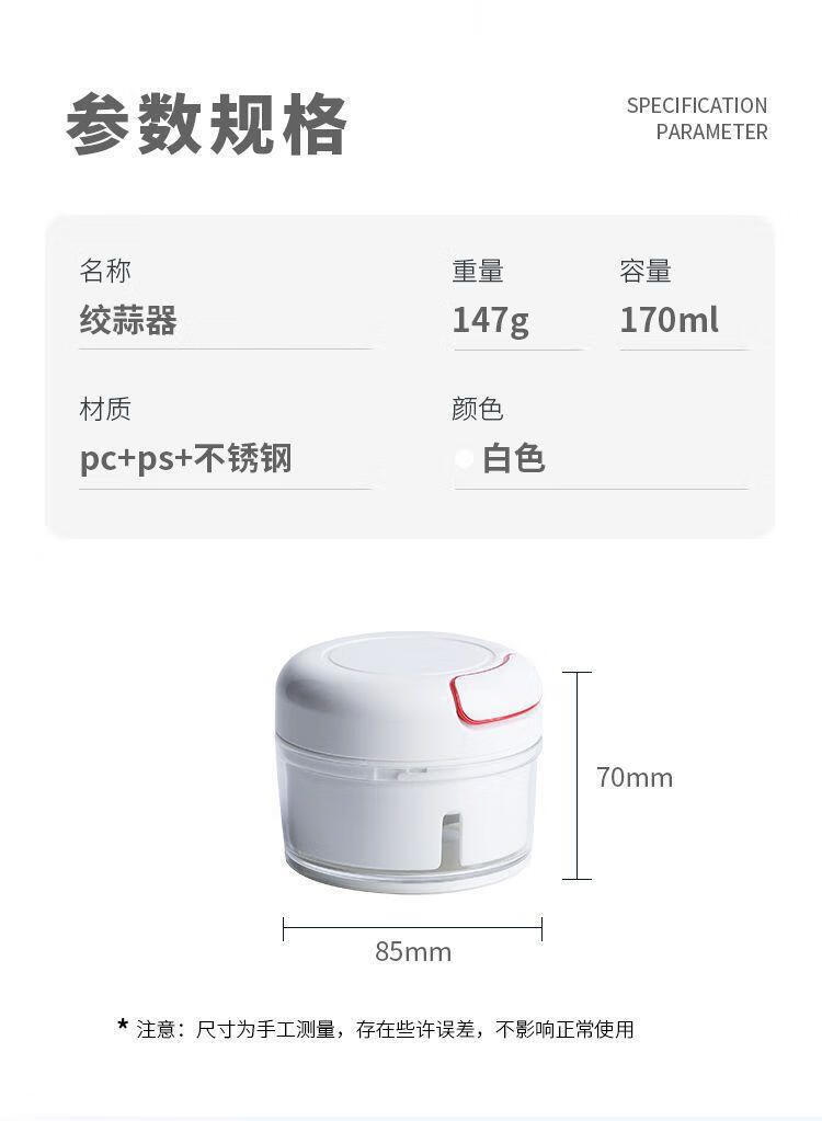 AQNA抖音厨房拉蒜神器家用迷你手动打蒜机肉馅绞肉机辣椒姜蒜泥蒜蓉机 蒜泥神器(一个)